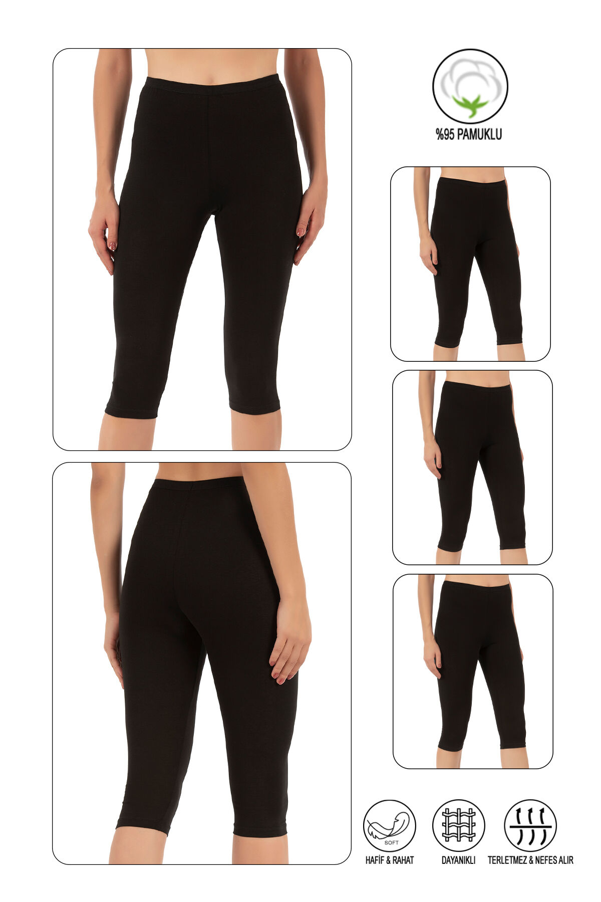 Özkan 0458 3'lü Paket Kadın %95 Pamuklu Likralı Süprem Kumaş Esnek Rahat Yumuşak Diz Altı Kapri Tayt
