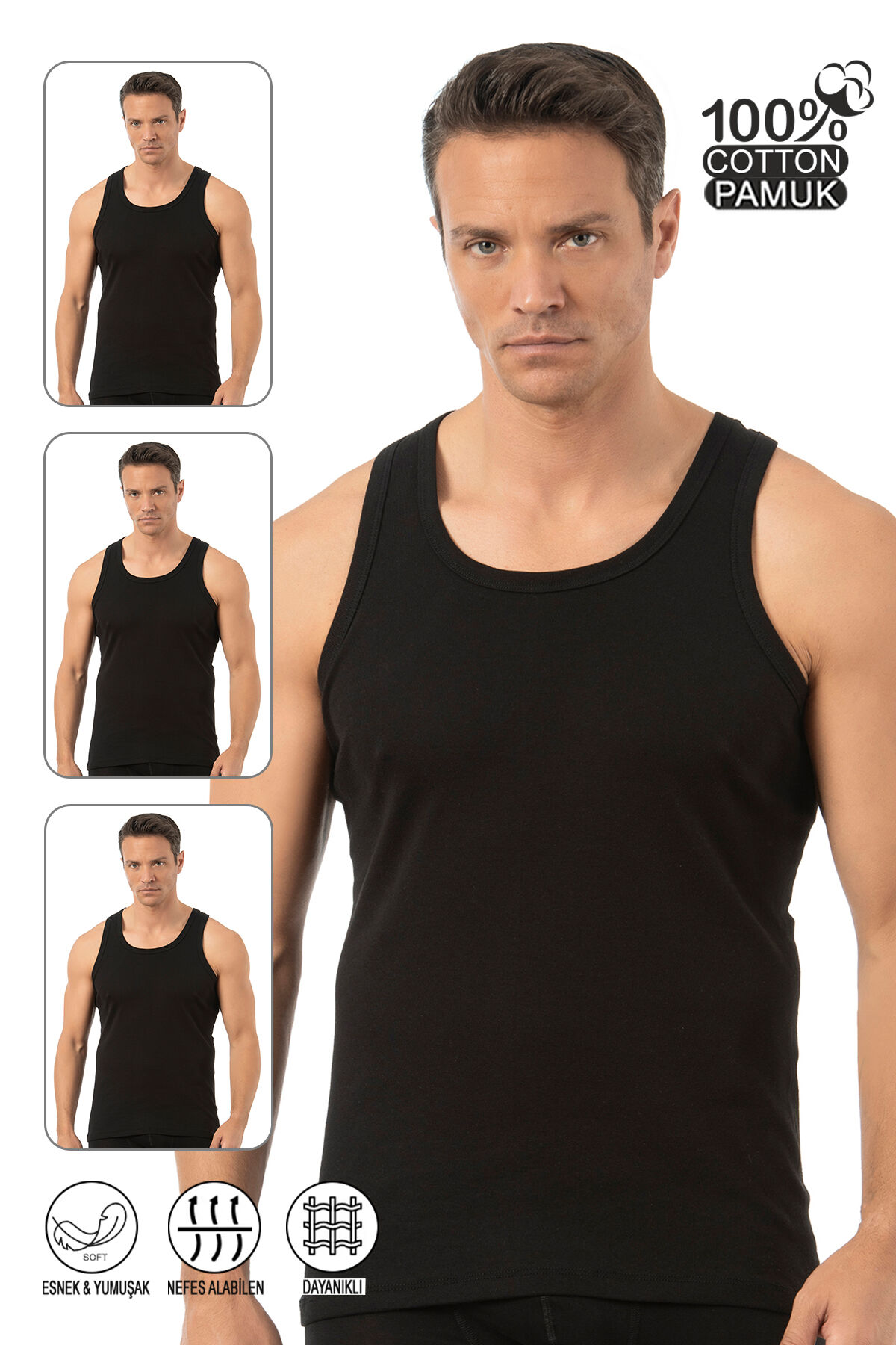Özkan 0113 3'lü Paket Erkek %100 Pamuklu Esnek Yumuşak Ribana Kalın Askılı Atlet;