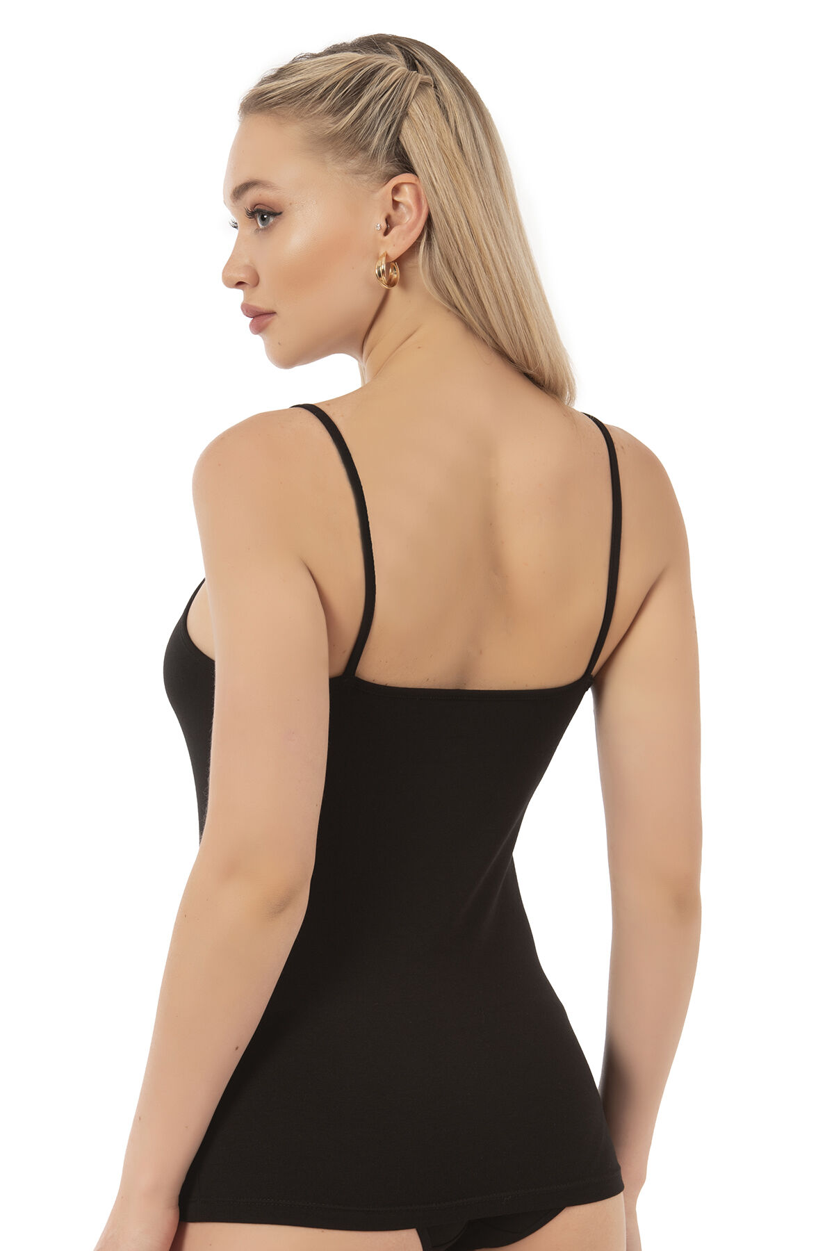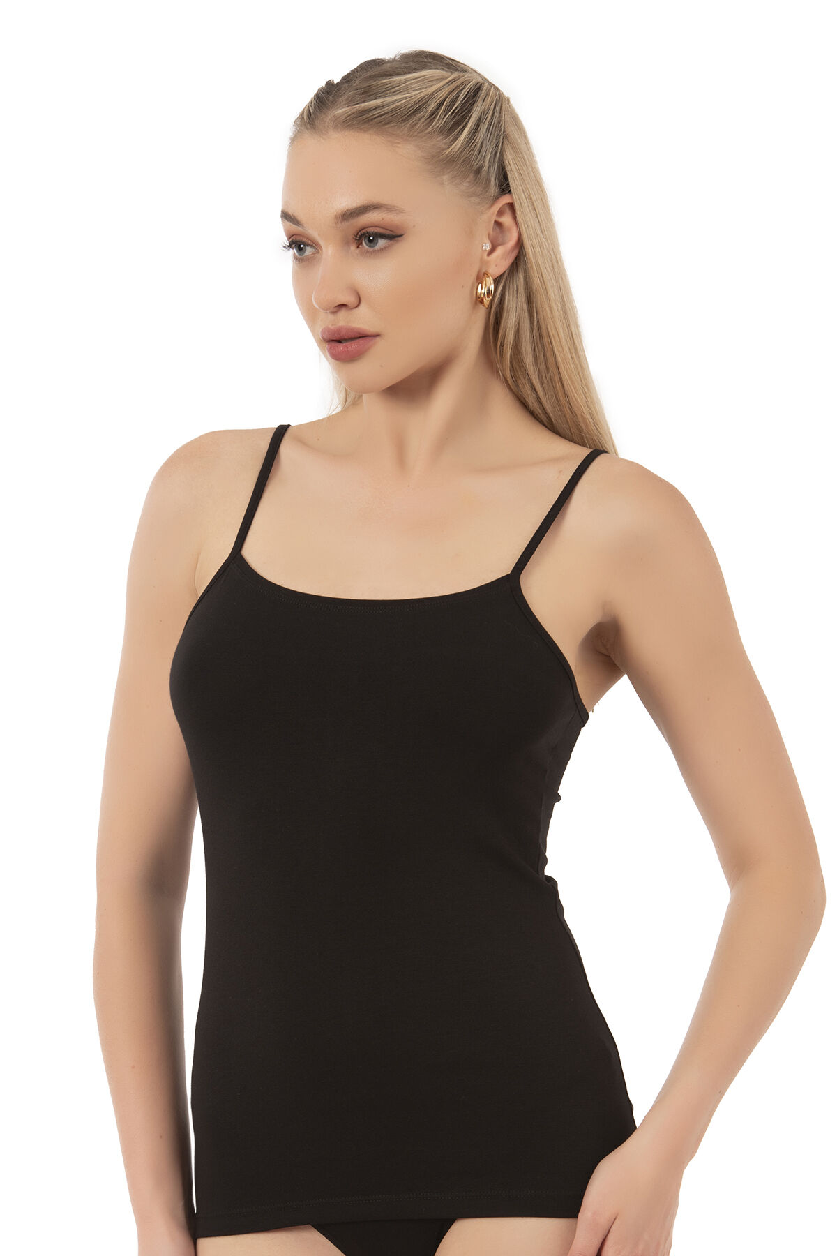 Farklı kıyafetlerinizle birlikte kullanabileceğiniz ince askılı likralı şık bir modeldir.;
