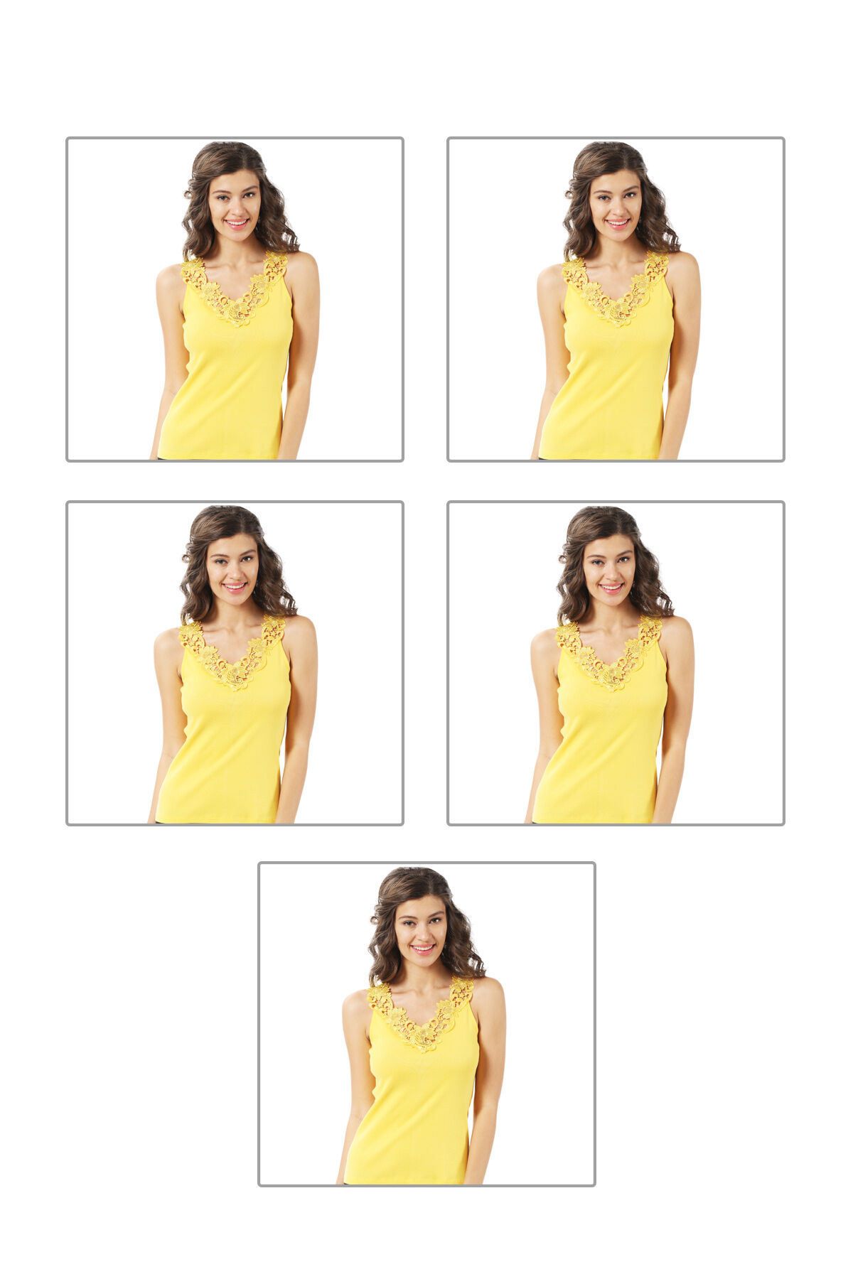 Özkan 2001 5'li Paket Kadın Pamuklu Ribana Dantelli Güpürlü Manolya Atlet;