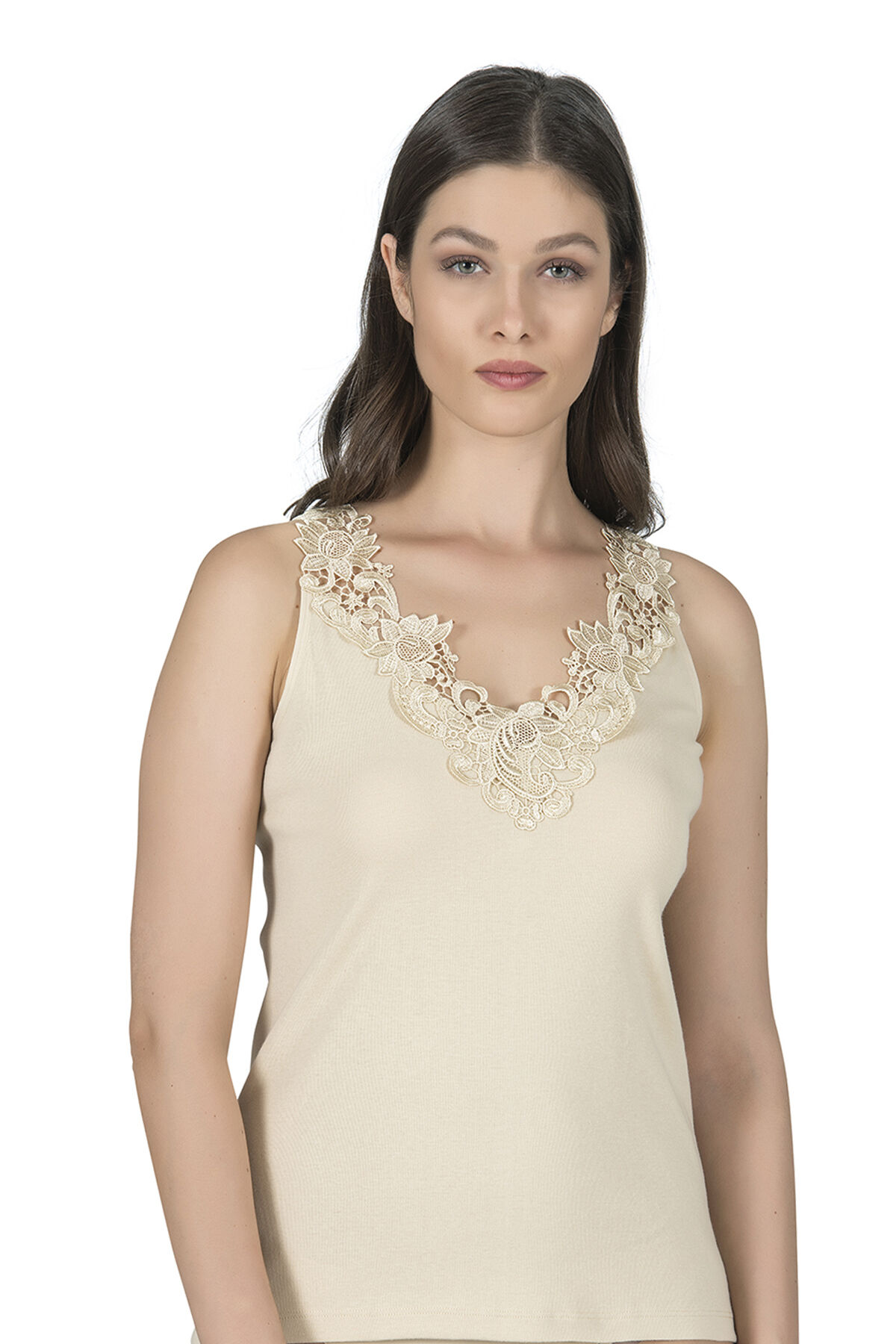 Özkan 2001 5'li Paket Kadın Pamuklu Ribana Dantelli Güpürlü Manolya Atlet