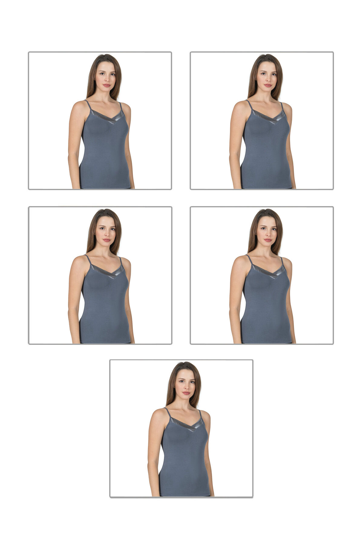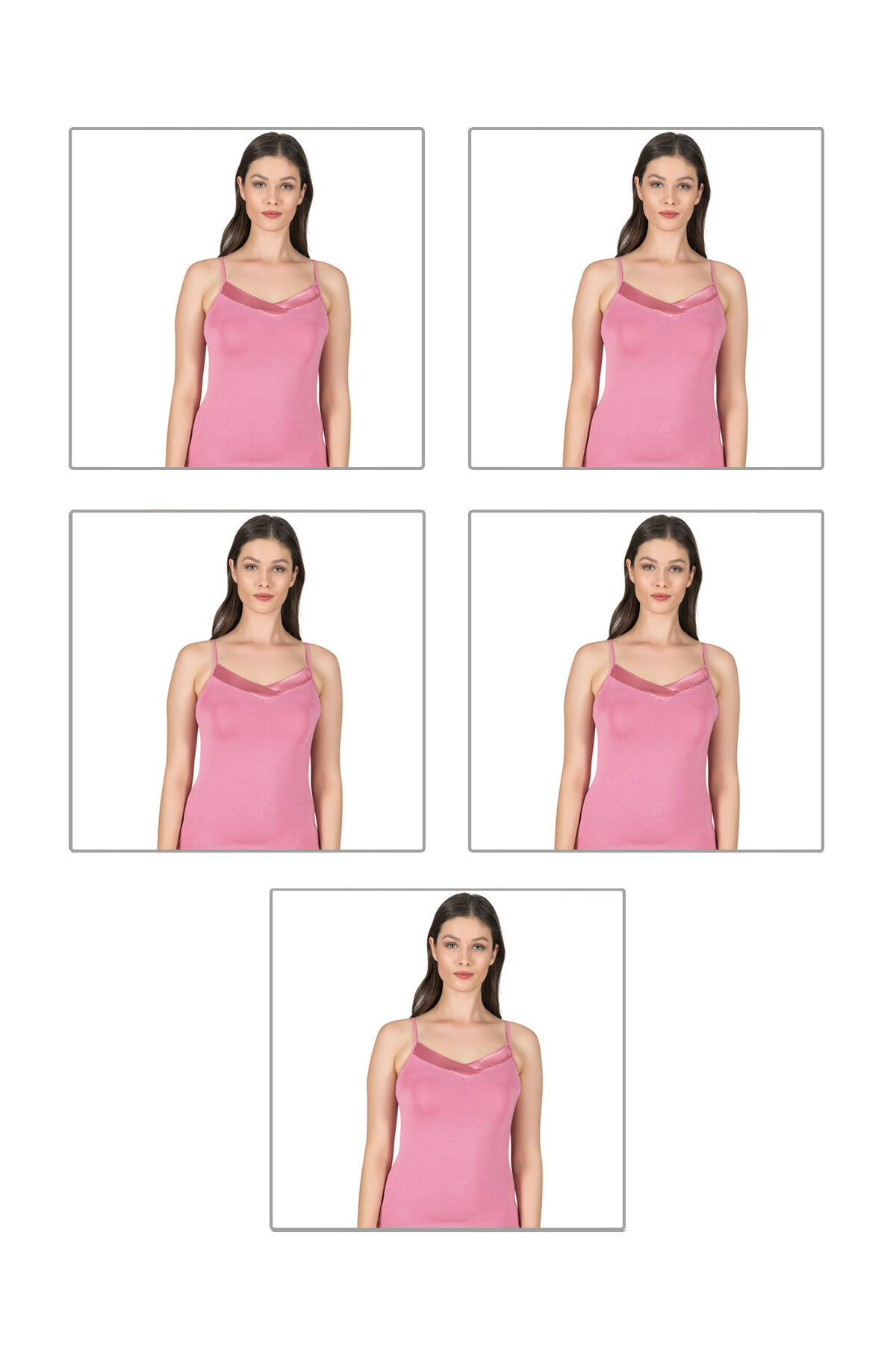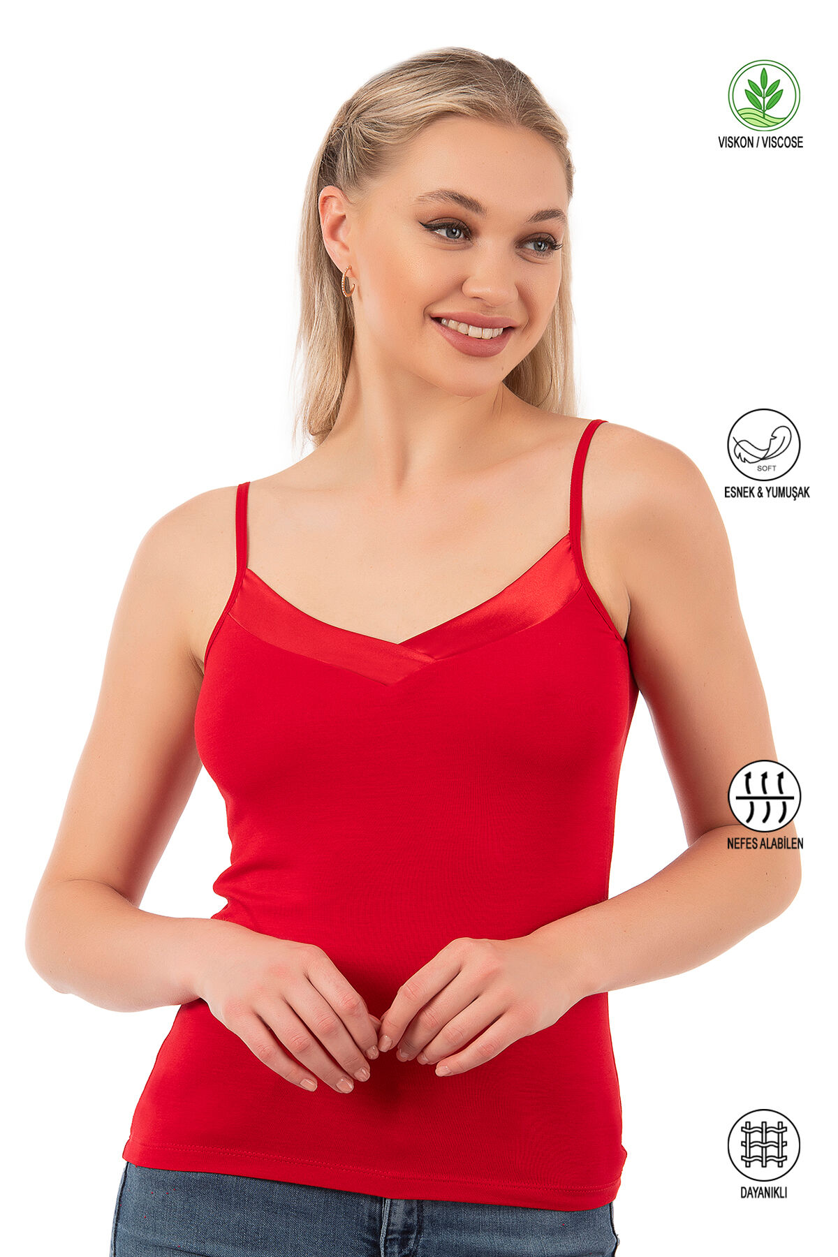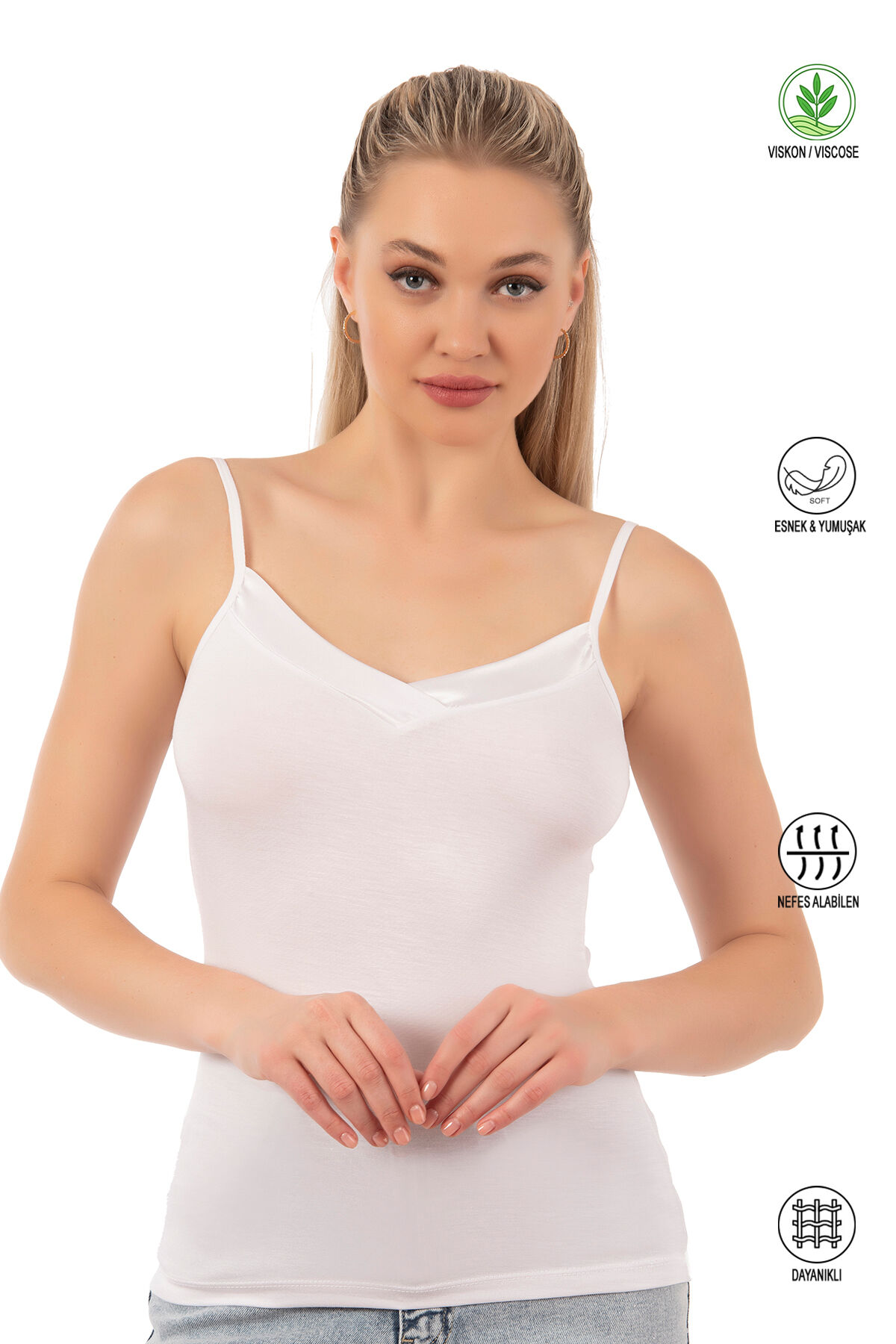 Özkan 2040 5'li Paket Kadın Viskon Saten Yaka Esnek Rahat Yumuşak İnce Askılı Atlet