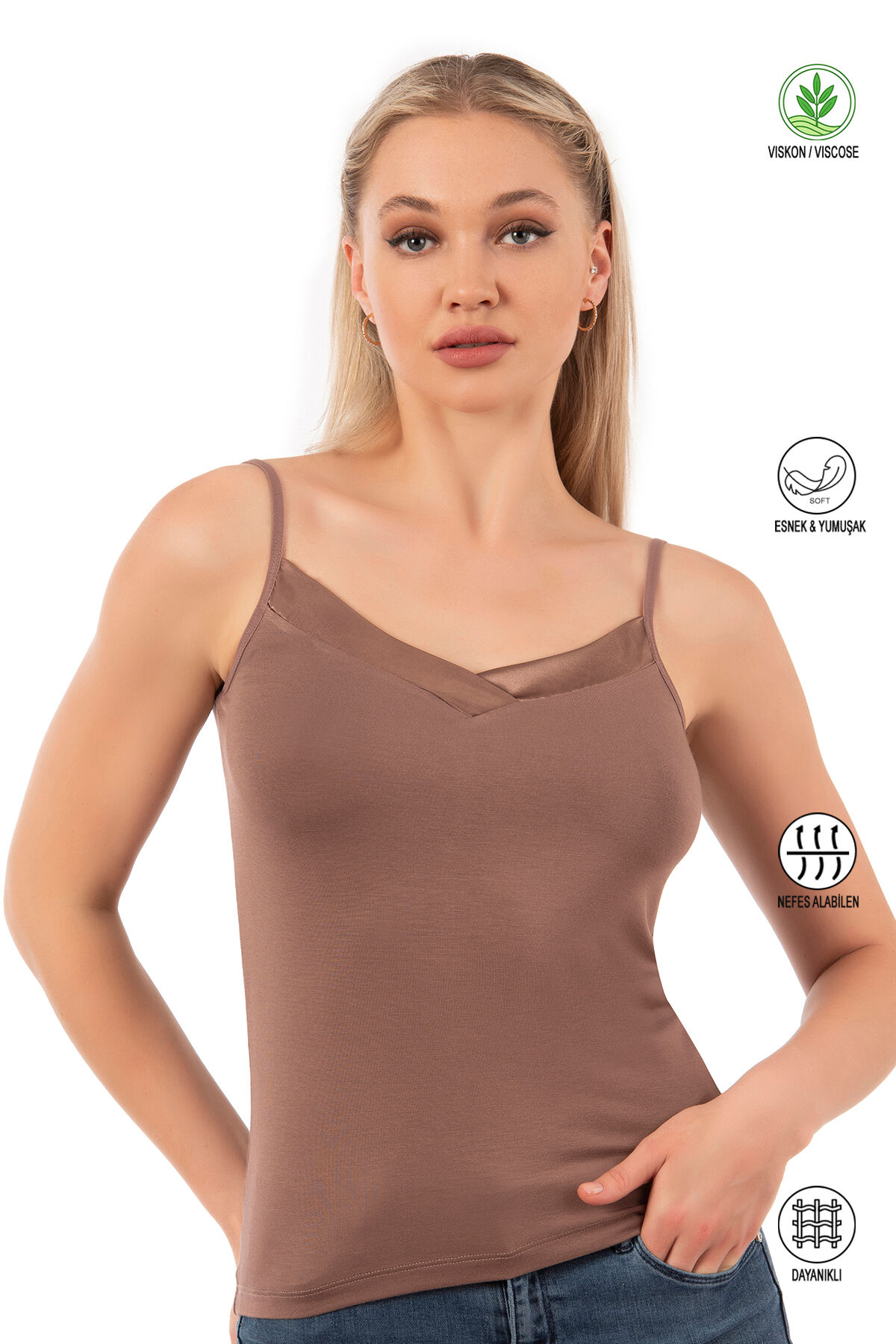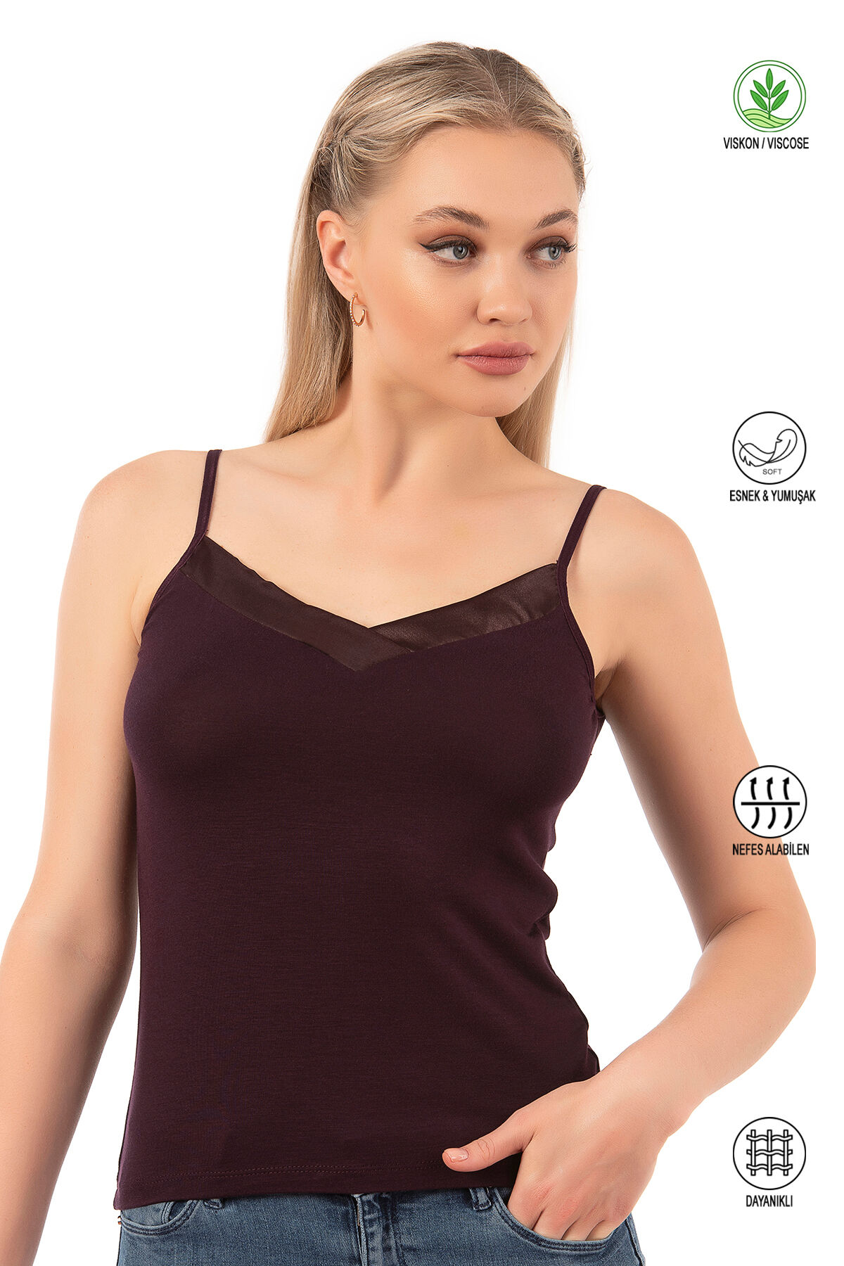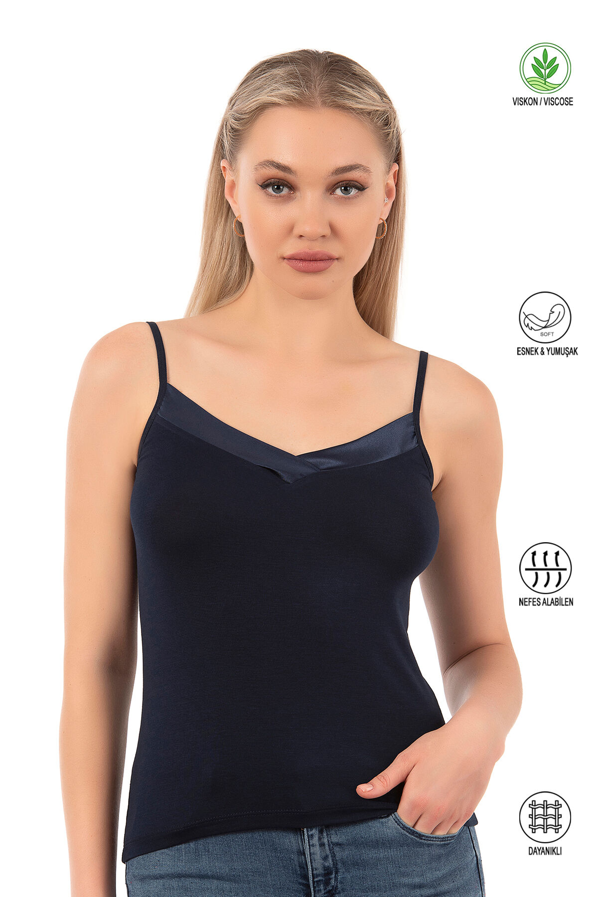 Farklı kıyafetlerinizle kullanabileceğiniz ince askılı şık bir modeldir.;