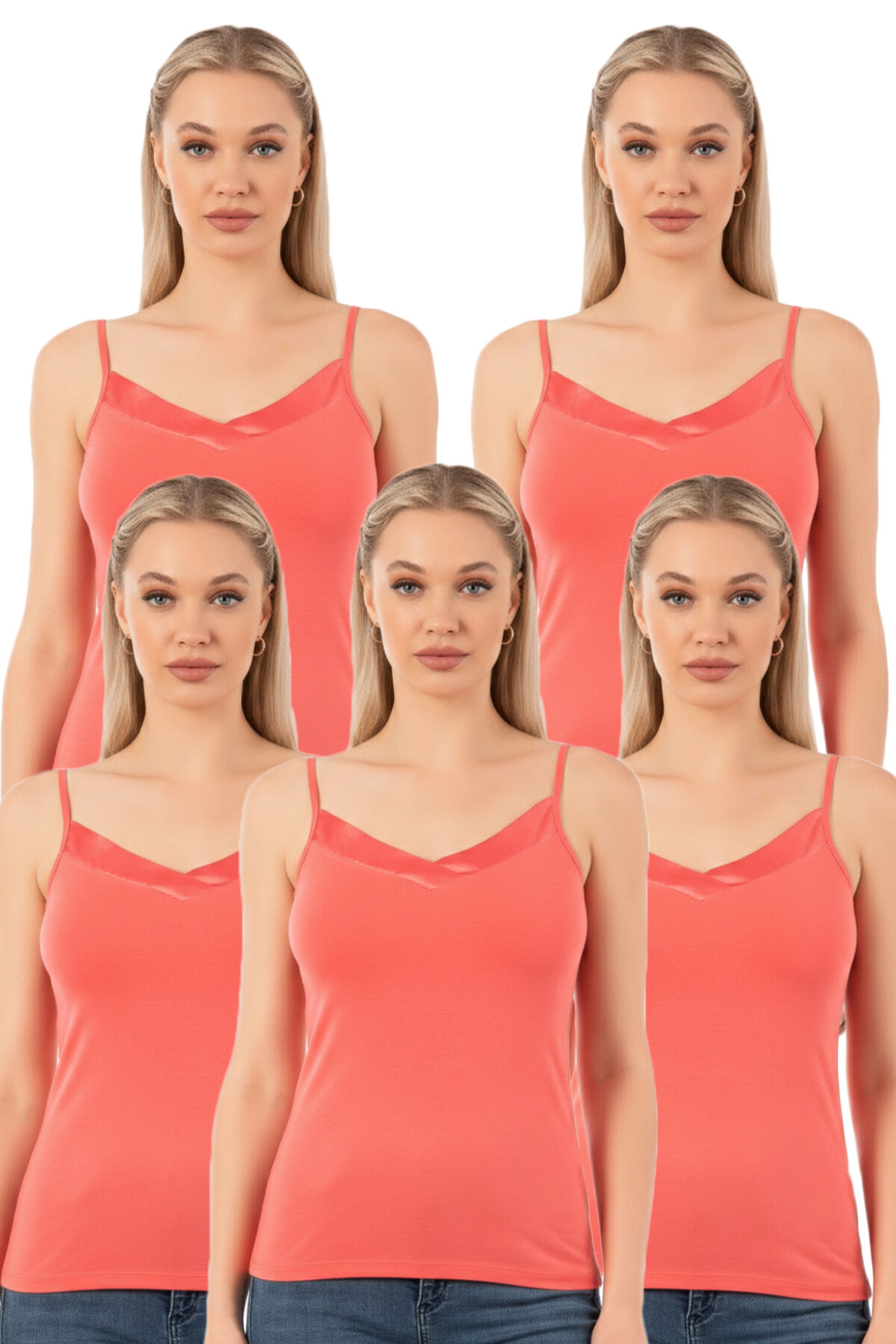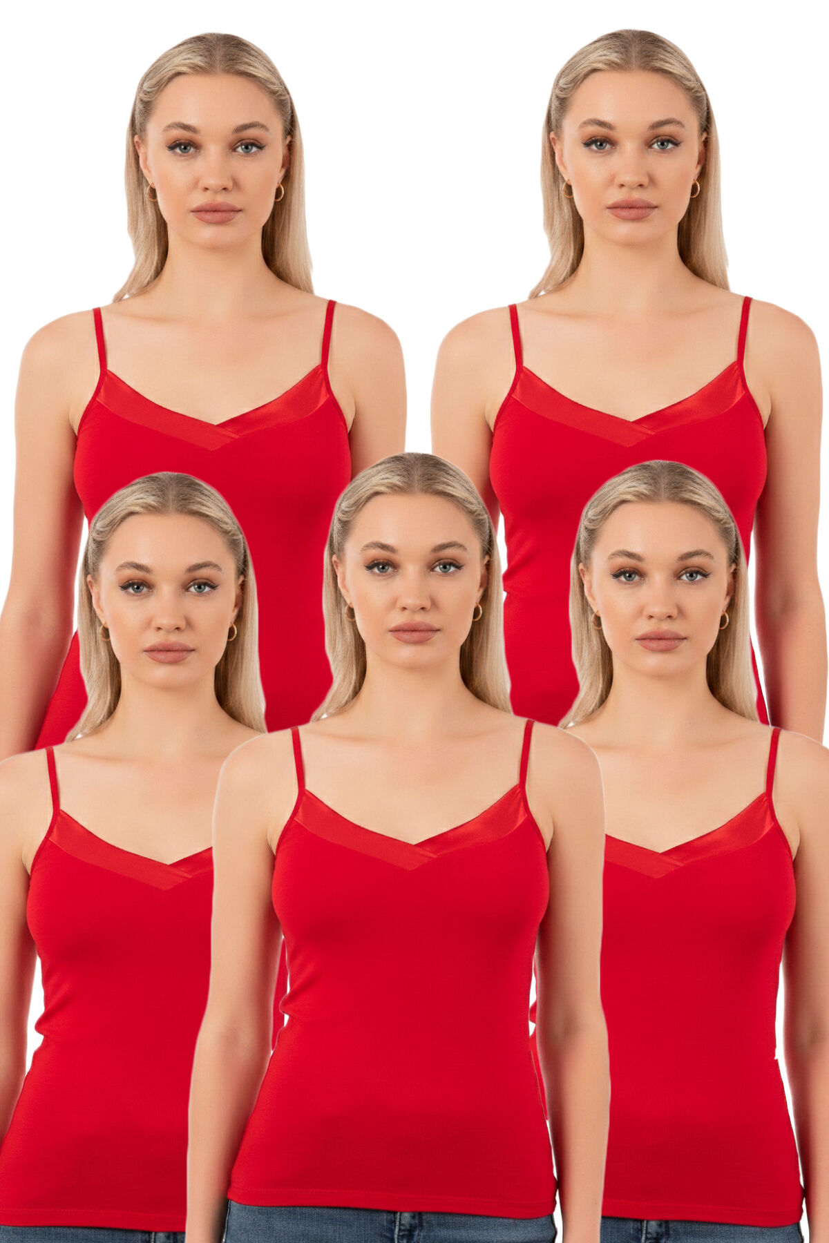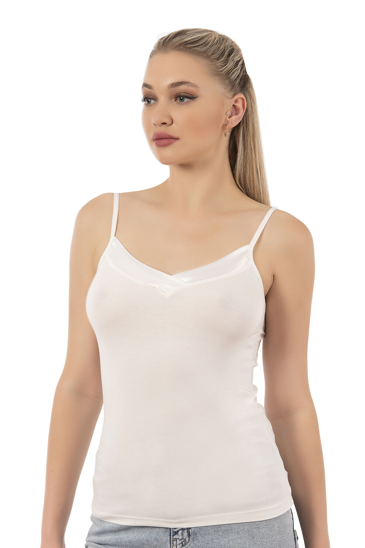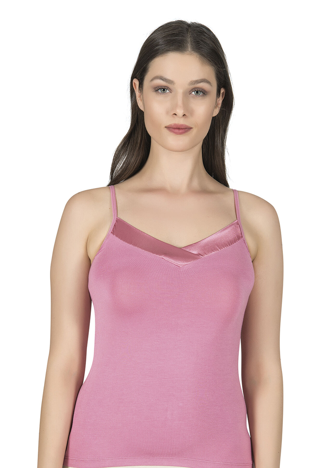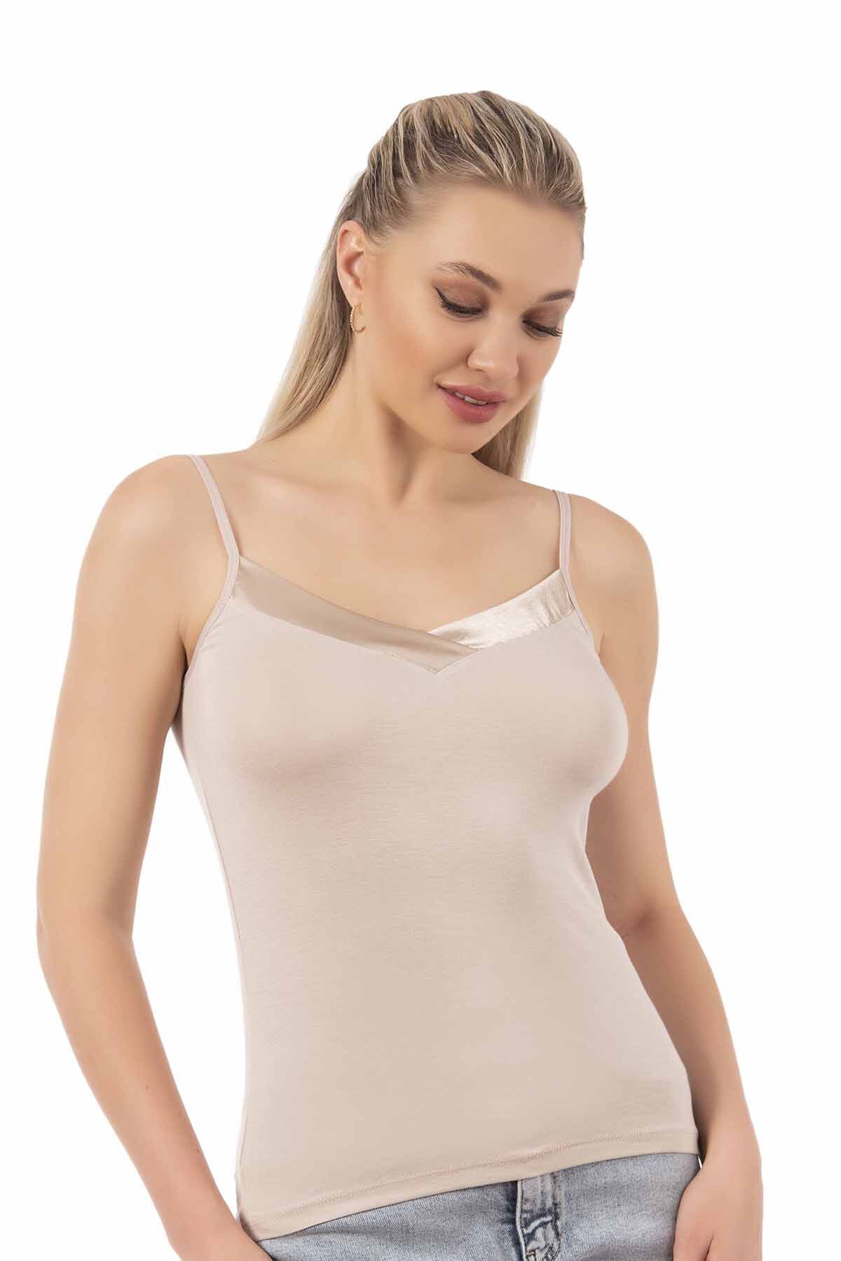 Özkan 2040 5'li Paket Kadın Premium Kumaş Viskon Saten Yakalı Esnek Rahat İnce Askılı Atlet;