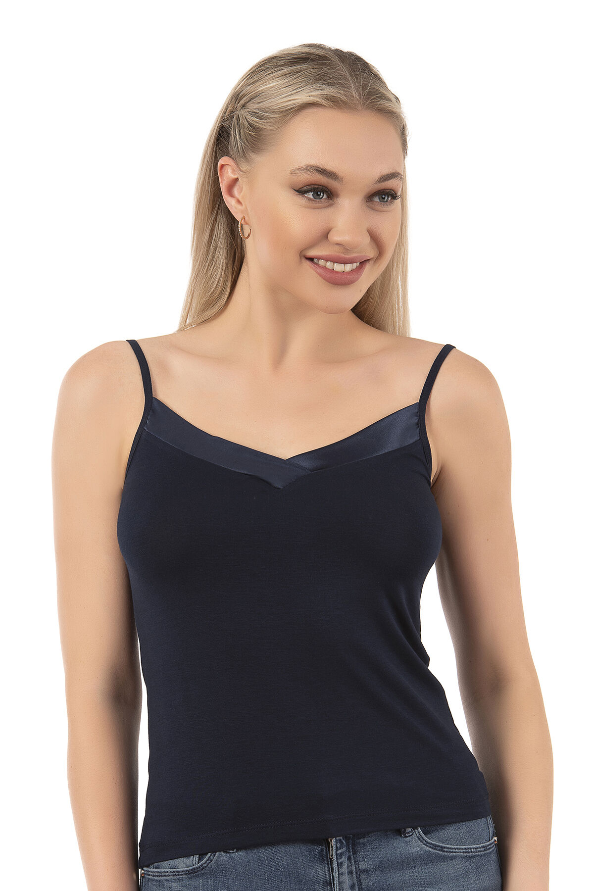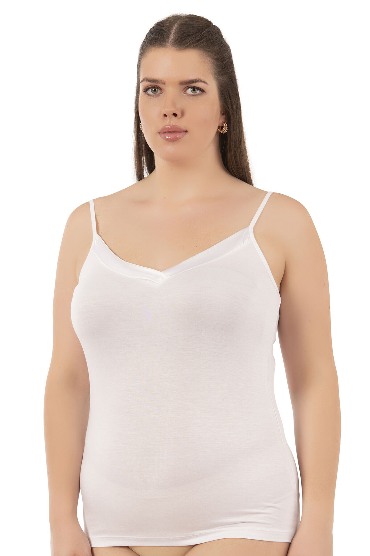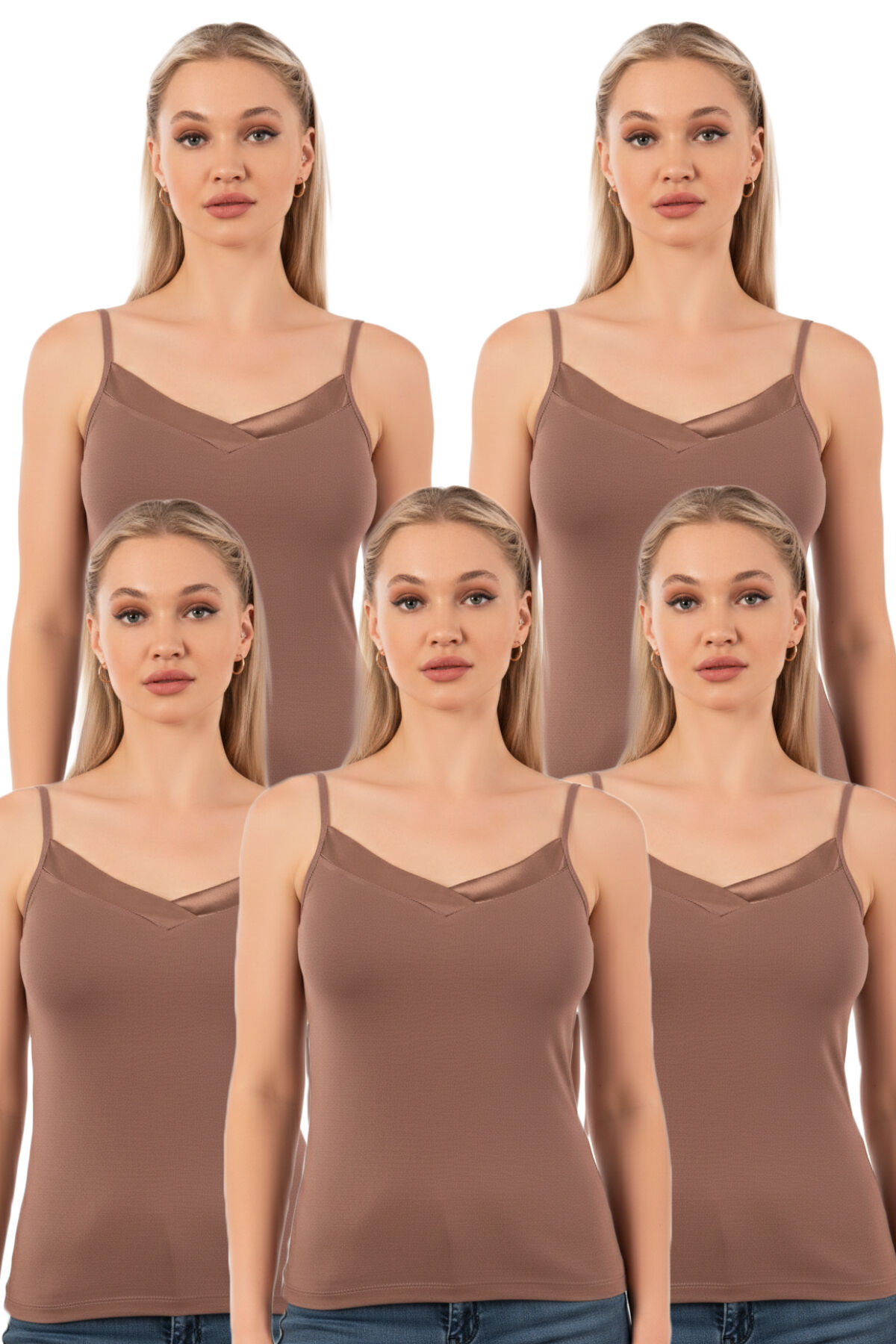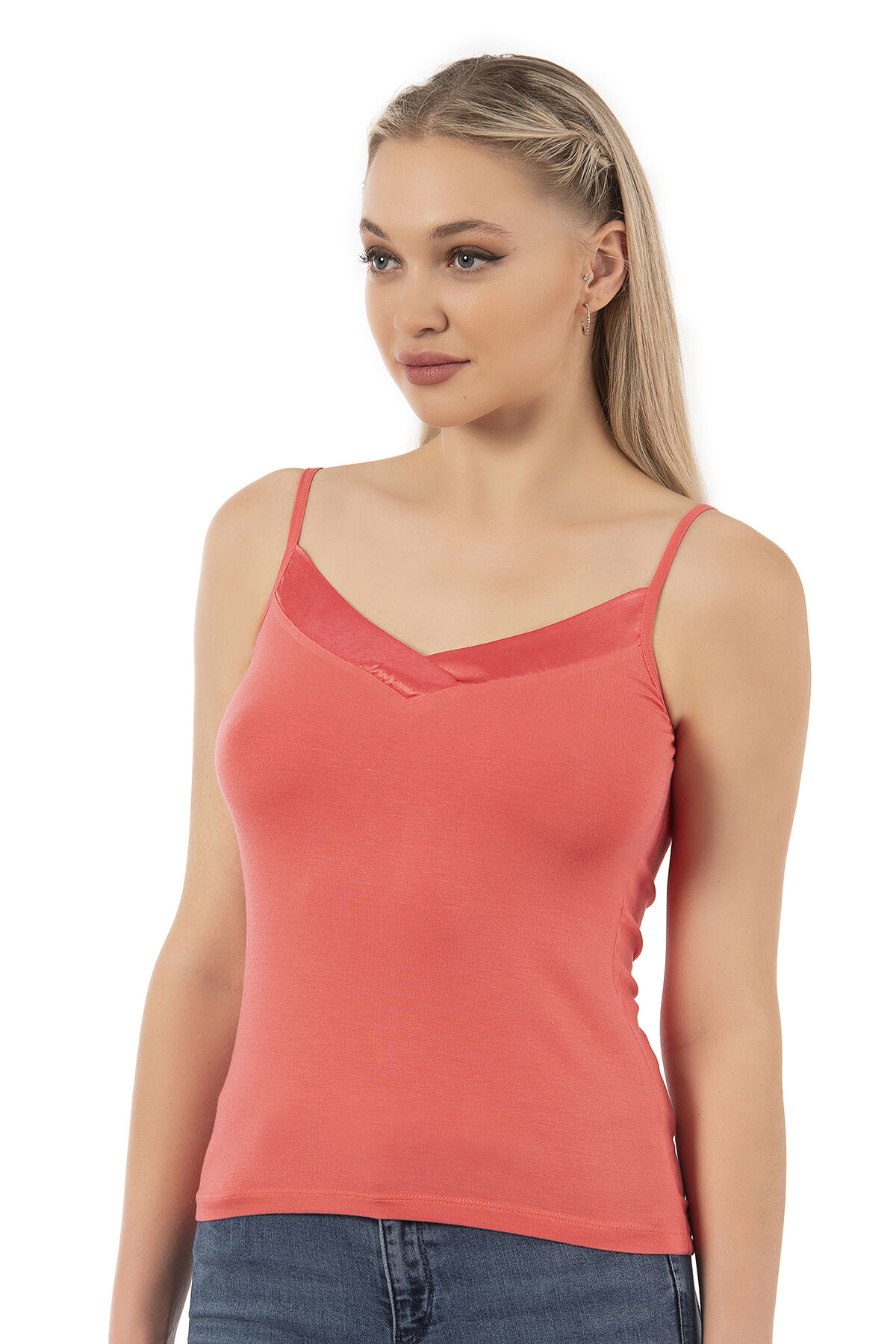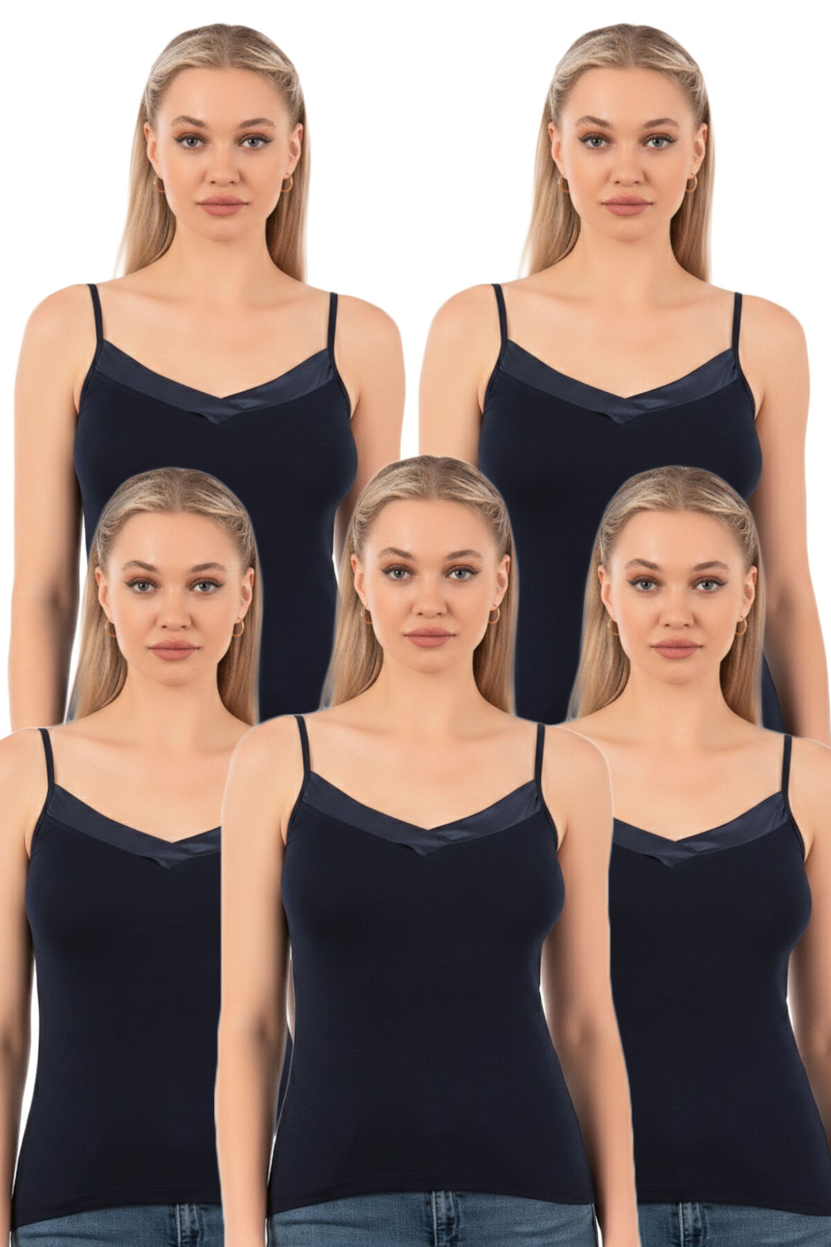 Özkan 2040 5'li Paket Kadın Premium Kumaş Viskon Saten Yakalı Esnek Rahat İnce Askılı Atlet;