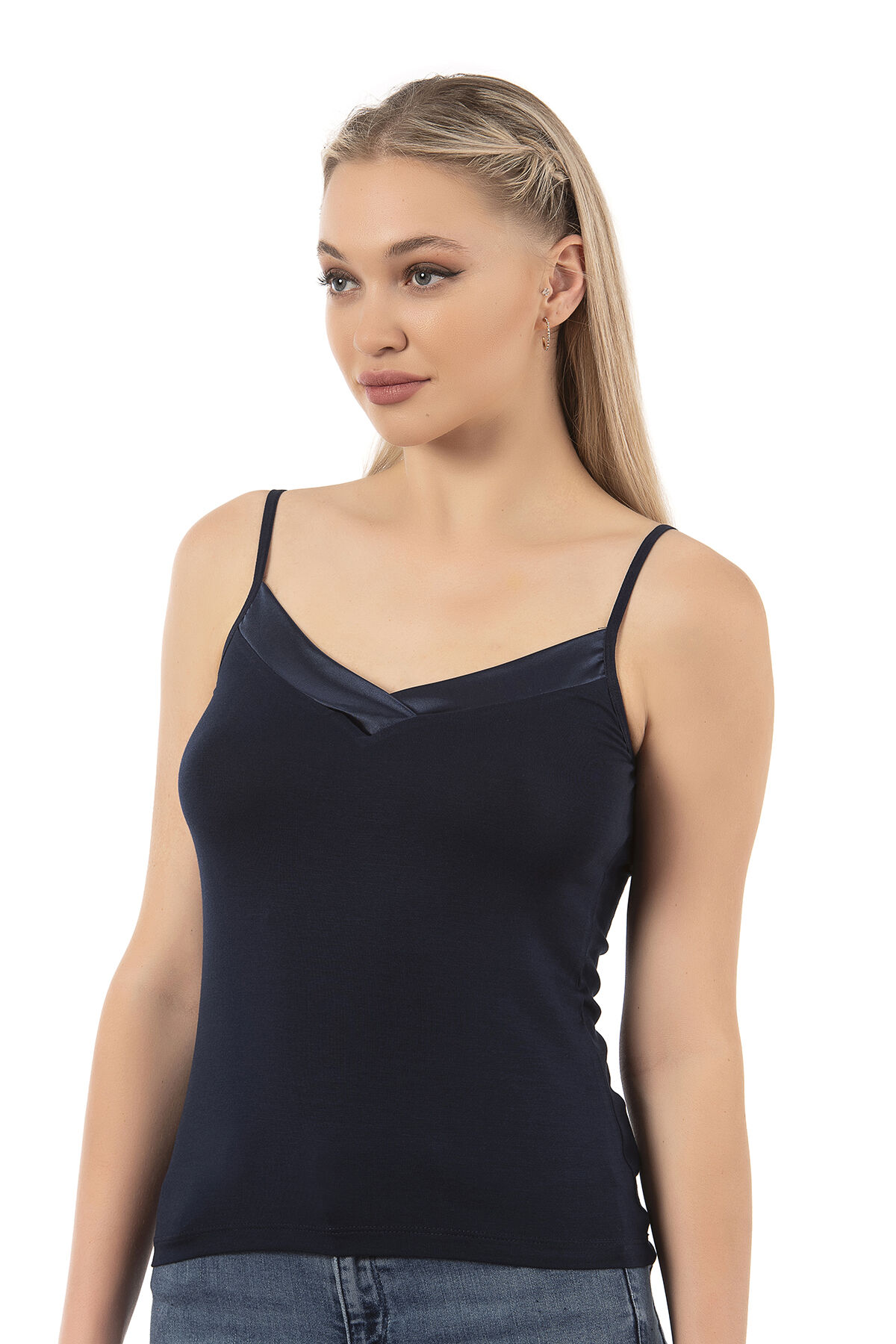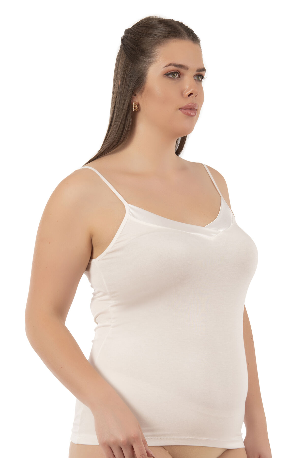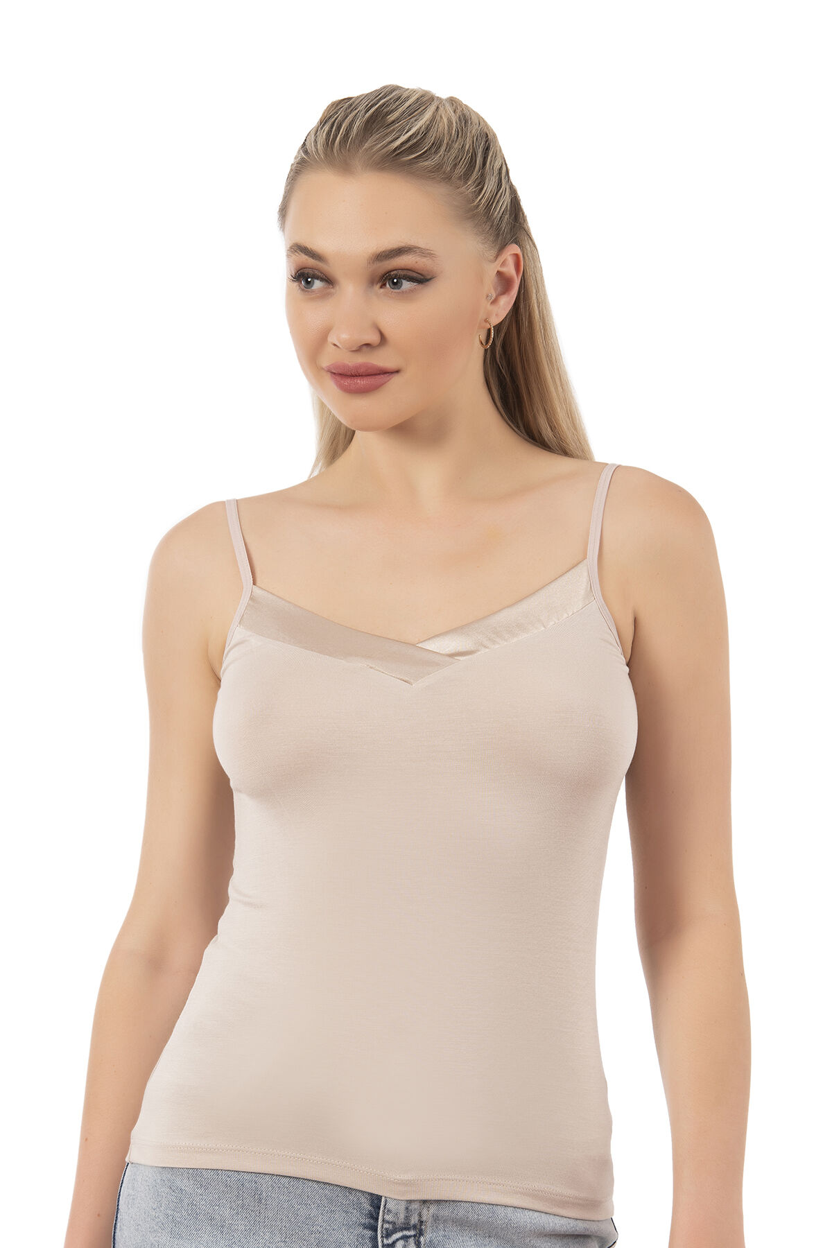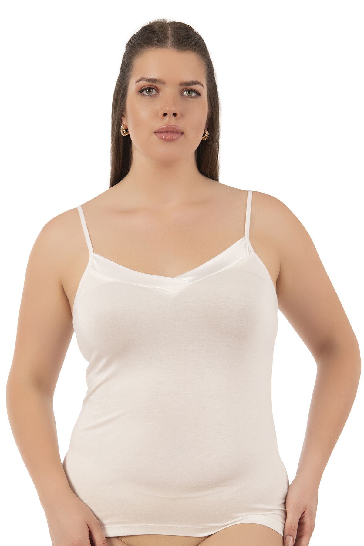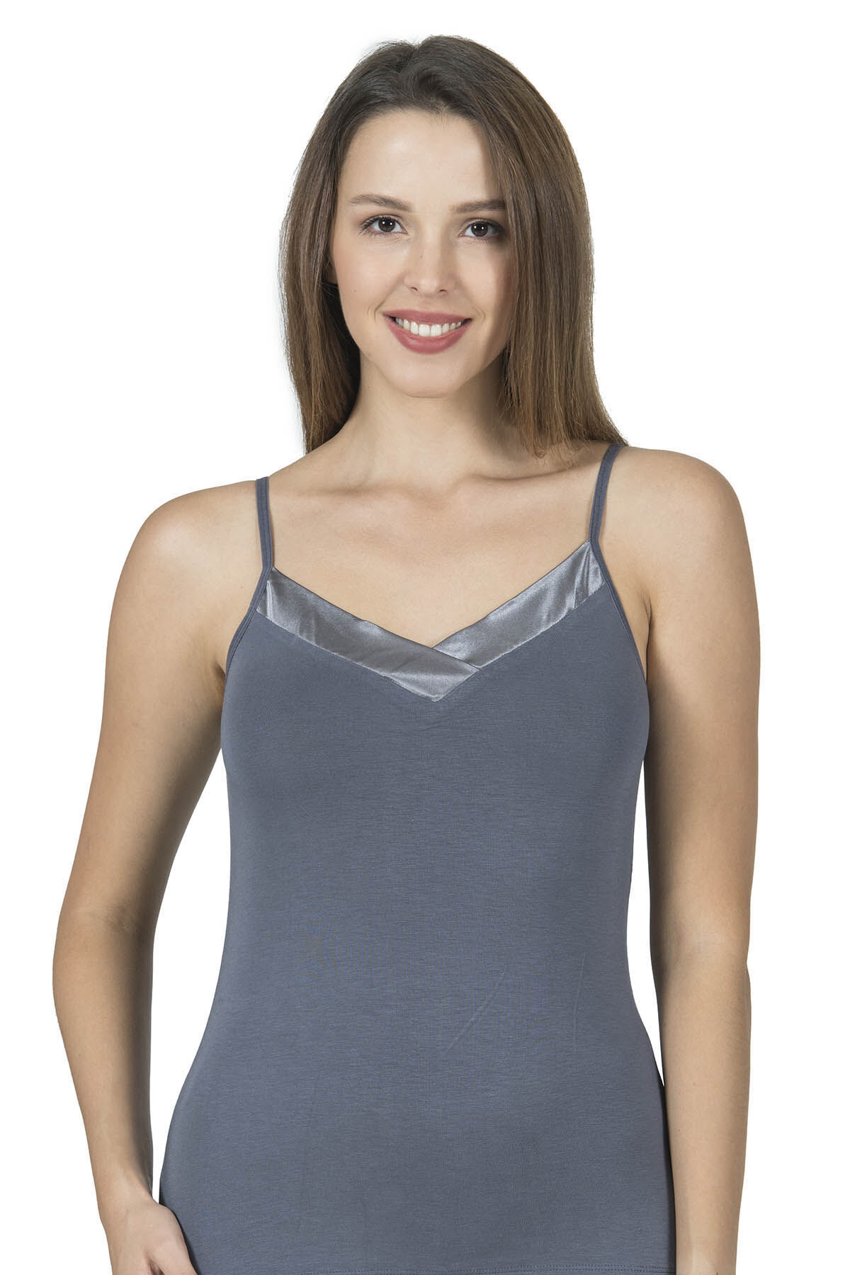 Özkan 2040 5'li Paket Kadın Premium Kumaş Viskon Saten Yakalı Esnek Rahat İnce Askılı Atlet;