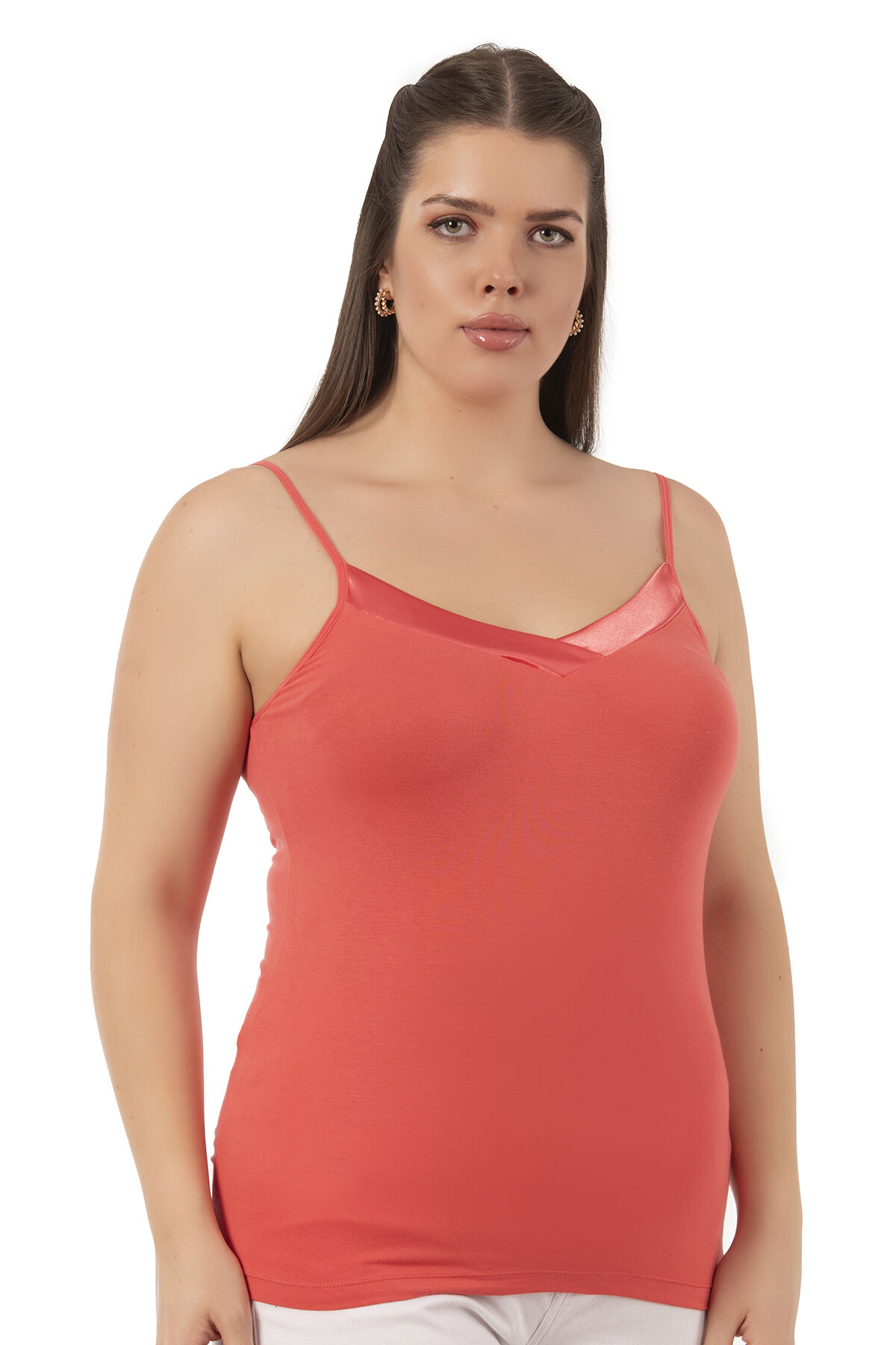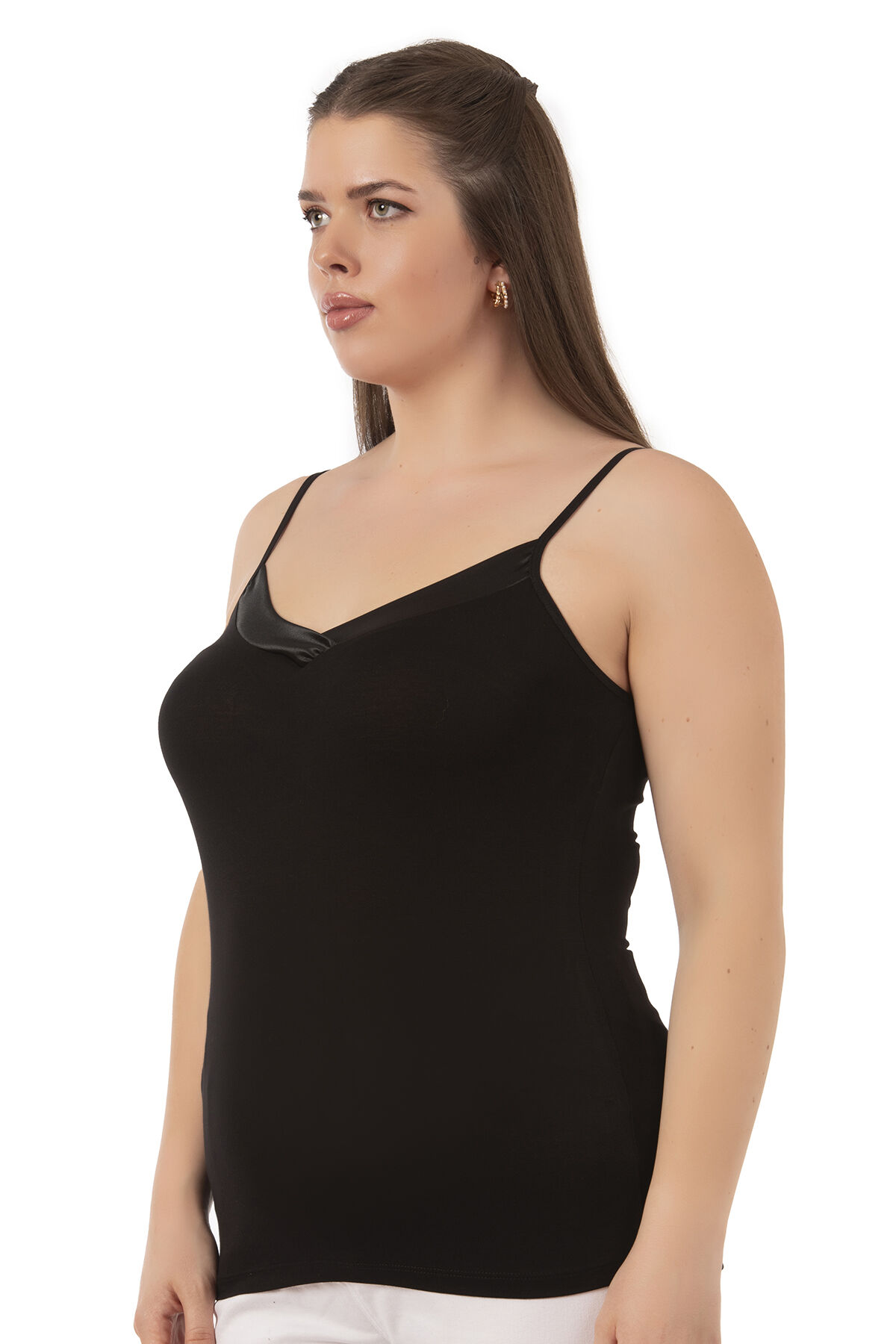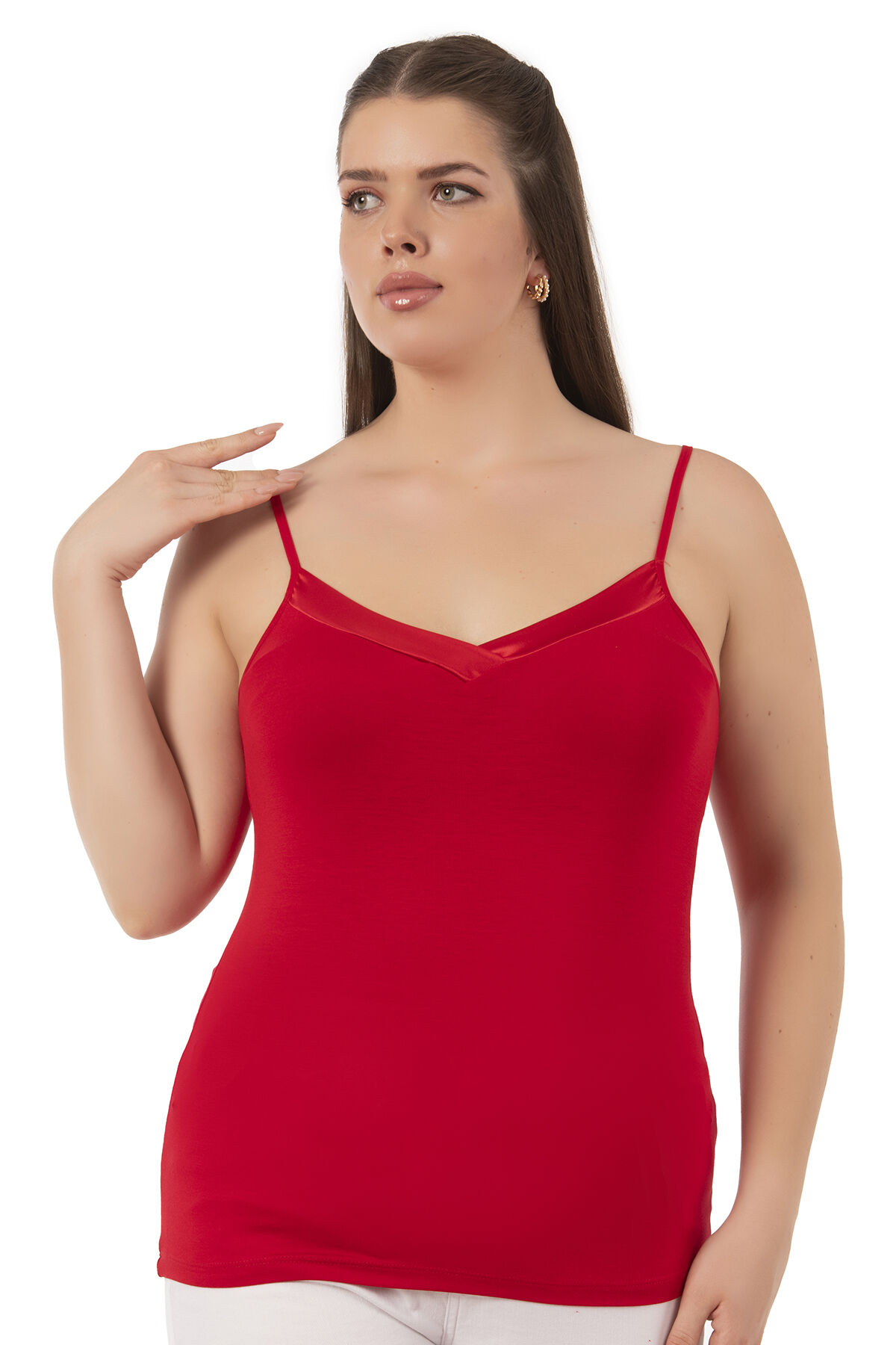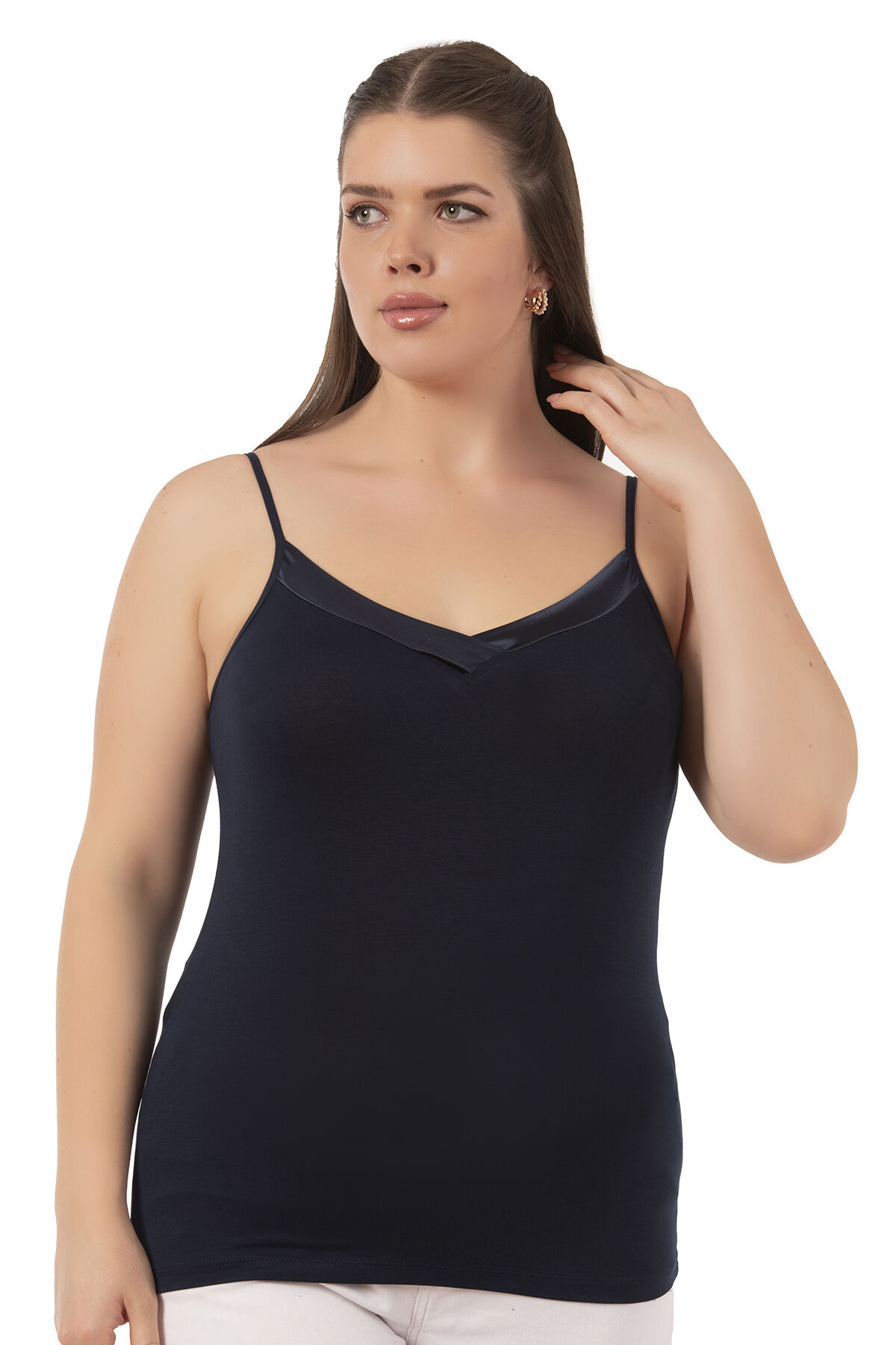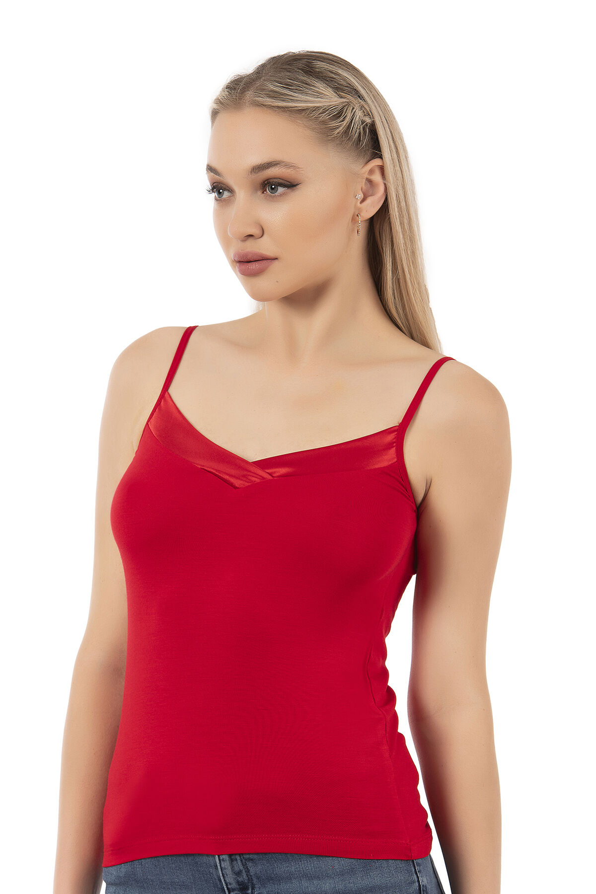 Özkan 2040 5'li Paket Kadın Premium Kumaş Viskon Saten Yakalı Esnek Rahat İnce Askılı Atlet;