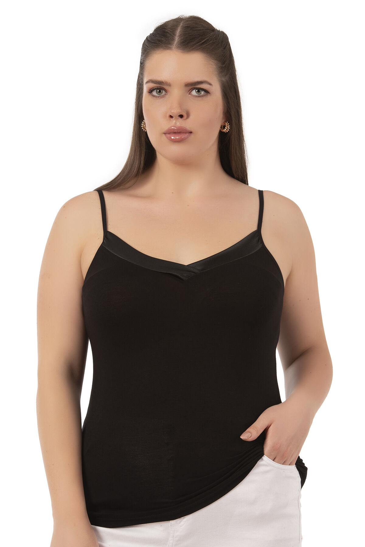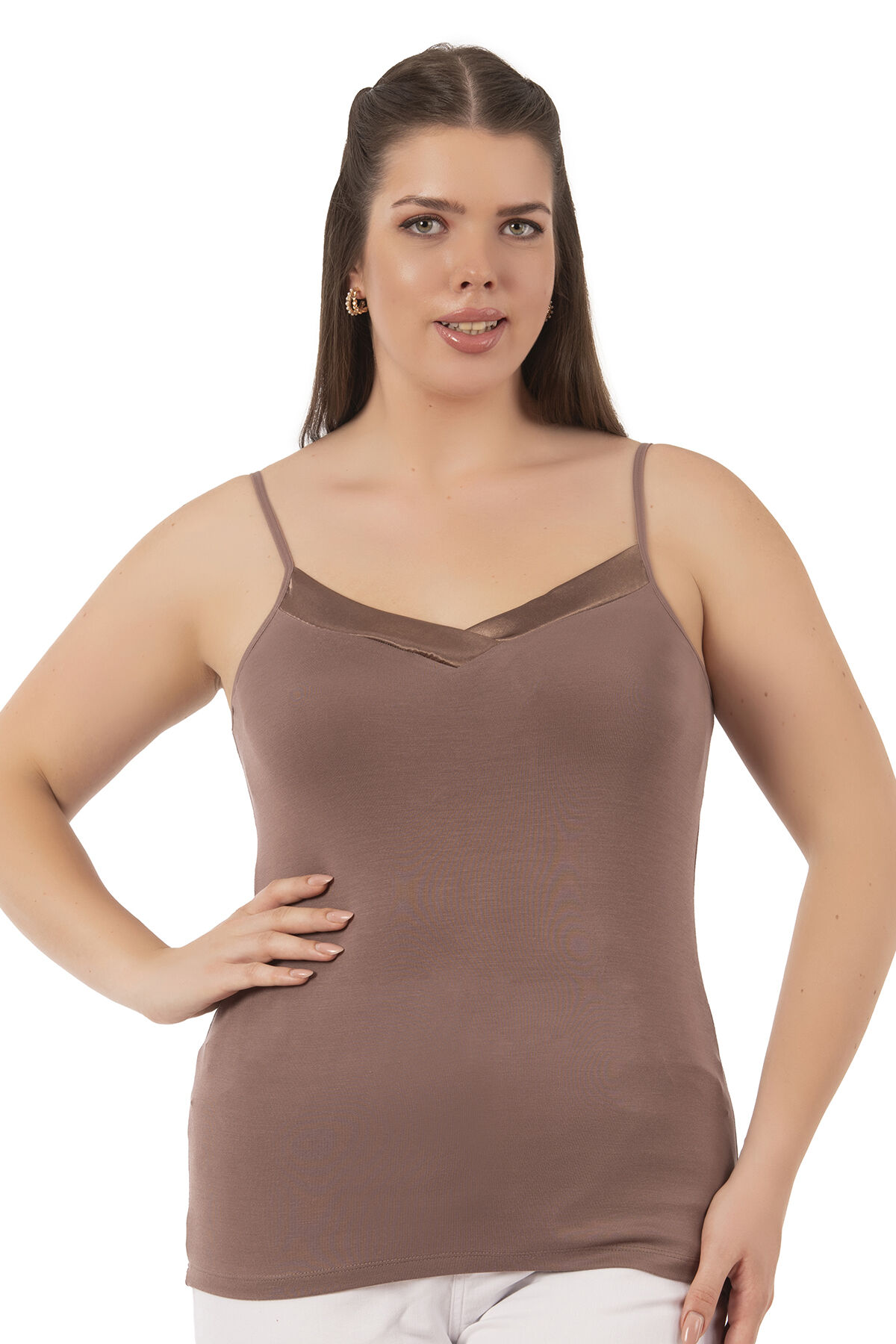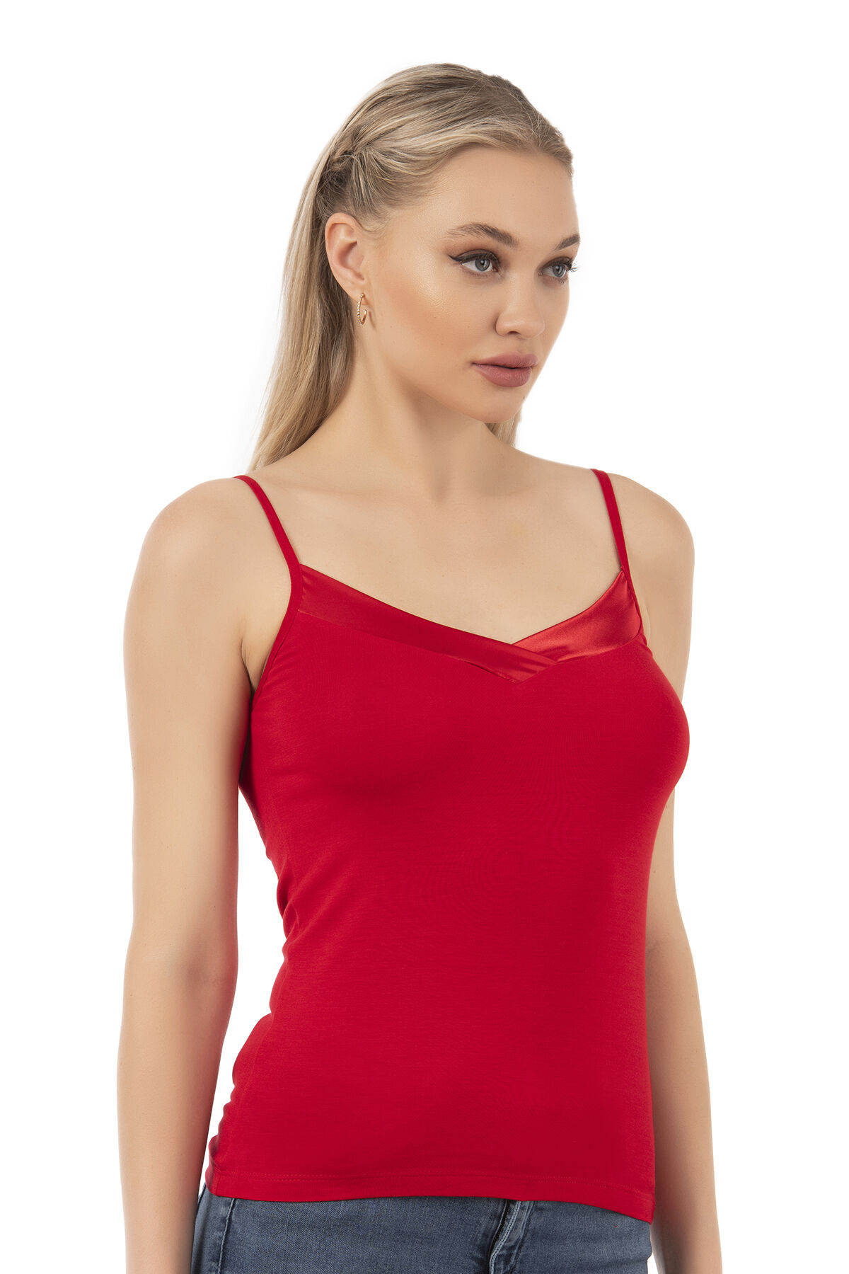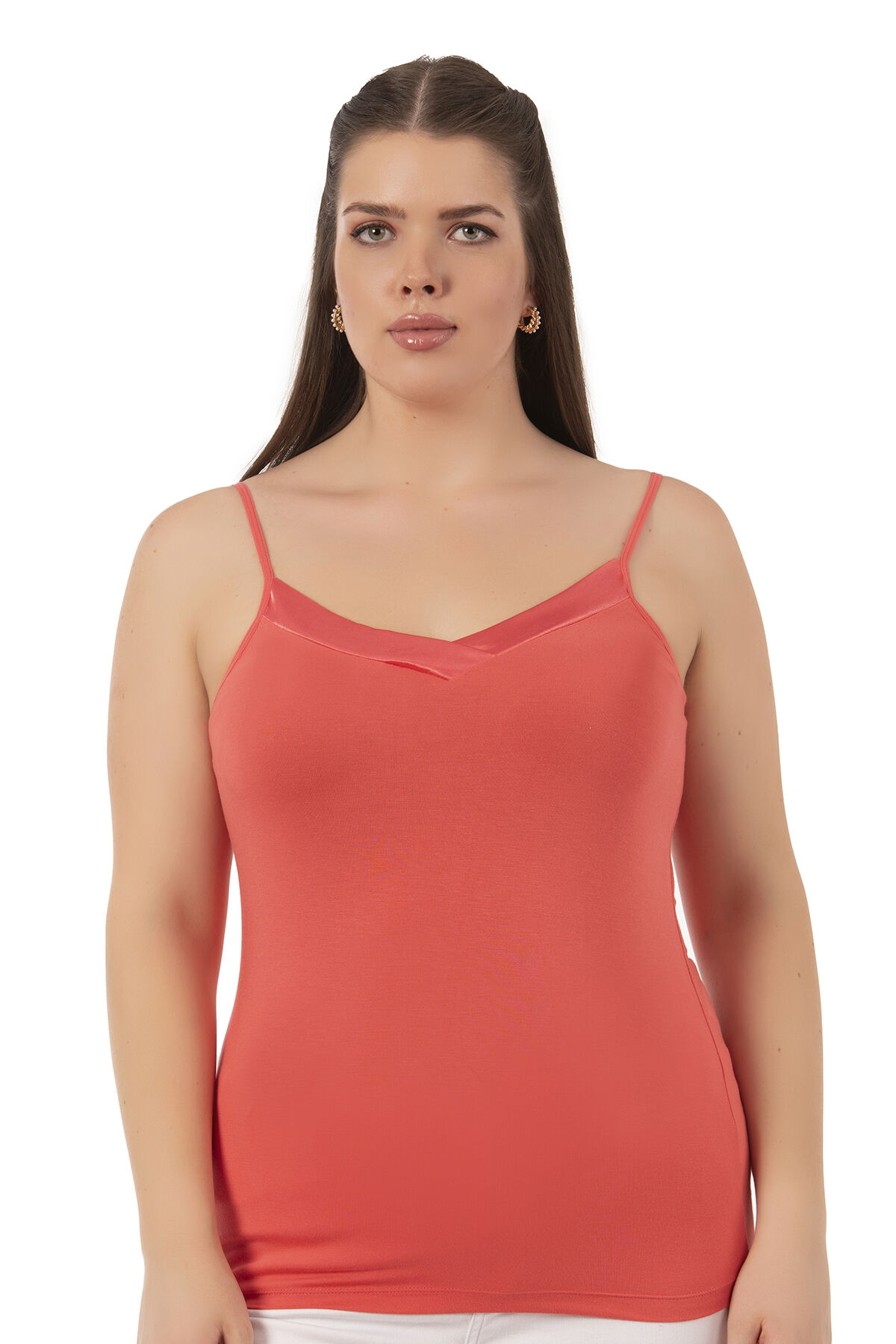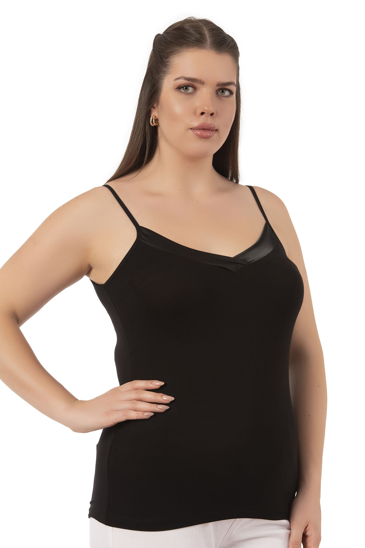 Özkan 2040 5'li Paket Kadın Premium Kumaş Viskon Saten Yakalı Esnek Rahat İnce Askılı Atlet;