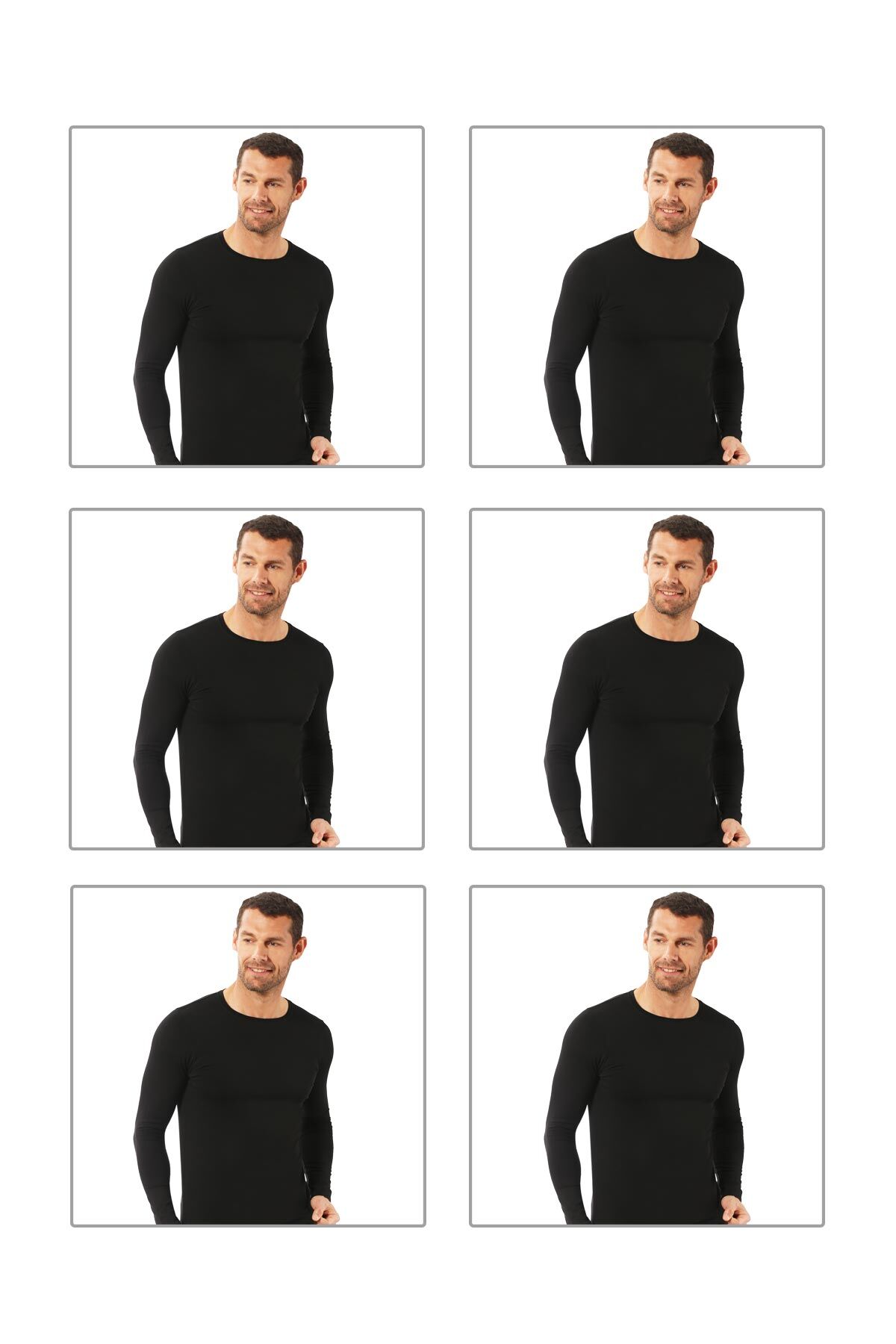 Özkan 0266 6'lı Paket Erkek Penye Likralı Pamuklu Yuvarlak Yaka Uzun Kol Tişört Fanila