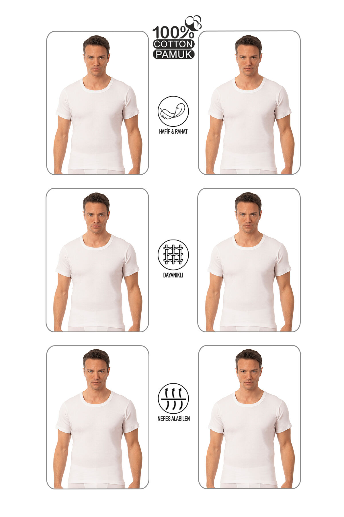 Özkan 0059 6'lı Paket Erkek %100 Pamuklu Süprem Kumaş Açık Yaka Yarım Kol Atlet Fanila;