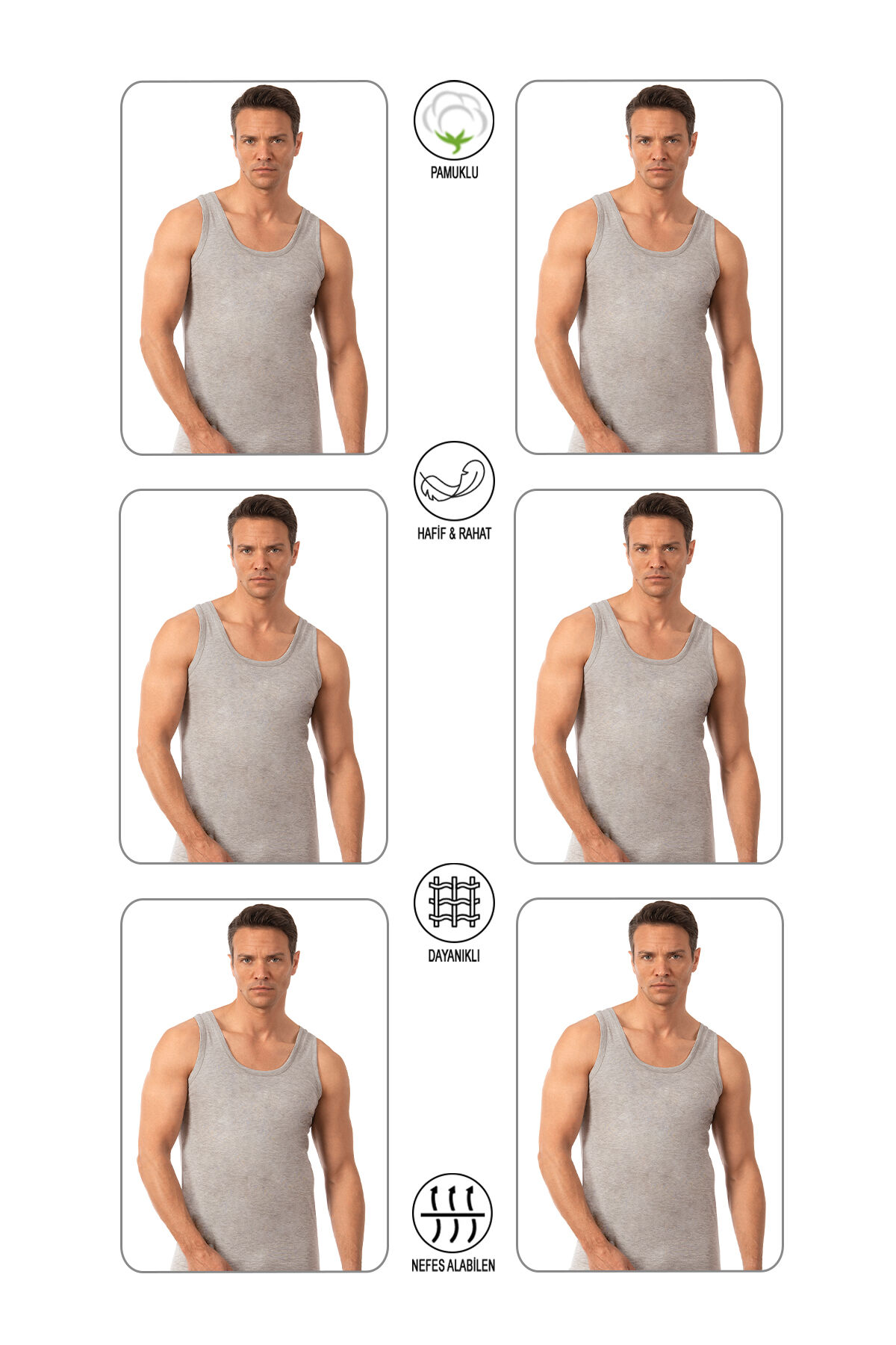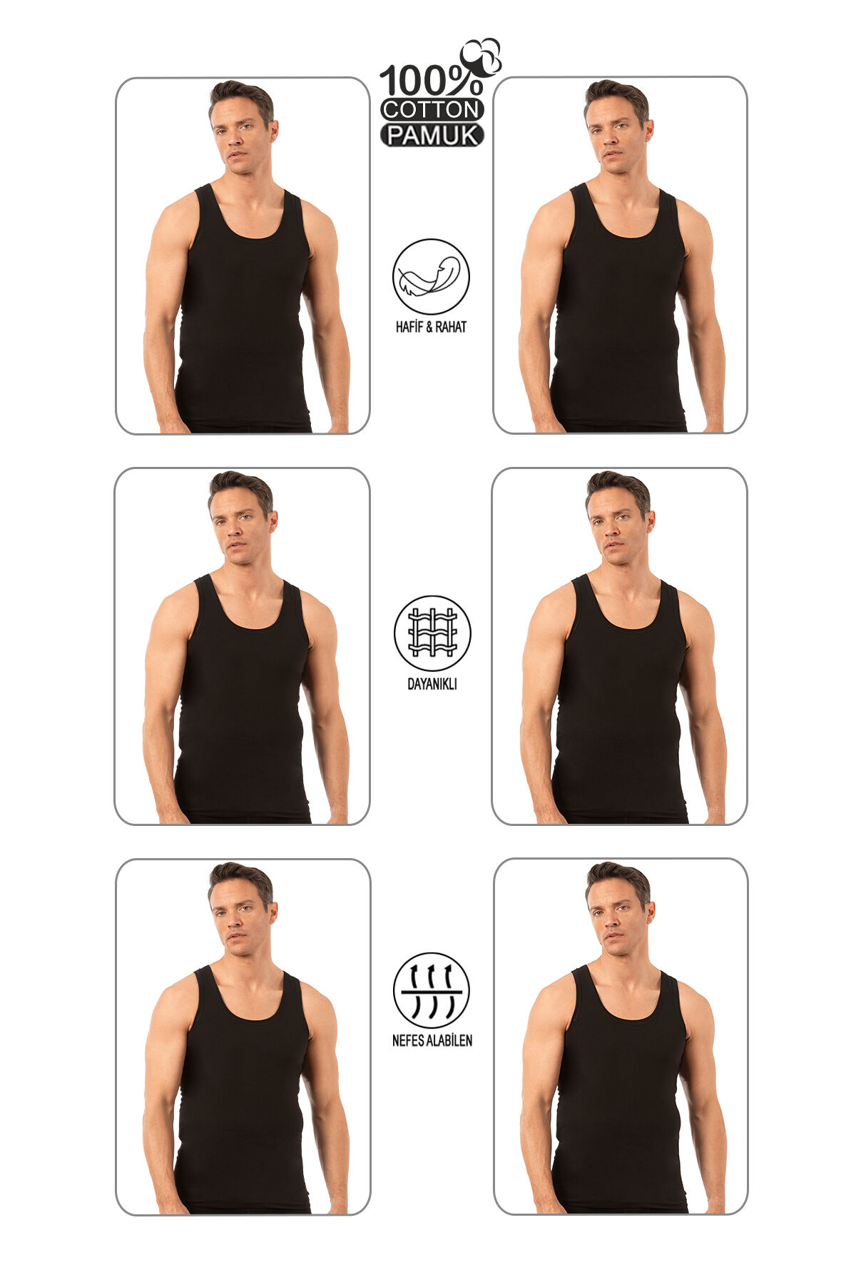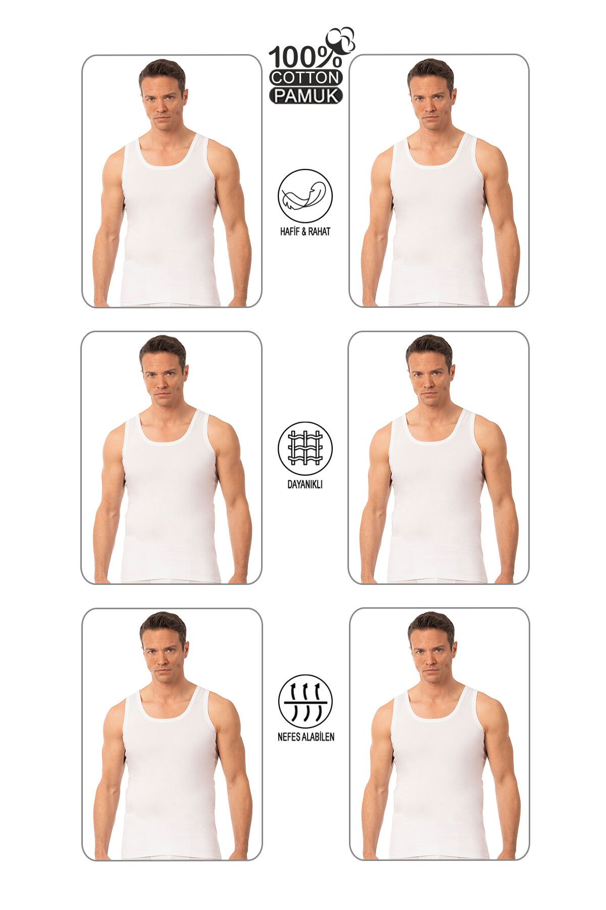 Özkan 0050 6'lı Paket Erkek %100 Pamuklu Penye Süprem Kalın Askılı Atlet;