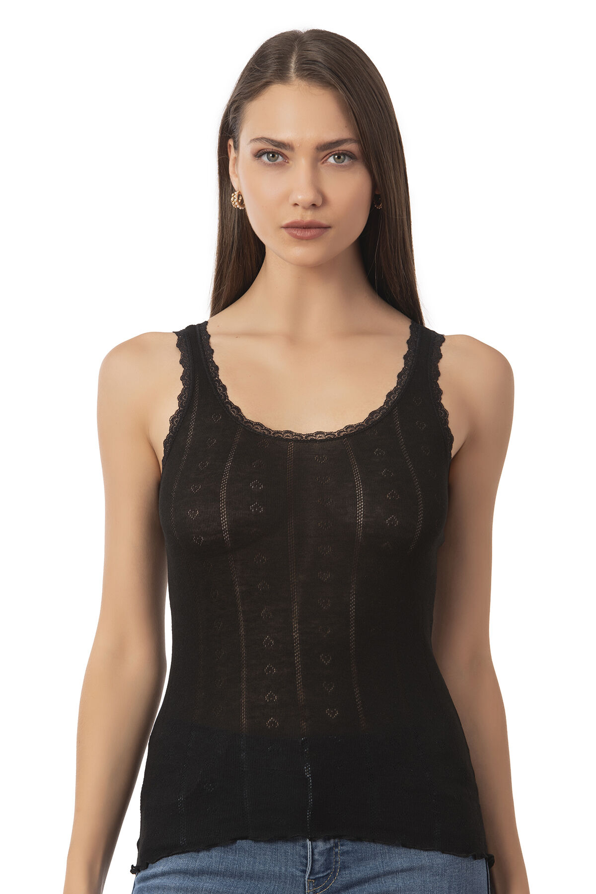 Özkan 23493 Kadın Viskon Transferli Ribana Esnek Yumuşak Kalın Askılı Atlet;