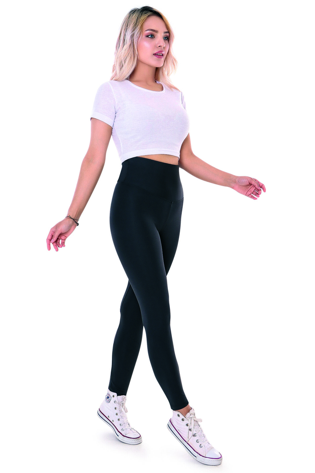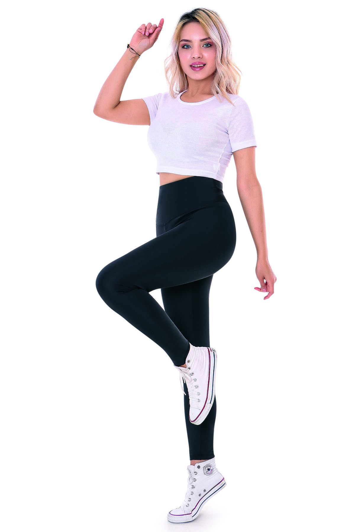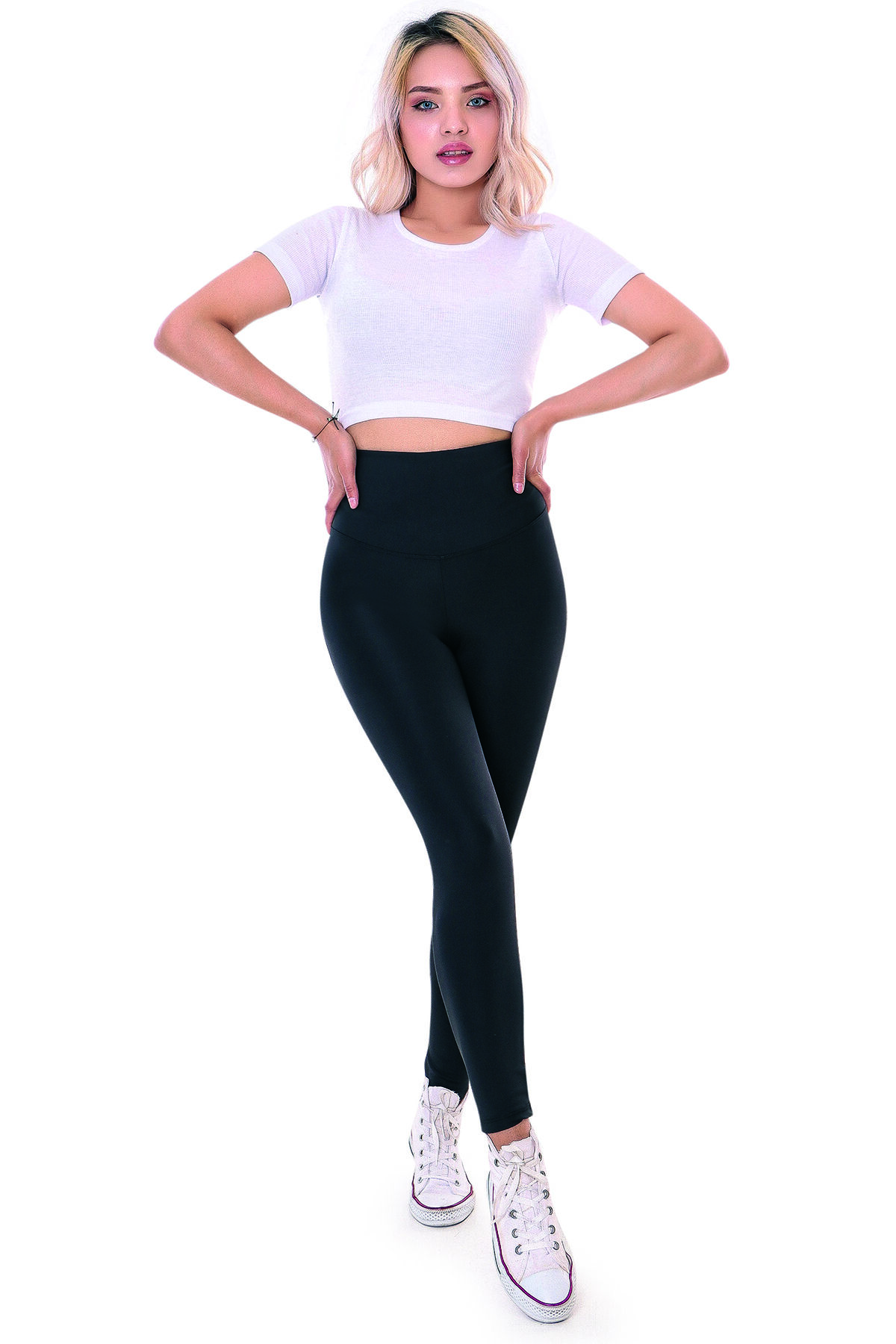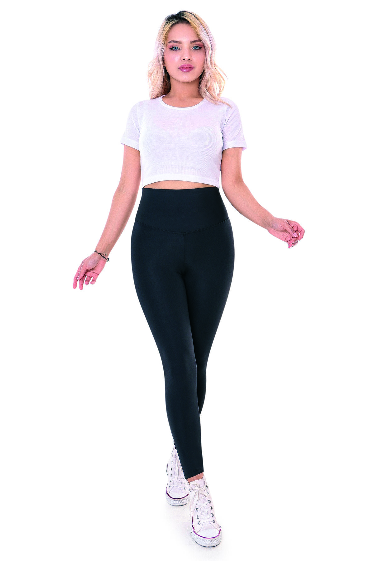 Kompedan SS23 Kadın Yüksek Bel Toparlayıcı Esnek Beli Lastikli Örme Düz Tayt;
