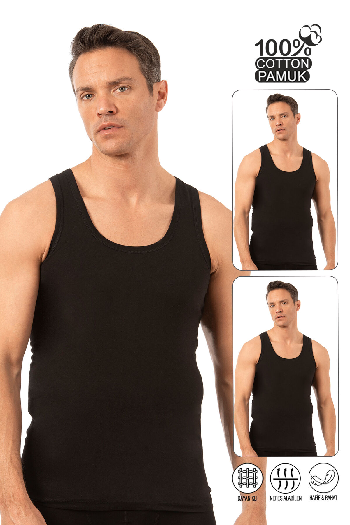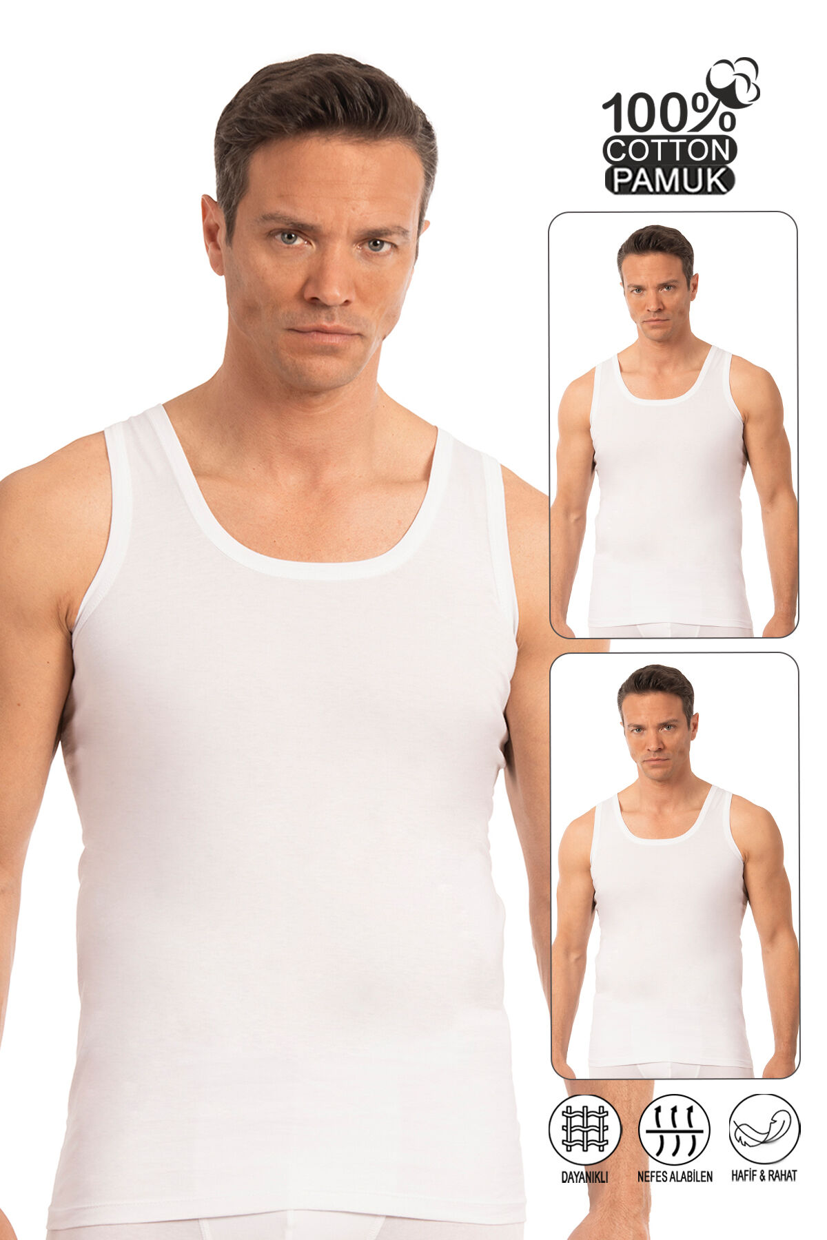 Özkan 0050 2'li Paket Erkek Pamuklu Süprem Esnek Rahat Kalın Askılı Atlet;