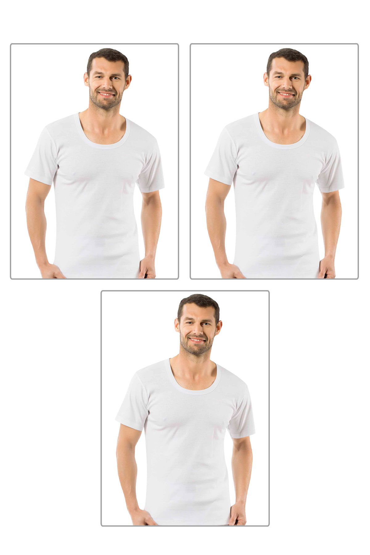 Özkan 0115 3'lü Paket Erkek %100 Pamuk Ribana Kumaş Esnek Rahat Geniş Yaka Kısa Kollu Fanila Atlet;