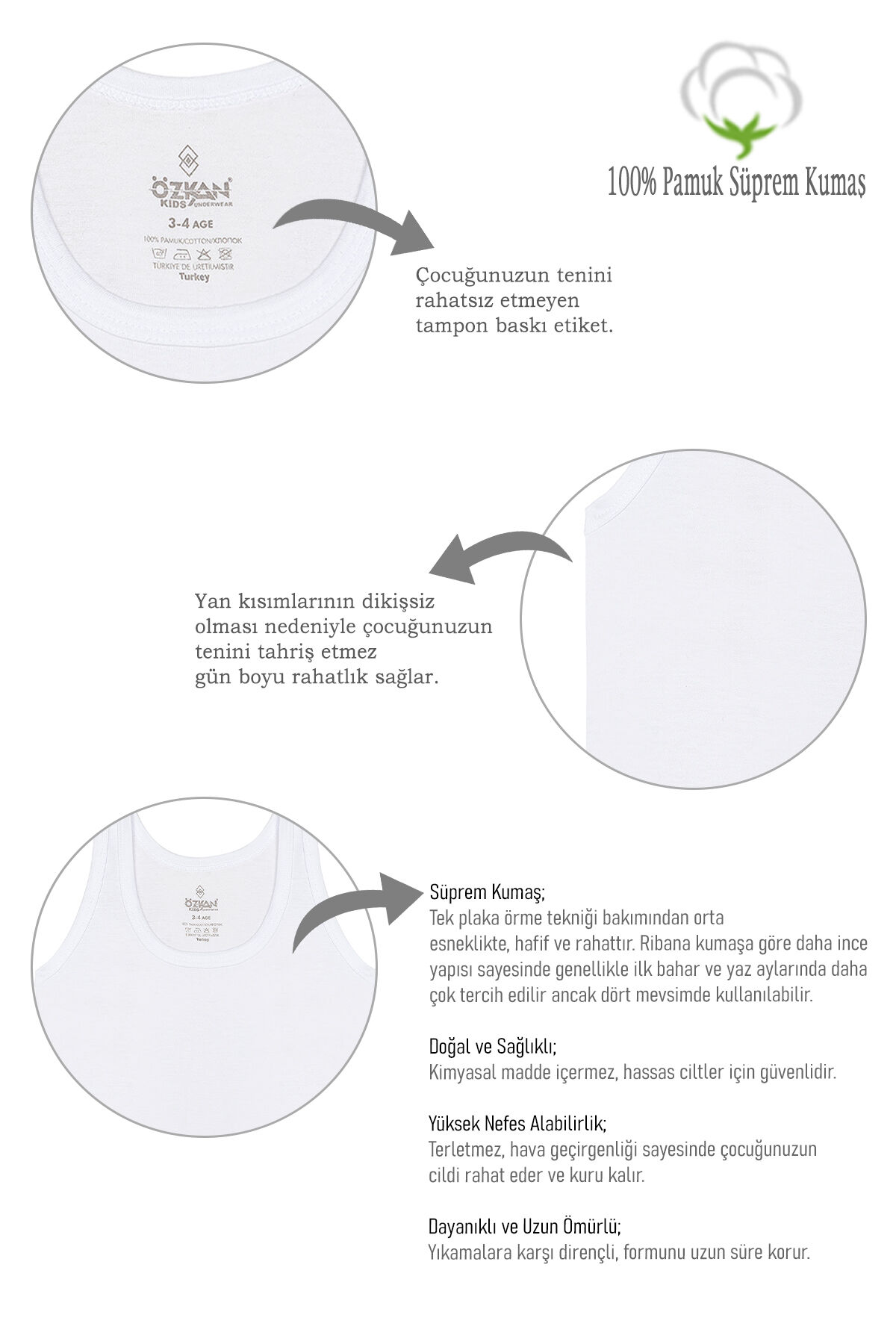 %100 doğal pamuktan üretilmiştir.;