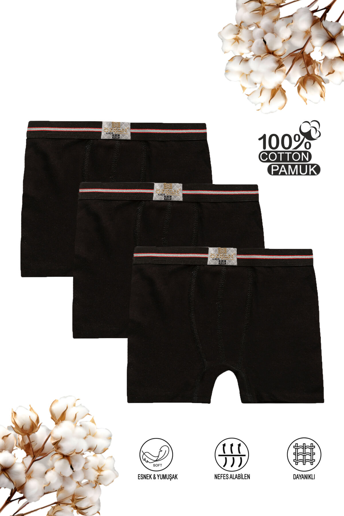 Özkan 0711 3'lü Paket Erkek Çocuk %100 Pamuklu Esnek Yumuşak Boxer Şort;
