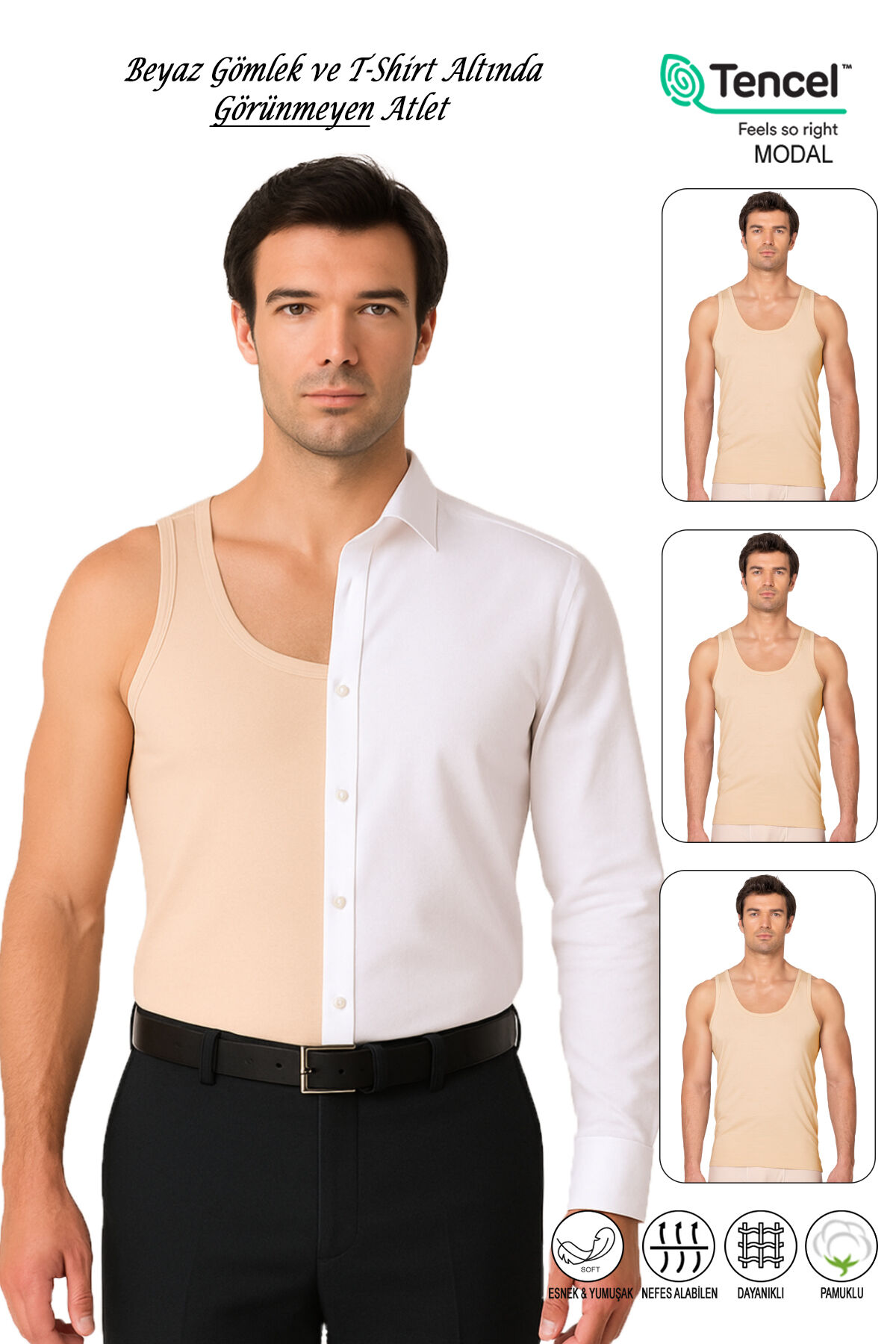 Özkan 10852 3'lü Paket Erkek Premium Kumaş Pamuklu Modal Esnek Rahat Kalın Askılı Atlet;