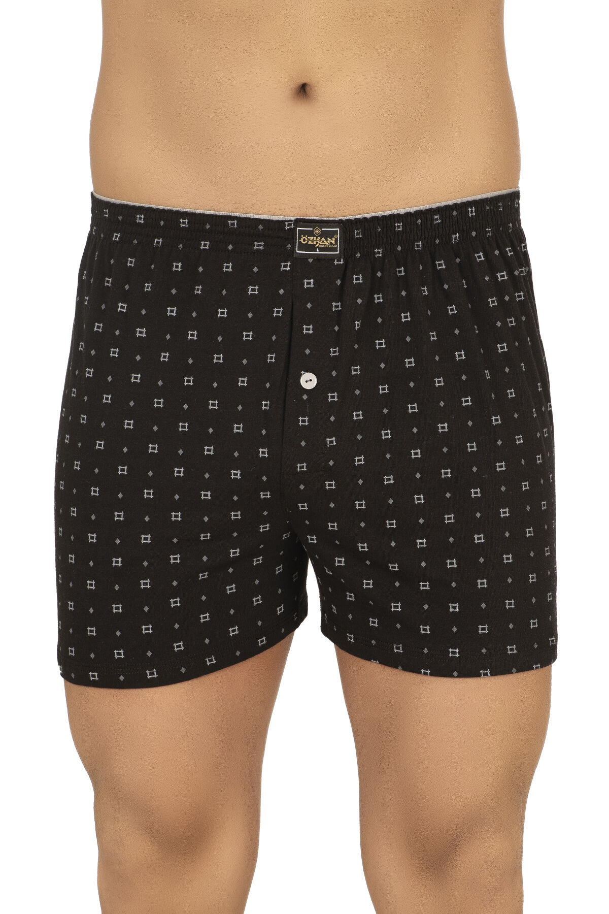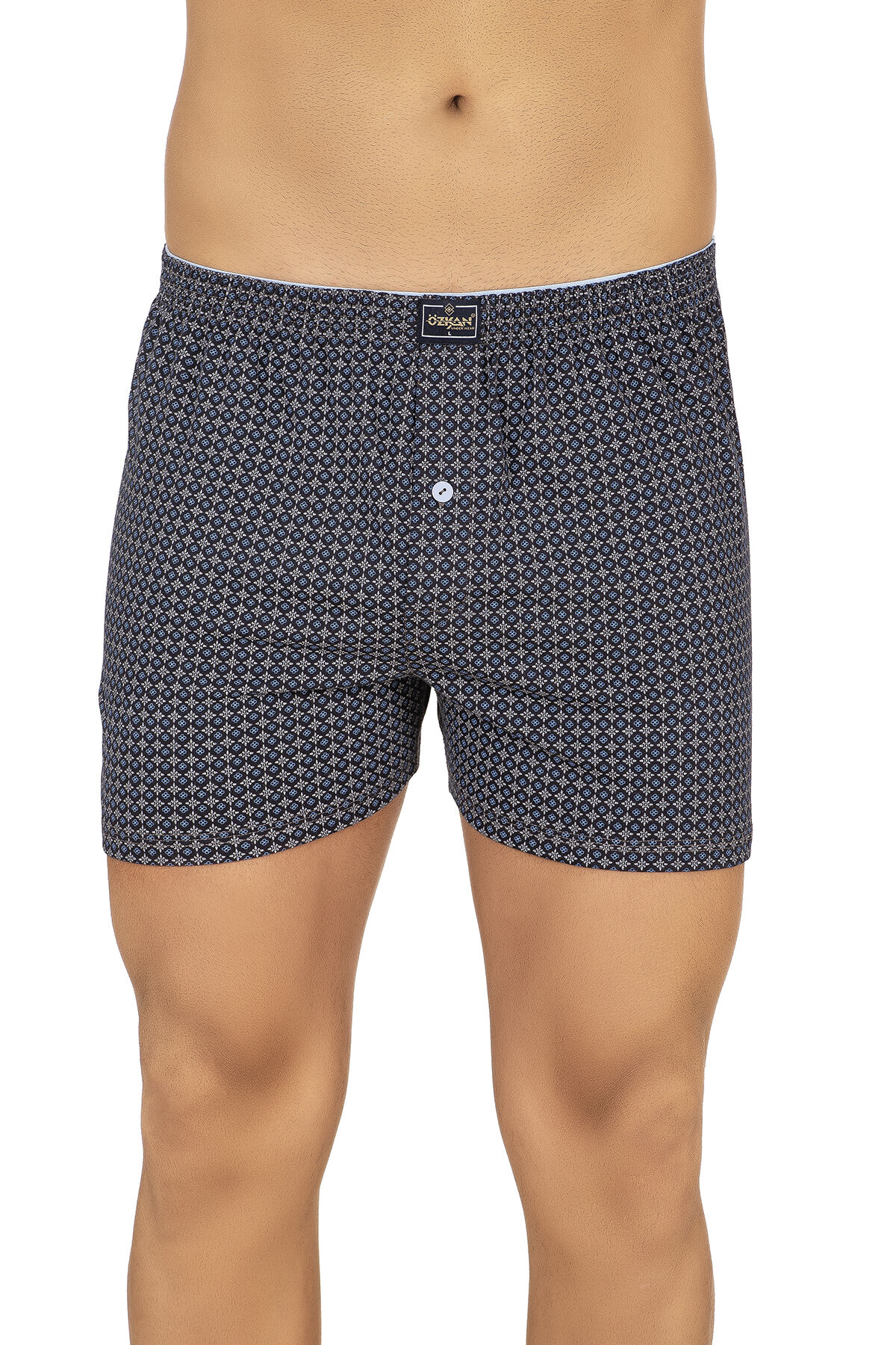 Özkan 11112 5'li Paket Erkek %100 Pamuklu Havlu Bel Esnek Yumuşak Düğmeli Desenli Penye Boxer Şort Külot