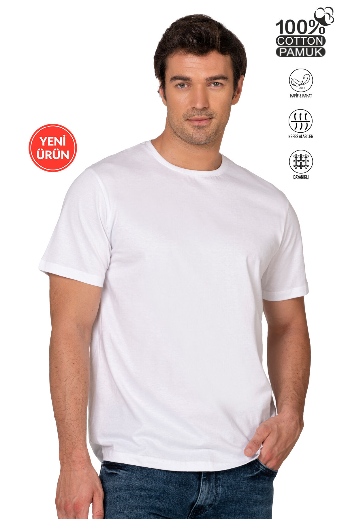 Özkan 12420 Erkek %100 Pamuklu Süprem Yumuşak Rahat Kapalı Yaka Kısa Kollu T-shirt;