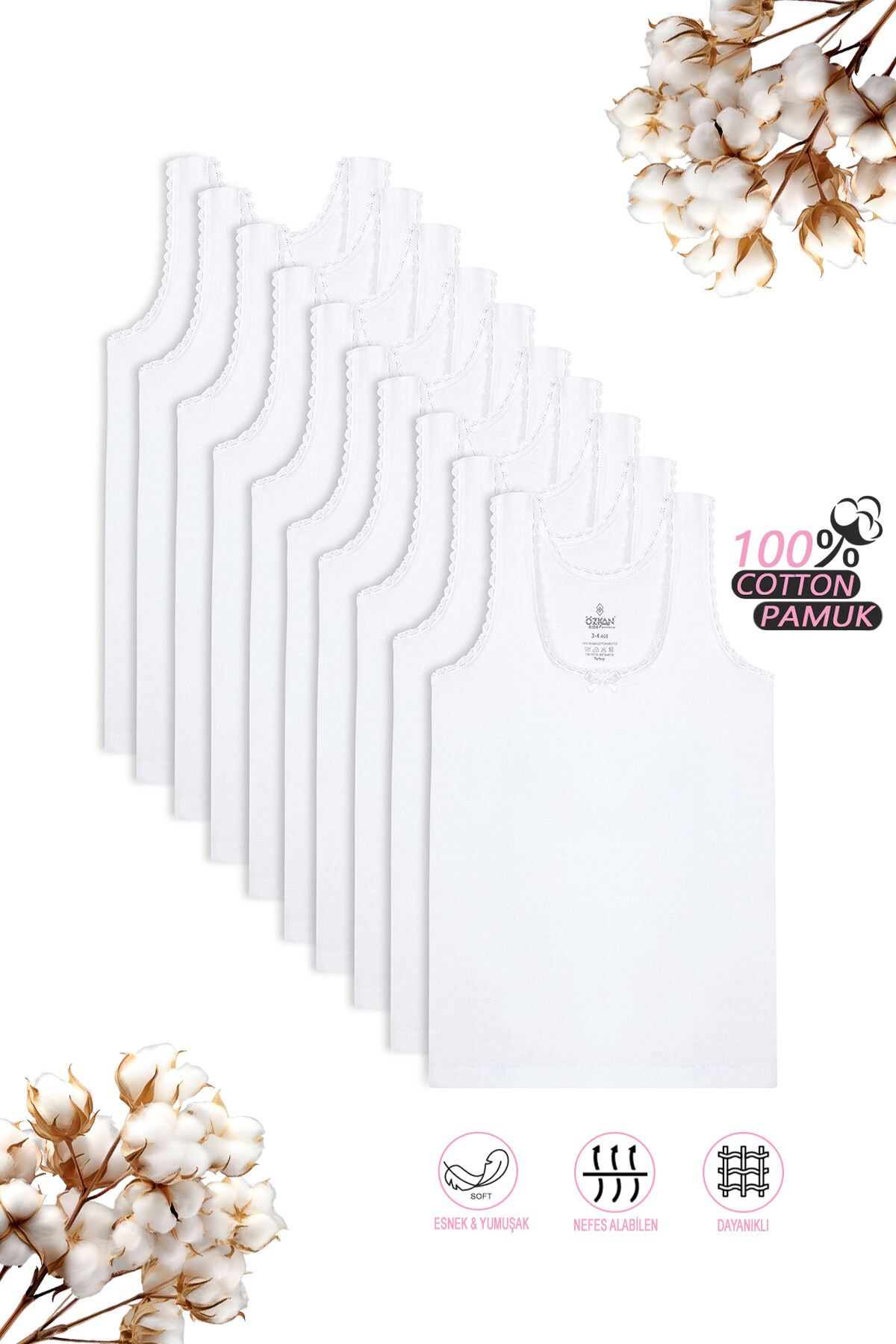 Özkan 1605 10'lu Paket Kız Çocuk %100 Pamuklu Ribana Yakası Dantel Detaylı Esnek Rahat Kalın Askılı Atlet;