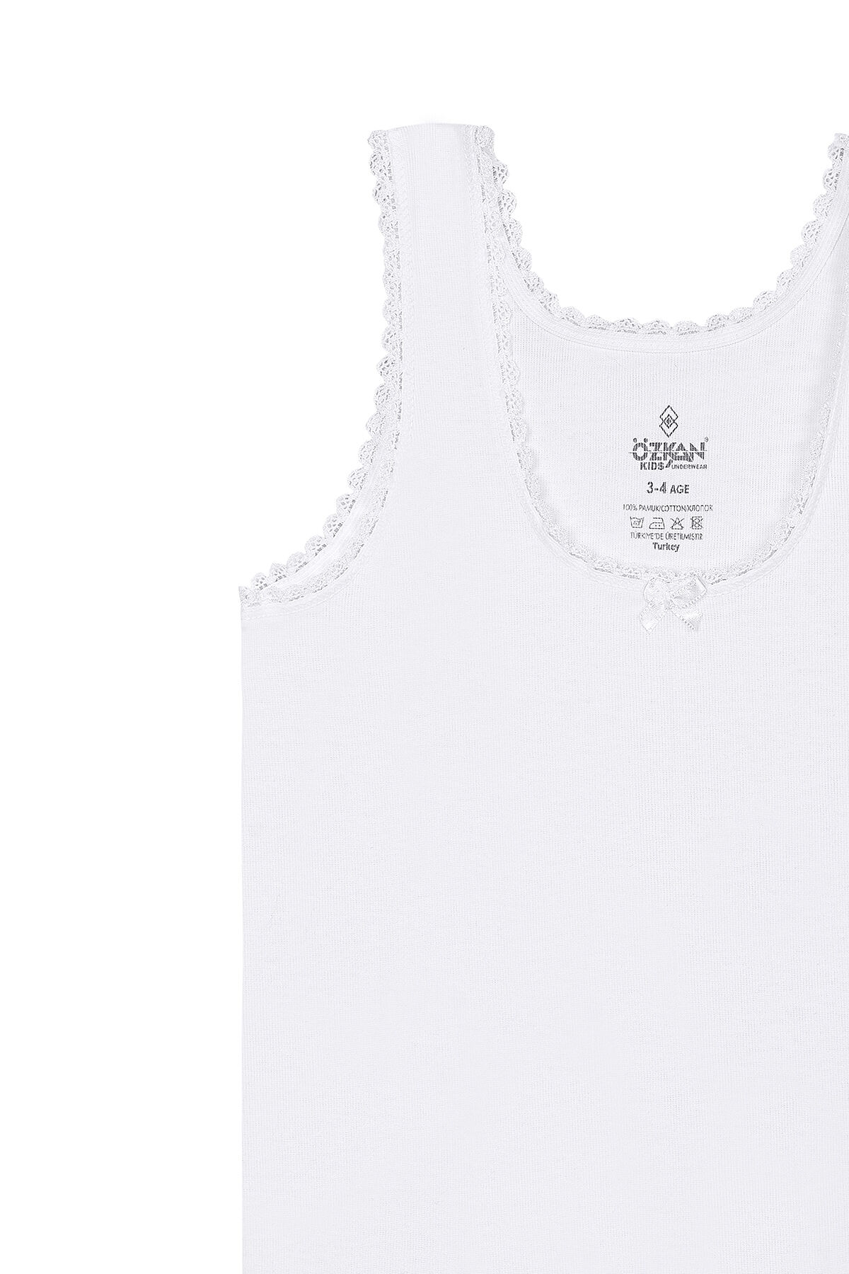 Özkan 1605 5'li Paket Kız Çocuk %100 Pamuklu Ribana Yakası Dantel Detaylı Esnek Rahat Kalın Askılı Atlet