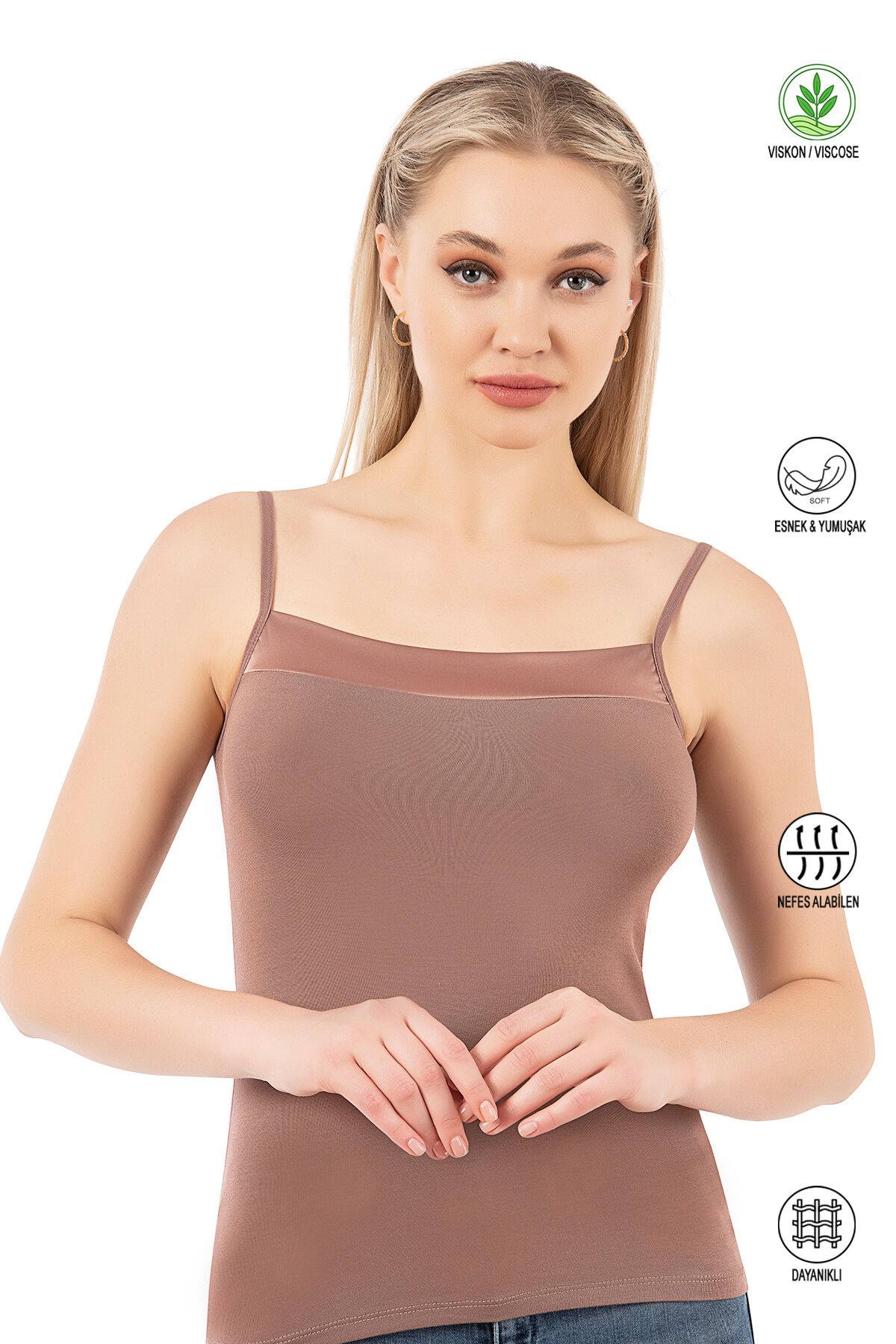 Özkan 2041 Kadın Premium Kumaş Viskon Yakası Saten Detaylı Esnek Yumuşak İnce Askılı Atlet
