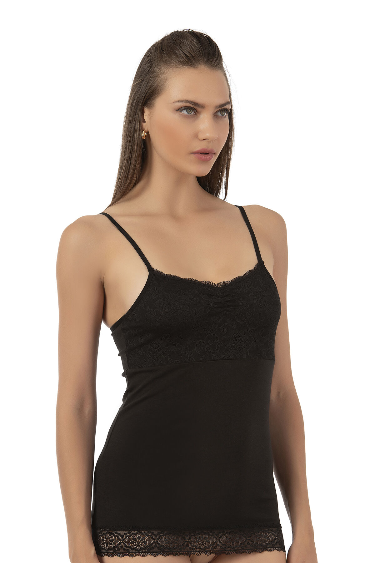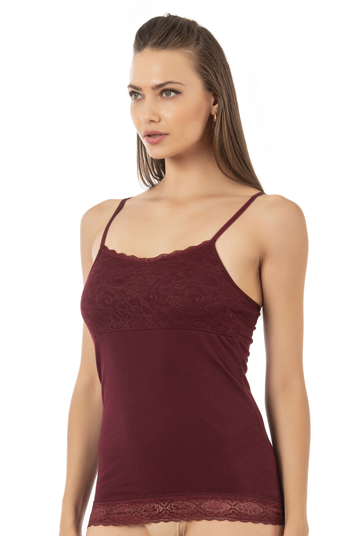 Özkan 24186 Kadın Pamuklu Likralı Süprem Dantel Kuplu İnce Askılı Atlet