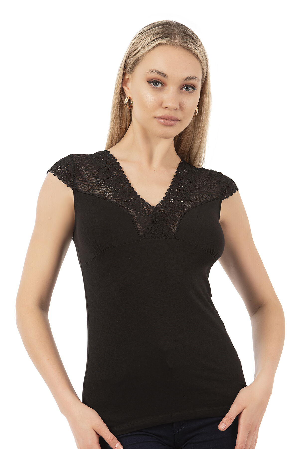 Özkan 24205 Kadın Pamuklu Kısa Kollu Dantelli Örme Atlet;