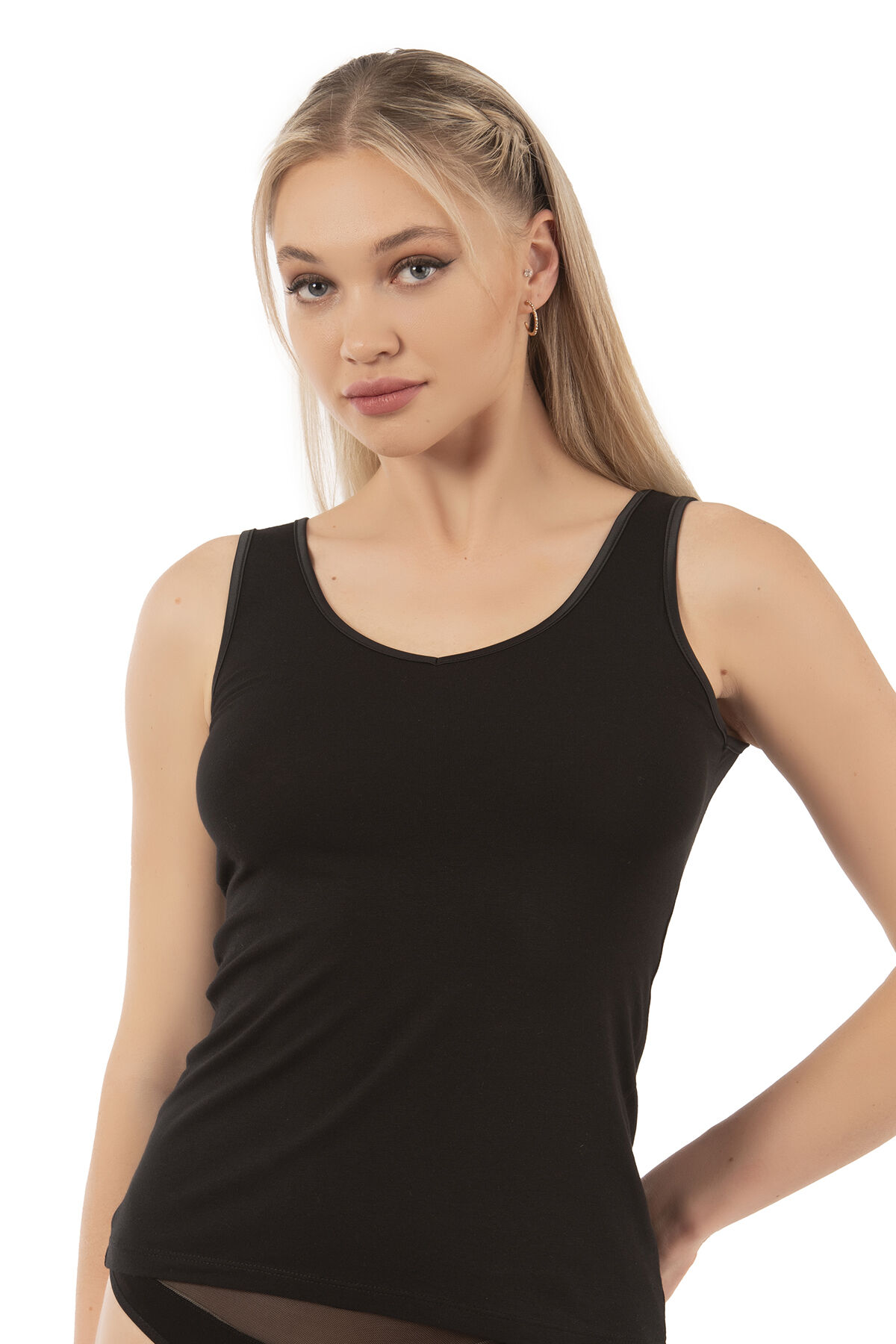 Özkan 25487 Kadın Pamuklu Modal Esnek Yumuşak Biyeli Kalın Askılı Örme Atlet