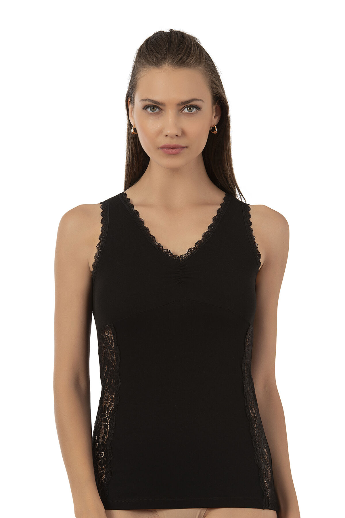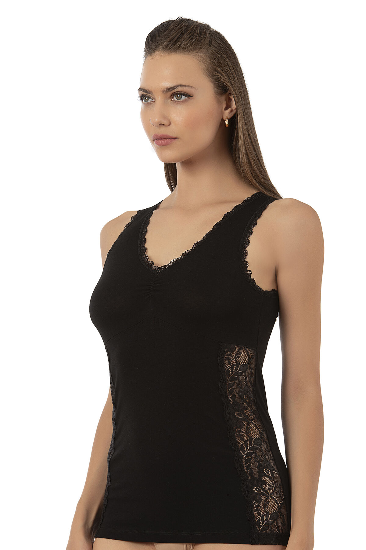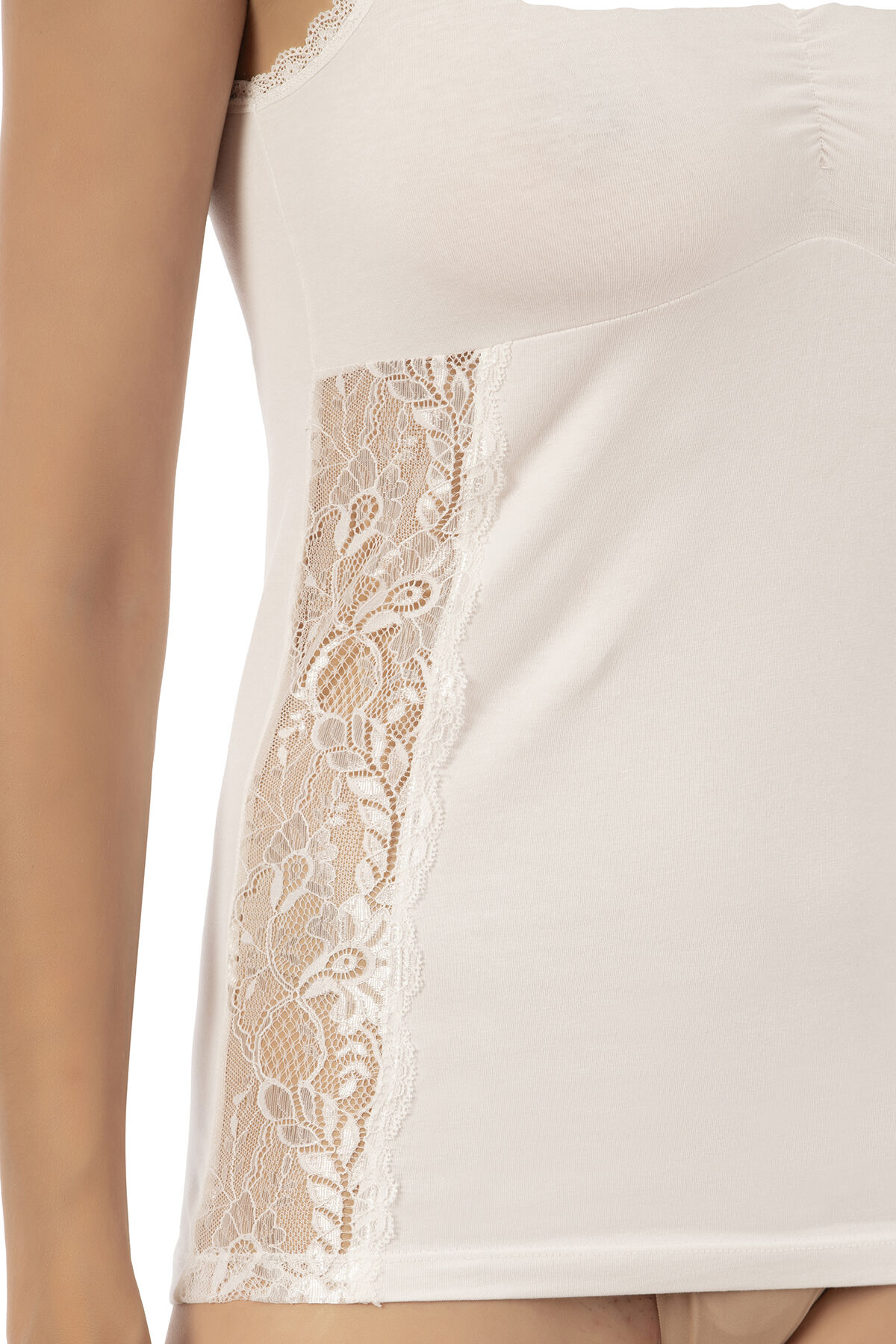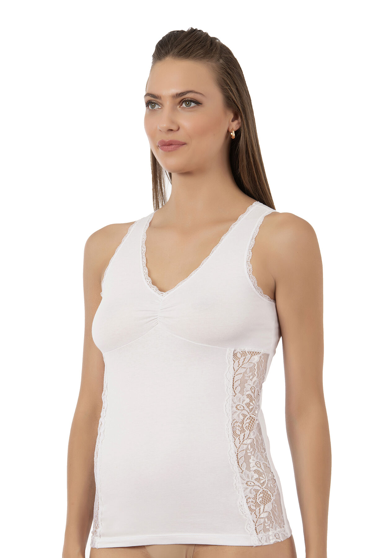 Özkan 25586 Kadın Pamuklu V Yaka Dantel Detaylı Kalın Askılı Süprem Atlet;