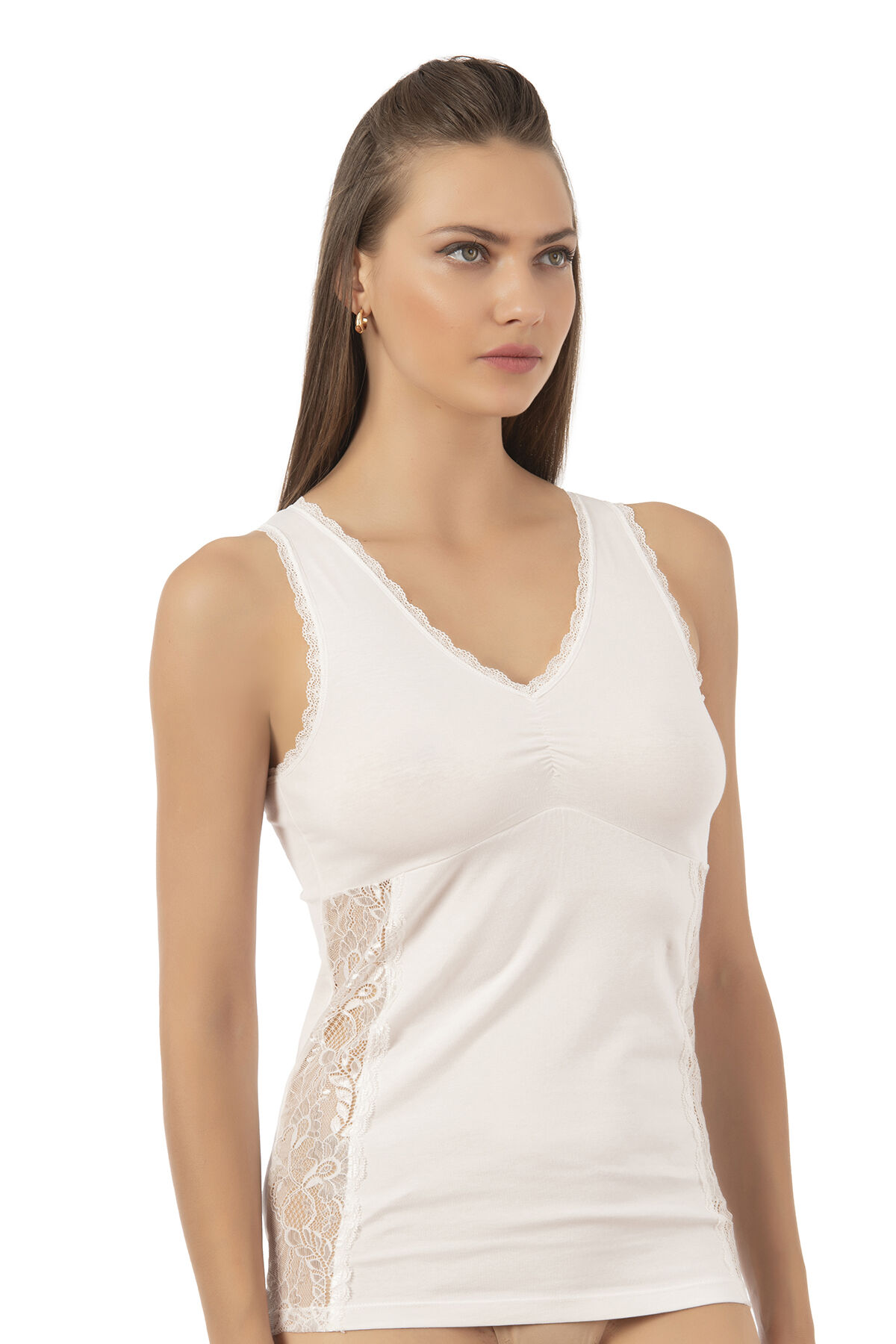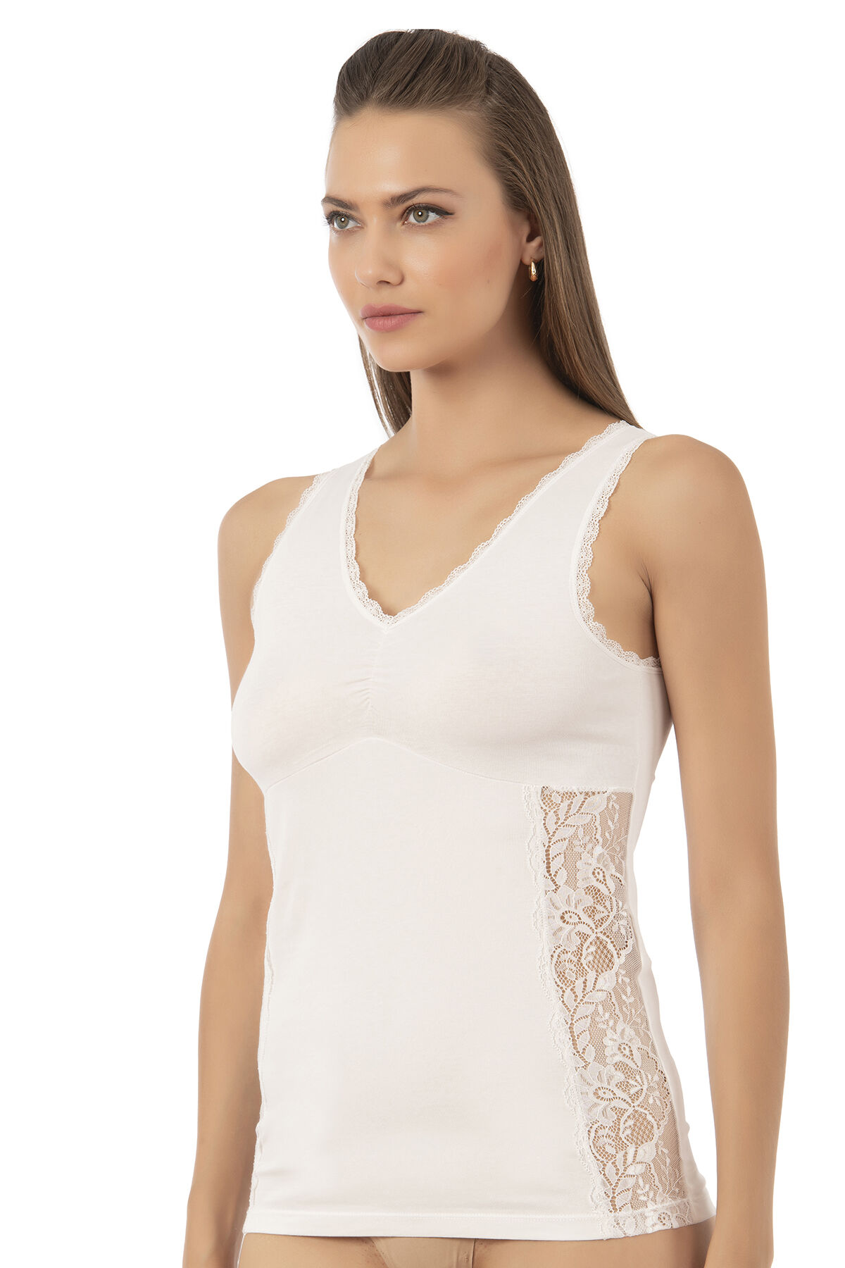 Özkan 25586 Kadın Pamuklu V Yaka Dantel Detaylı Kalın Askılı Süprem Atlet
