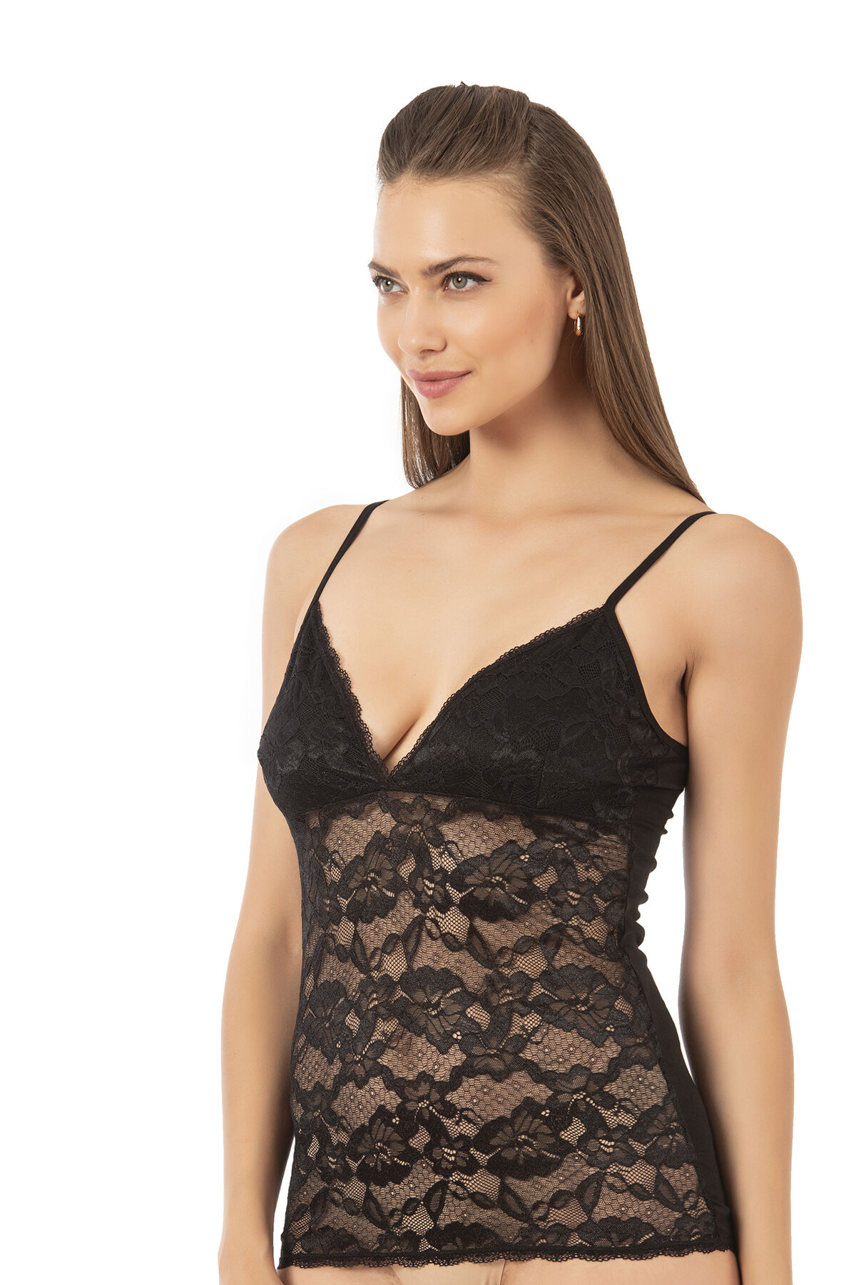 Özkan 25596 Kadın Pamuklu Modal Esnek Rahat Dantelli V Yaka İnce Askılı Atlet