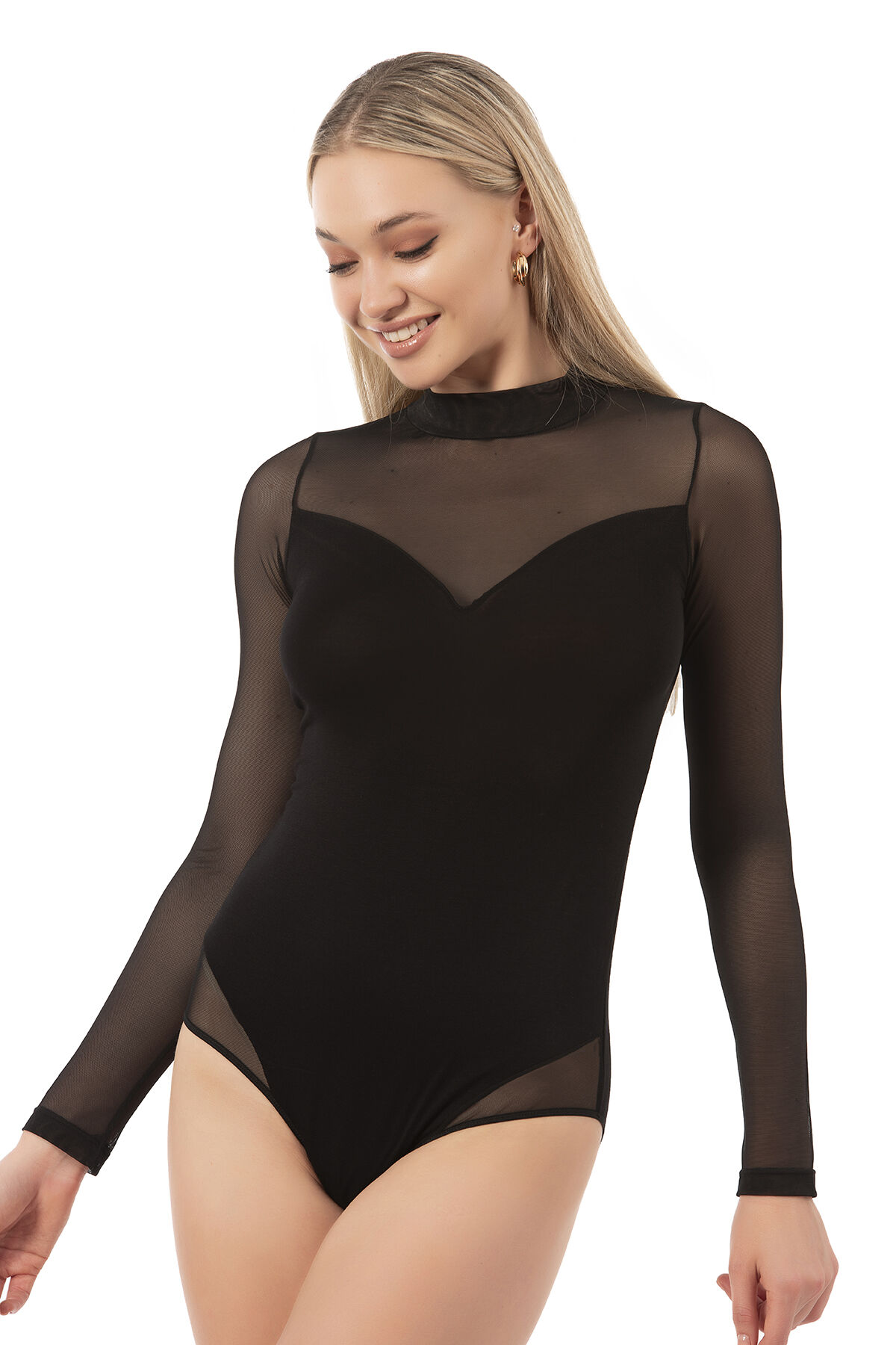 Özkan 25633 Kadın Ring Viskon Yarım Balıkçı Yaka Tül Detaylı Uzun Kollu Kancalı Çıtçıtlı Body