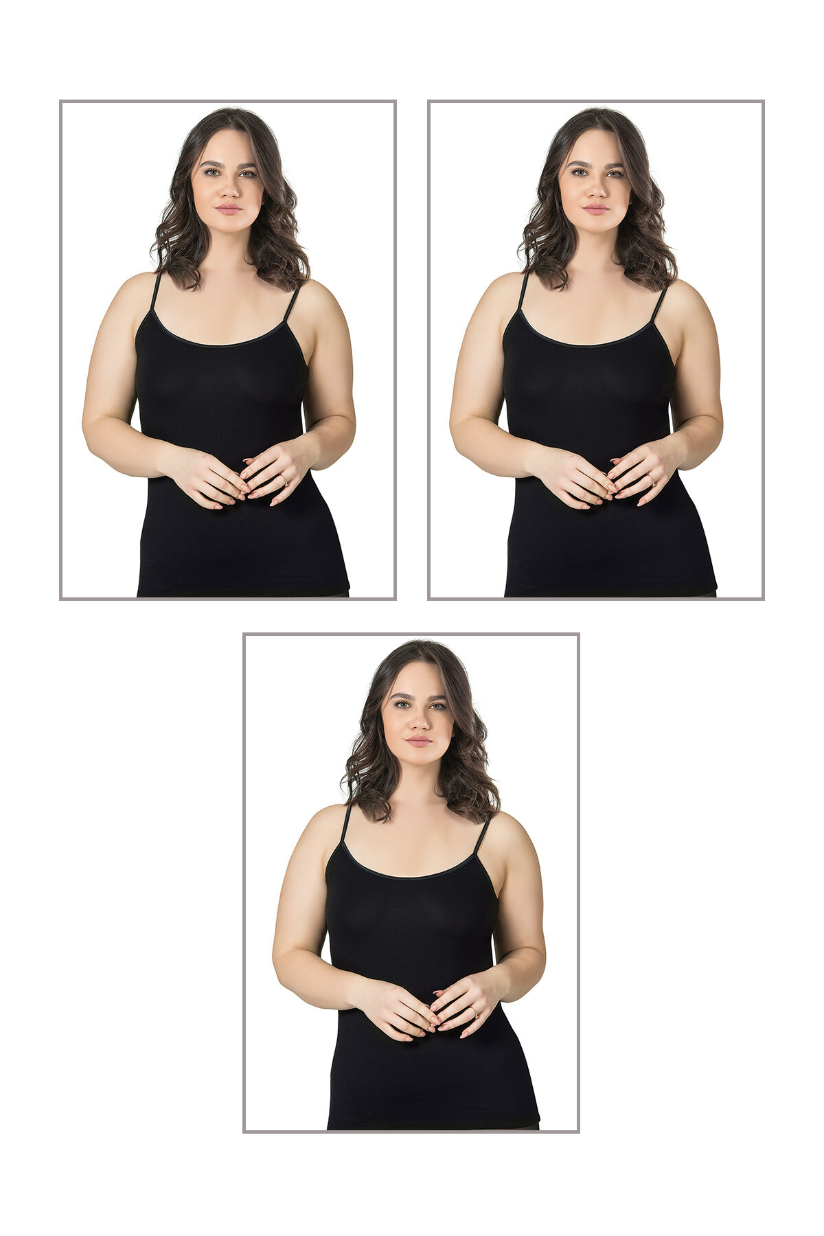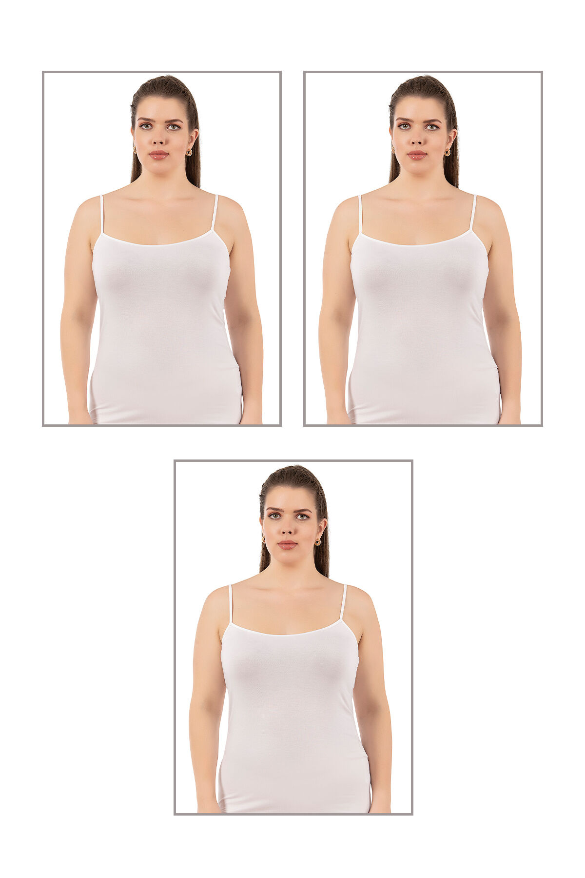 Özkan 25923 3'lü Paket Kadın Viskon İp Askılı Biyeli Yumuşak İnce Askılı Büyük Geniş Beden Atlet;