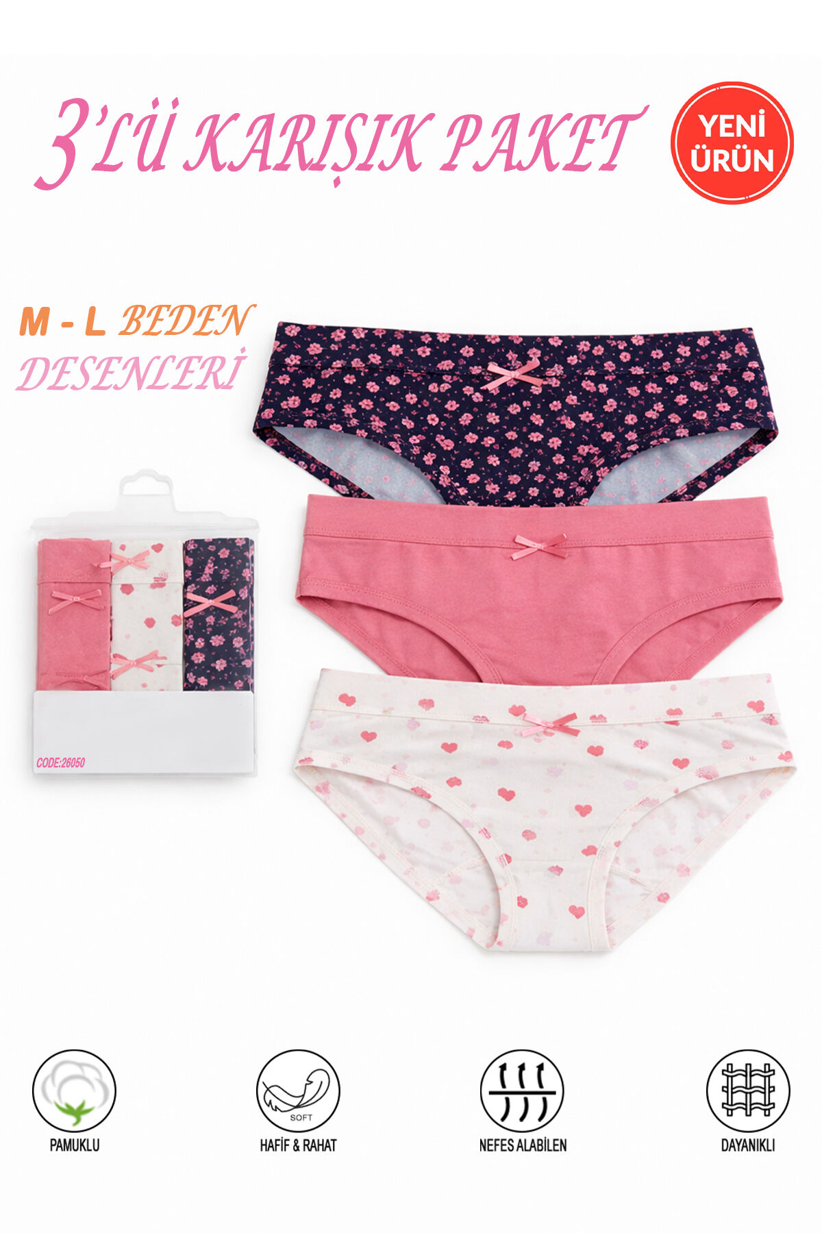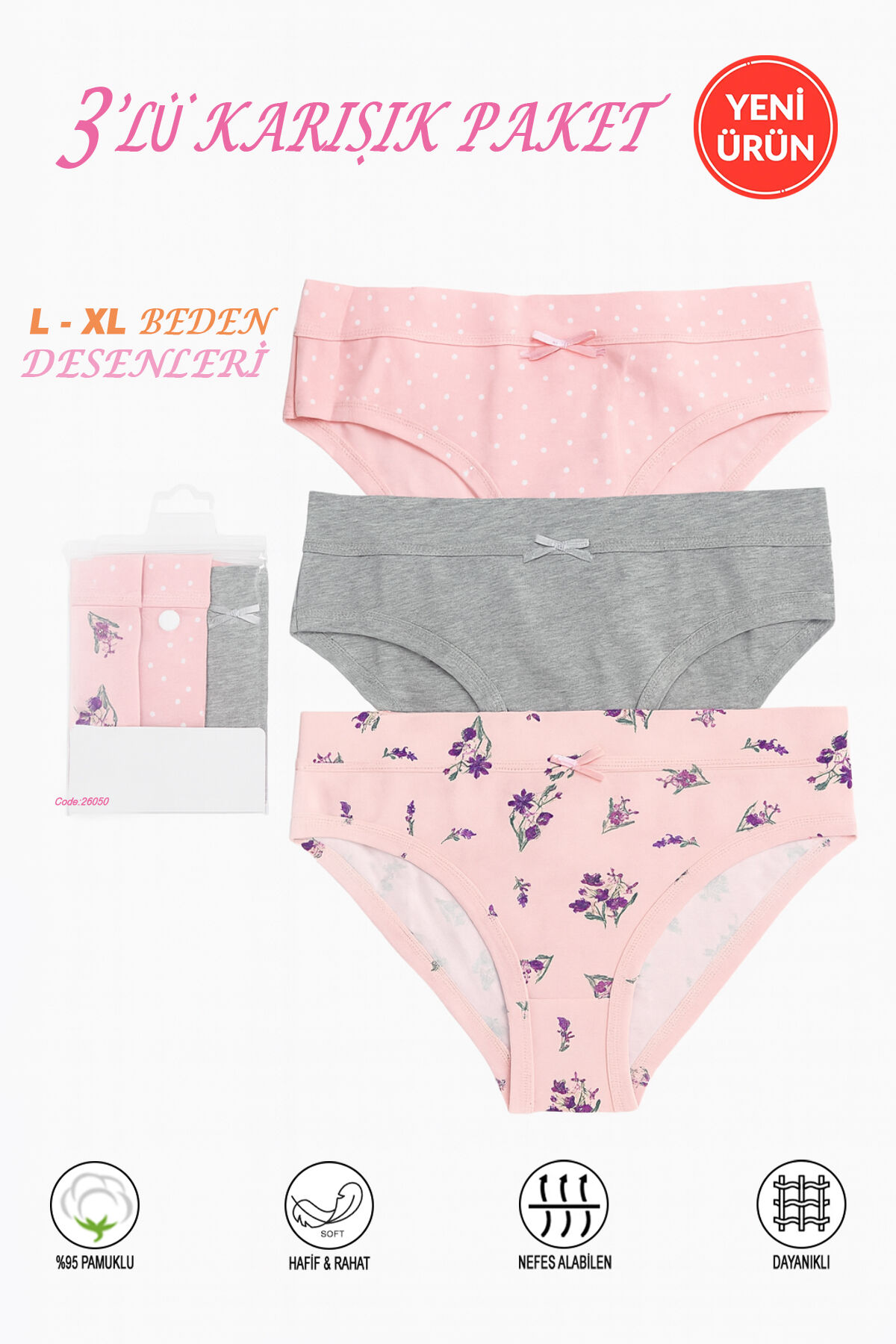 Özkan 26050 Kadın 3'lü Paket Desenli %95 Pamuklu Likralı Biyeli Esnek Rahat Slip Külot