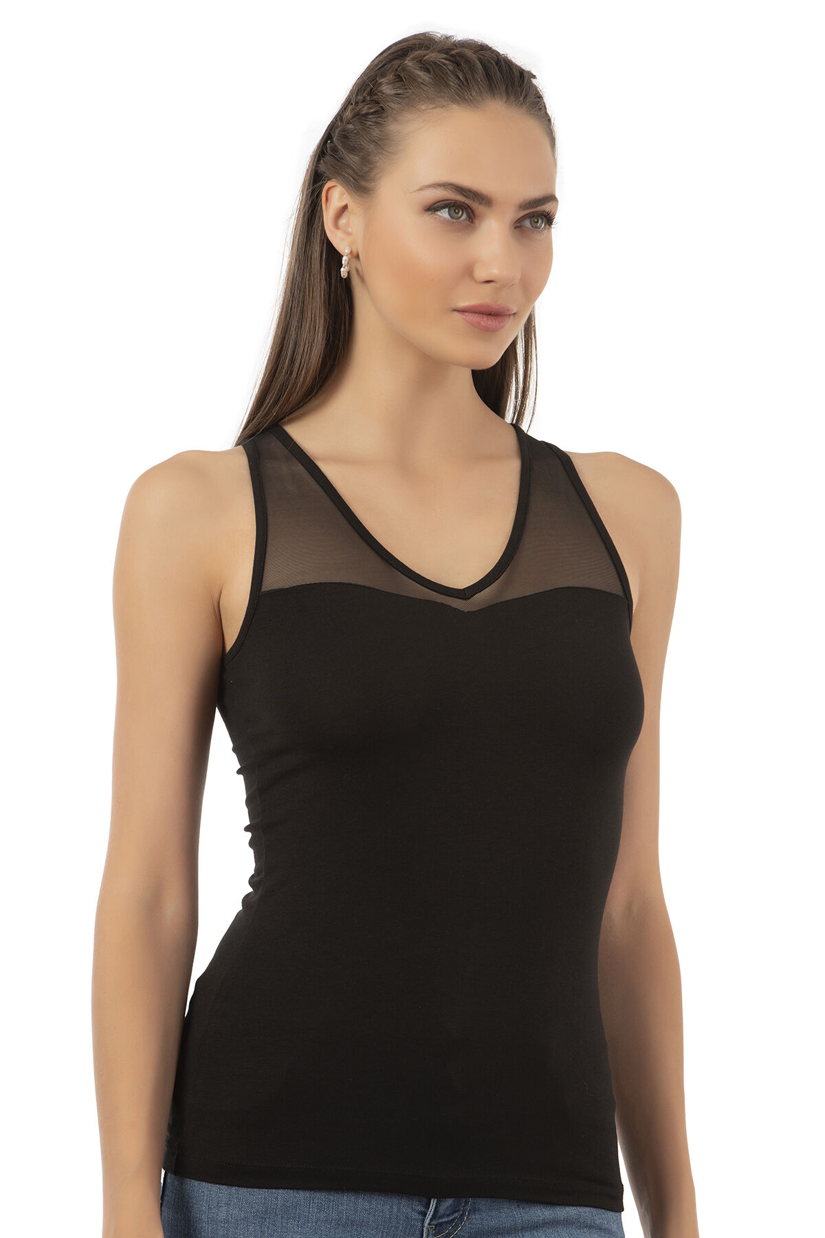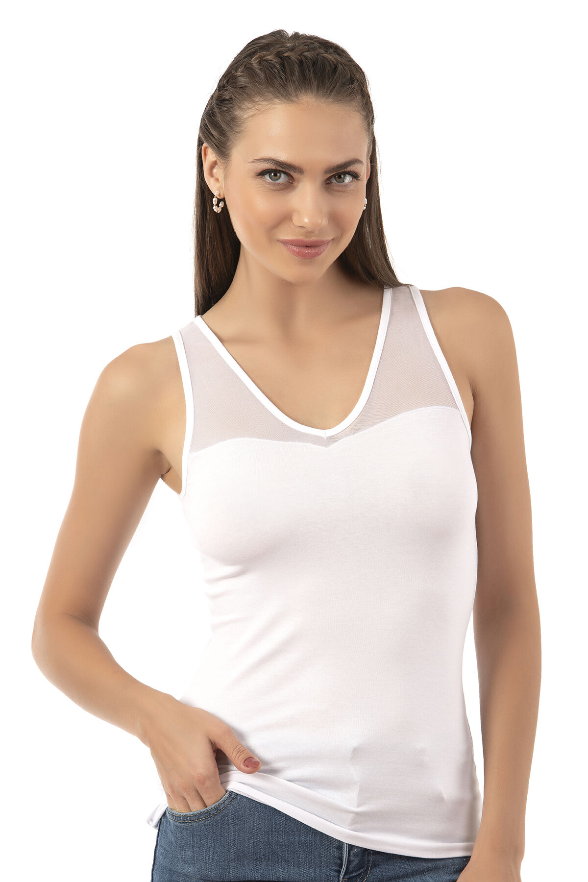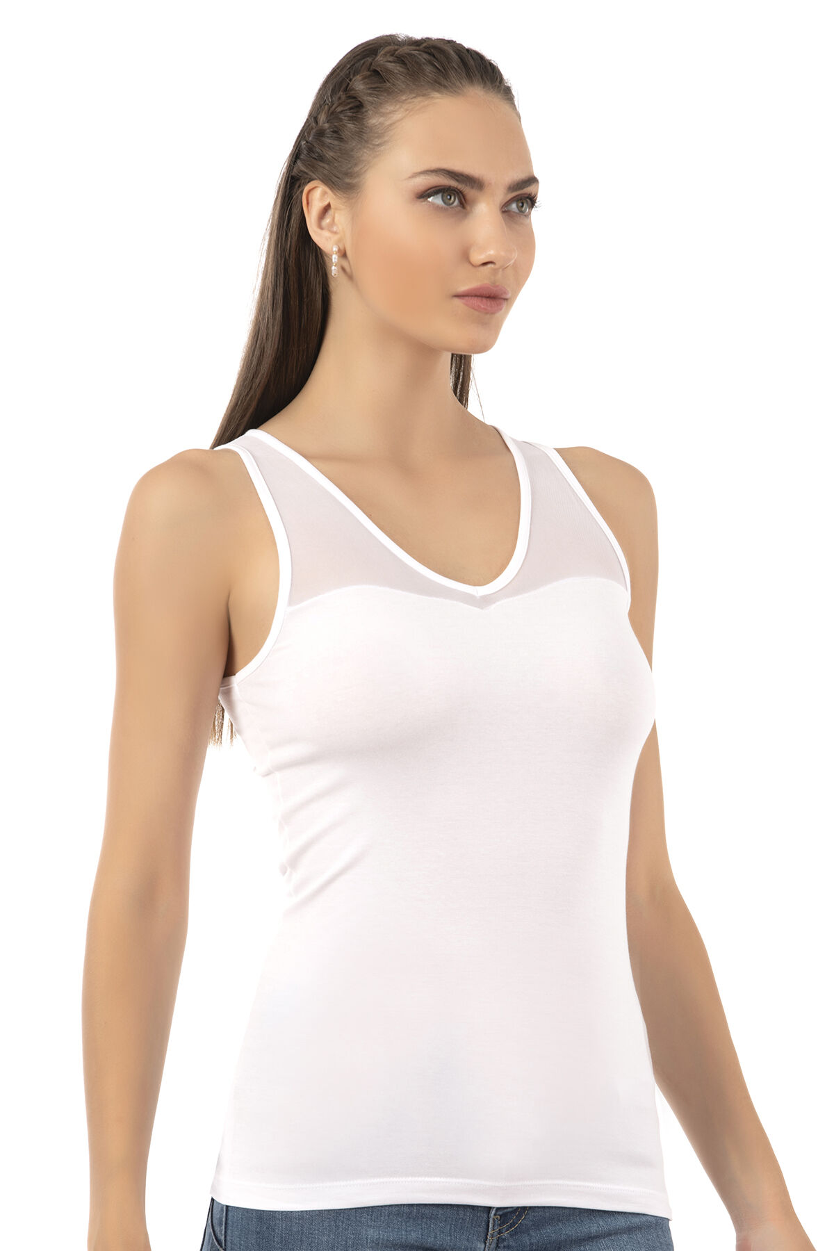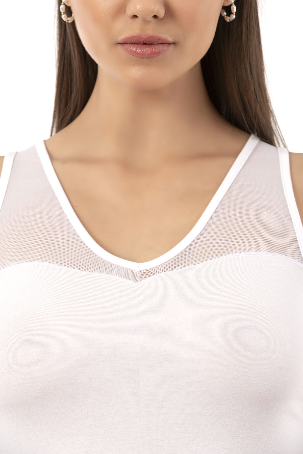 Özkan 26531 Kadın Pamuklu Modal V Yaka Tül Detaylı Kalın Askılı Atlet