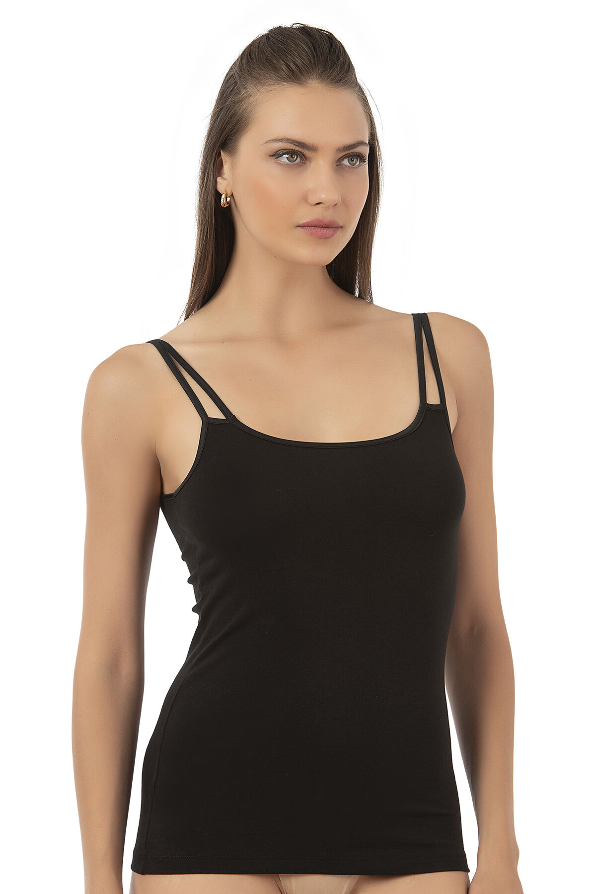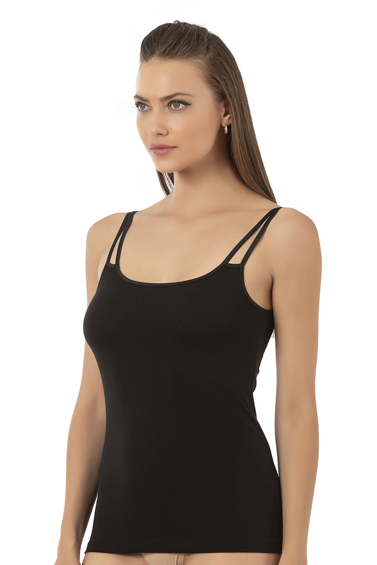 Özkan 26765 Kadın Premium Modal Kumaş Esnek Rahat İp Askı Detaylı Saten Biyeli Atlet;