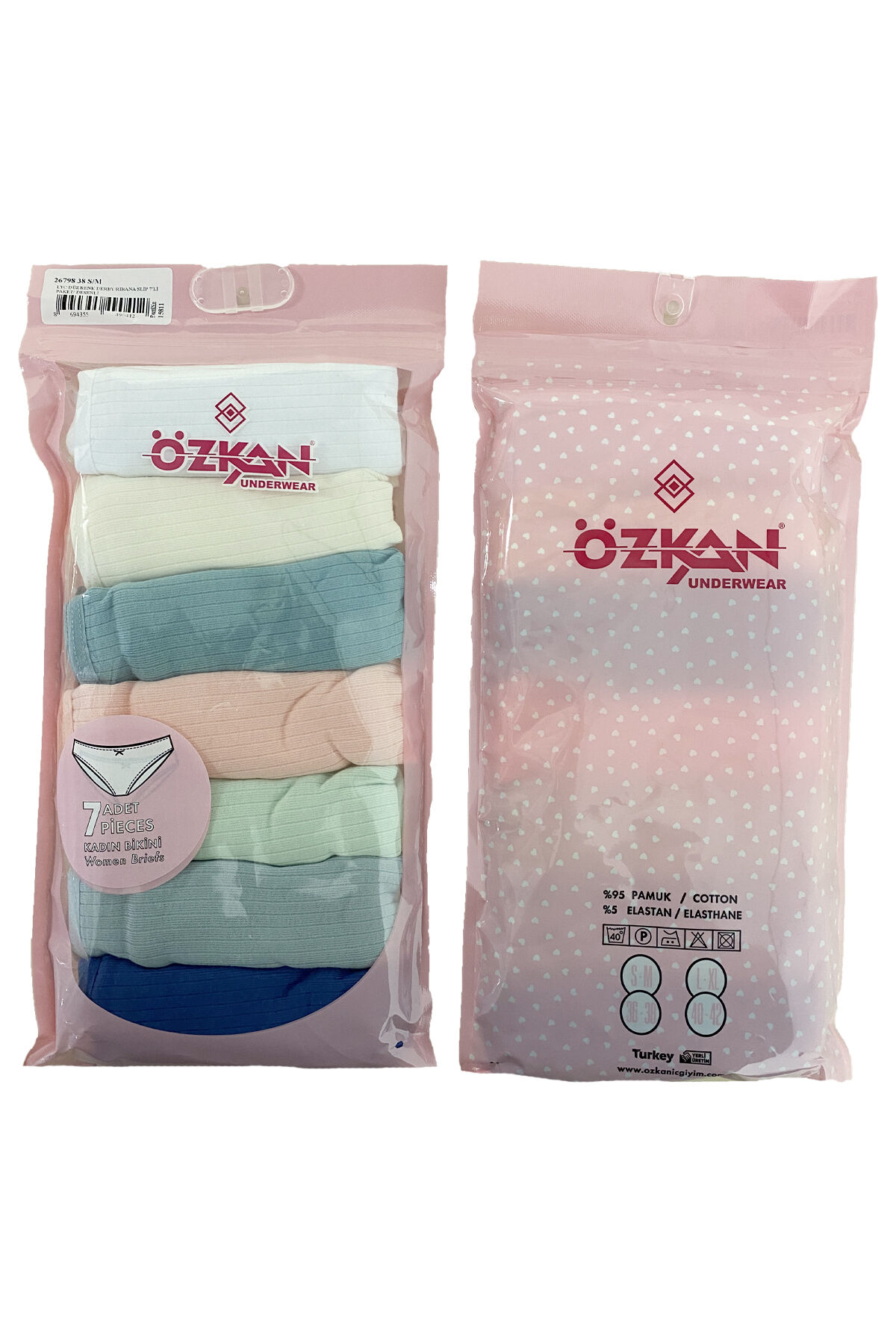 Özkan 26798 7'li Paket Kadın Fitilli Ribana Pamuklu Esnek Rahat Slip Bikini Külot;