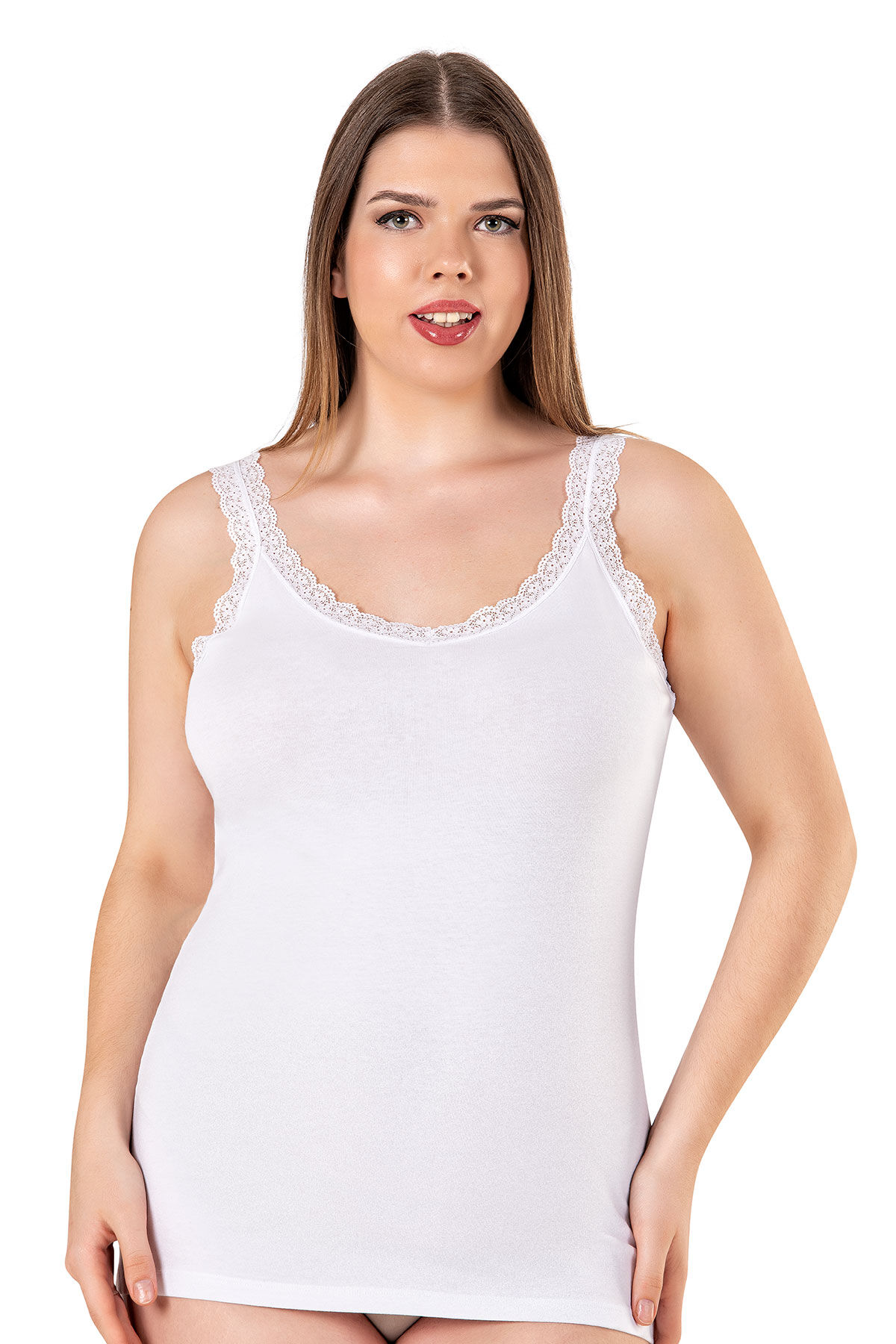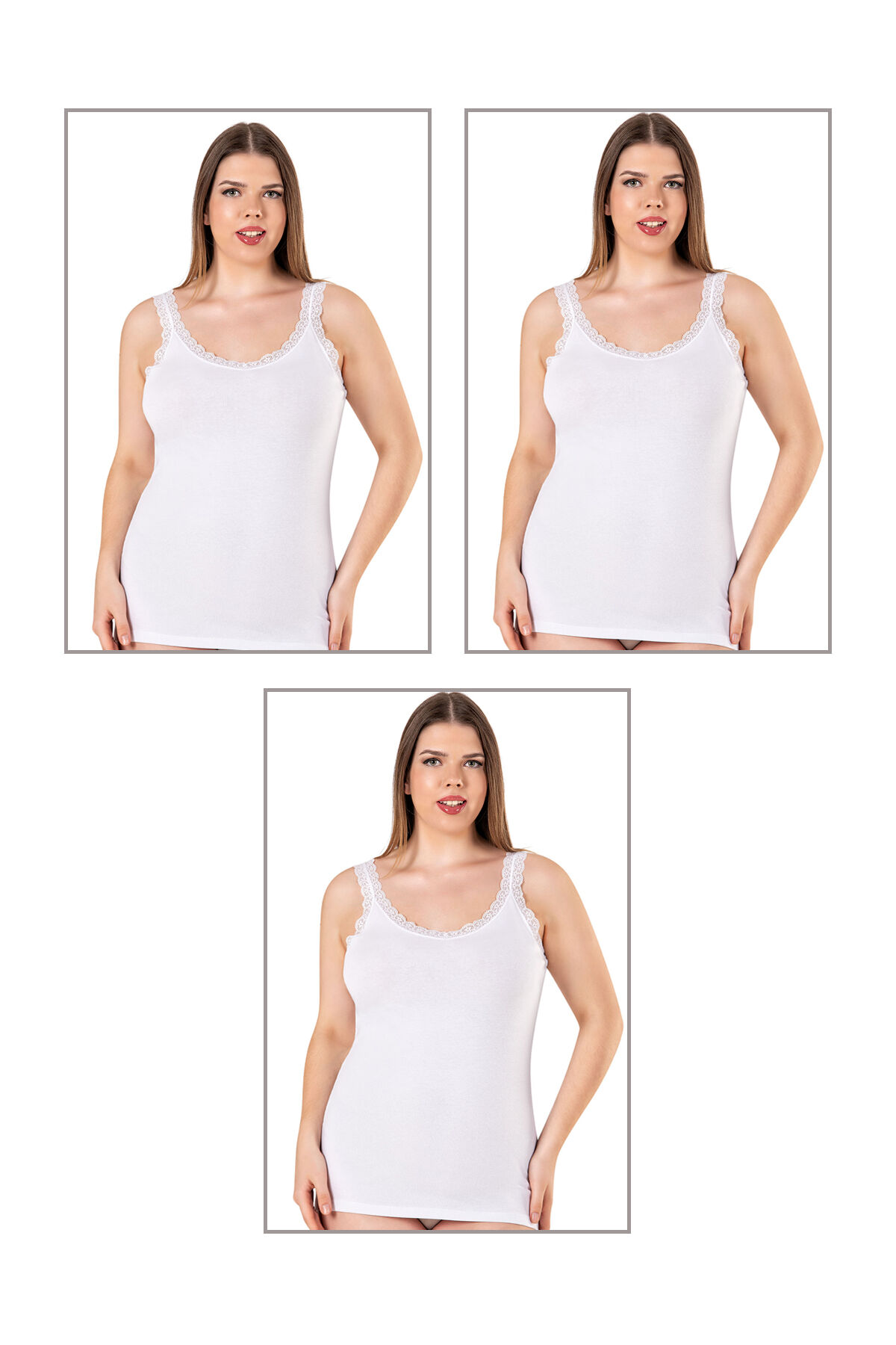 Özkan 26802 3'lü Paket Kadın Pamuklu Yakası Dantel Detaylı Kalın Askılı Esnek Rahat Büyük Beden Atlet