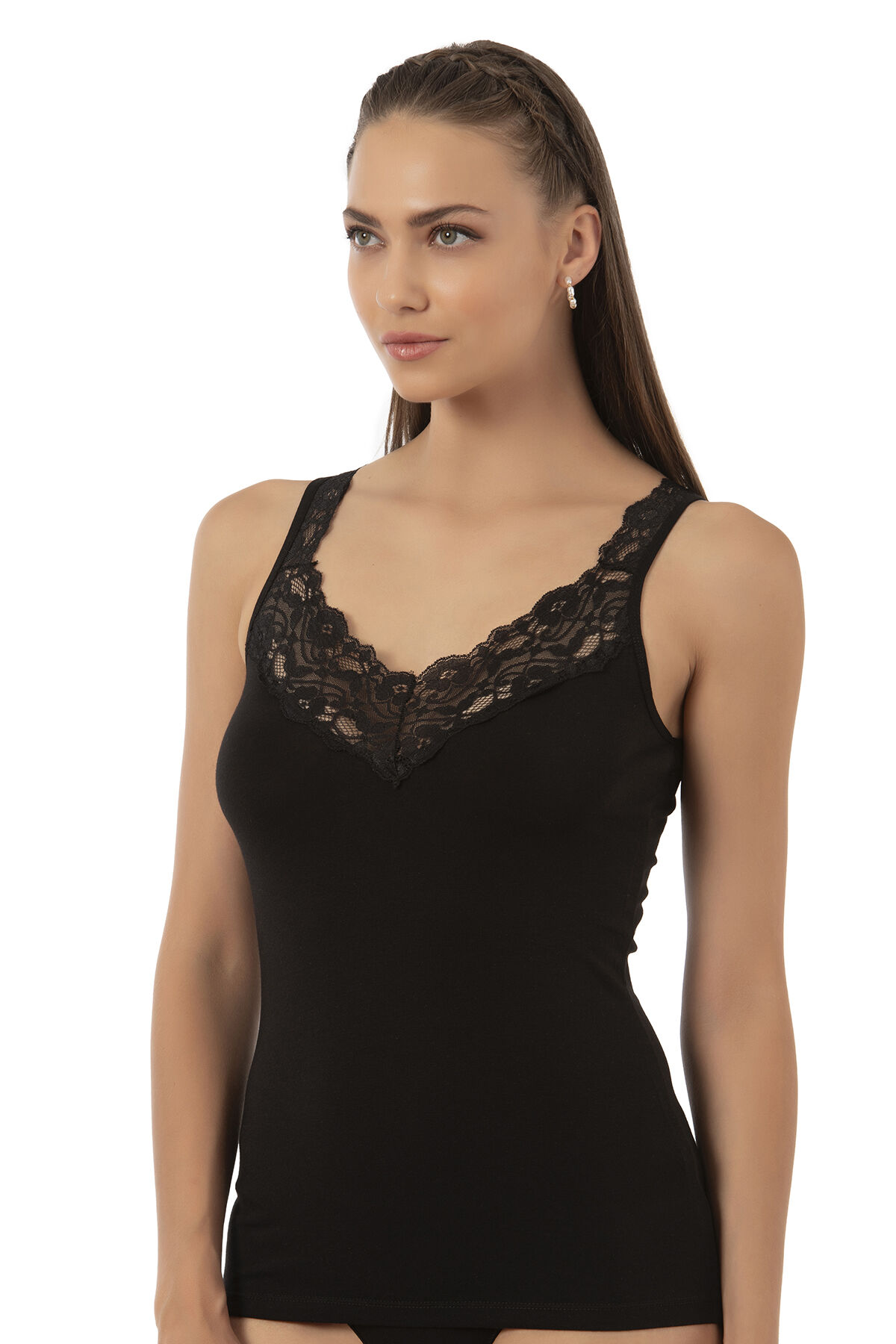 Özkan 26805 Kadın Pamuklu Modal Dantel Detaylı Kalın Askılı Atlet