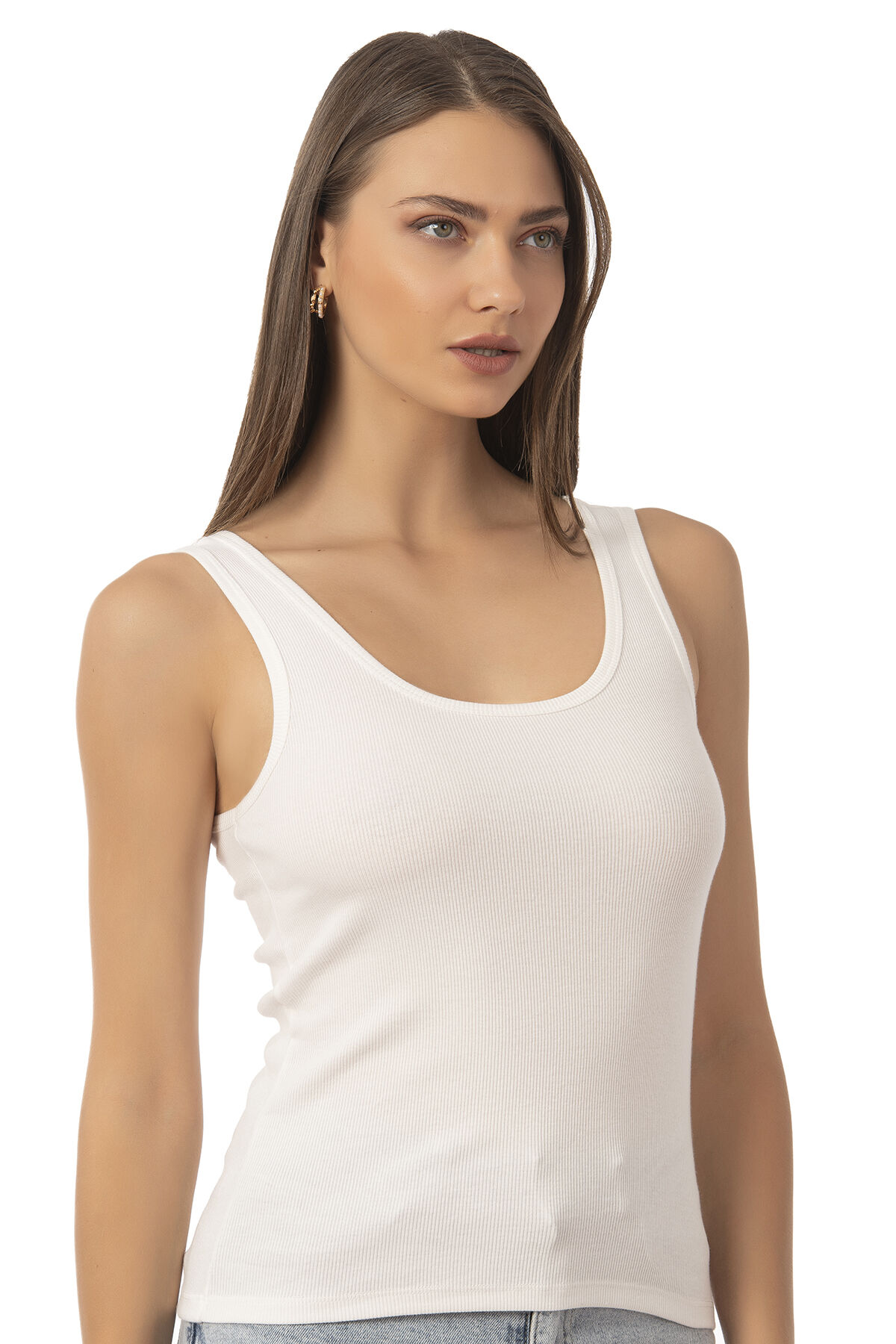 Özkan 26815 Kadın Soft Pamuklu Kaşkorse Fitilli Esnek Rahat Kalın Askılı Örme Atlet Bluz