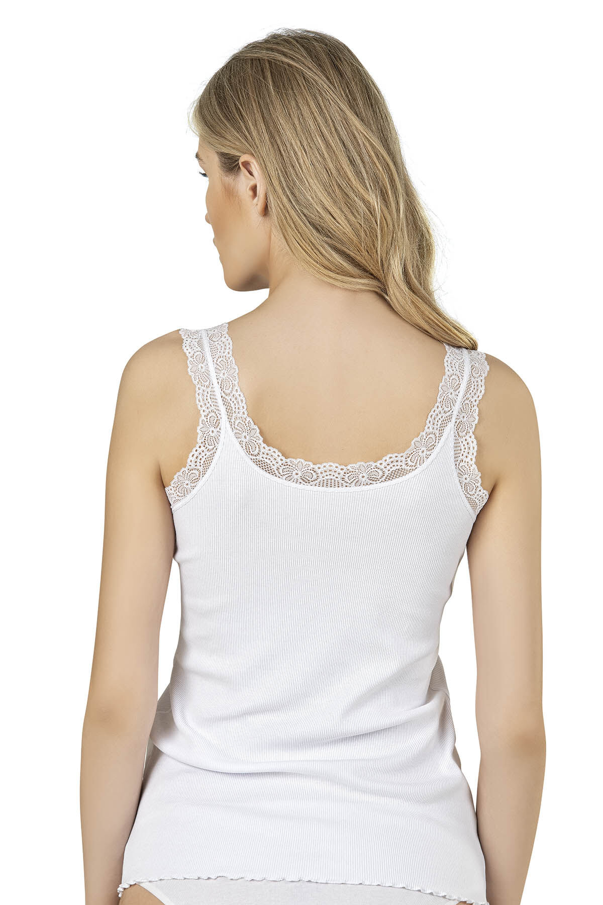 Özkan 26816 Kadın Pamuklu Fitilli Yakası Dantel Detaylı Kalın Askılı Atlet
