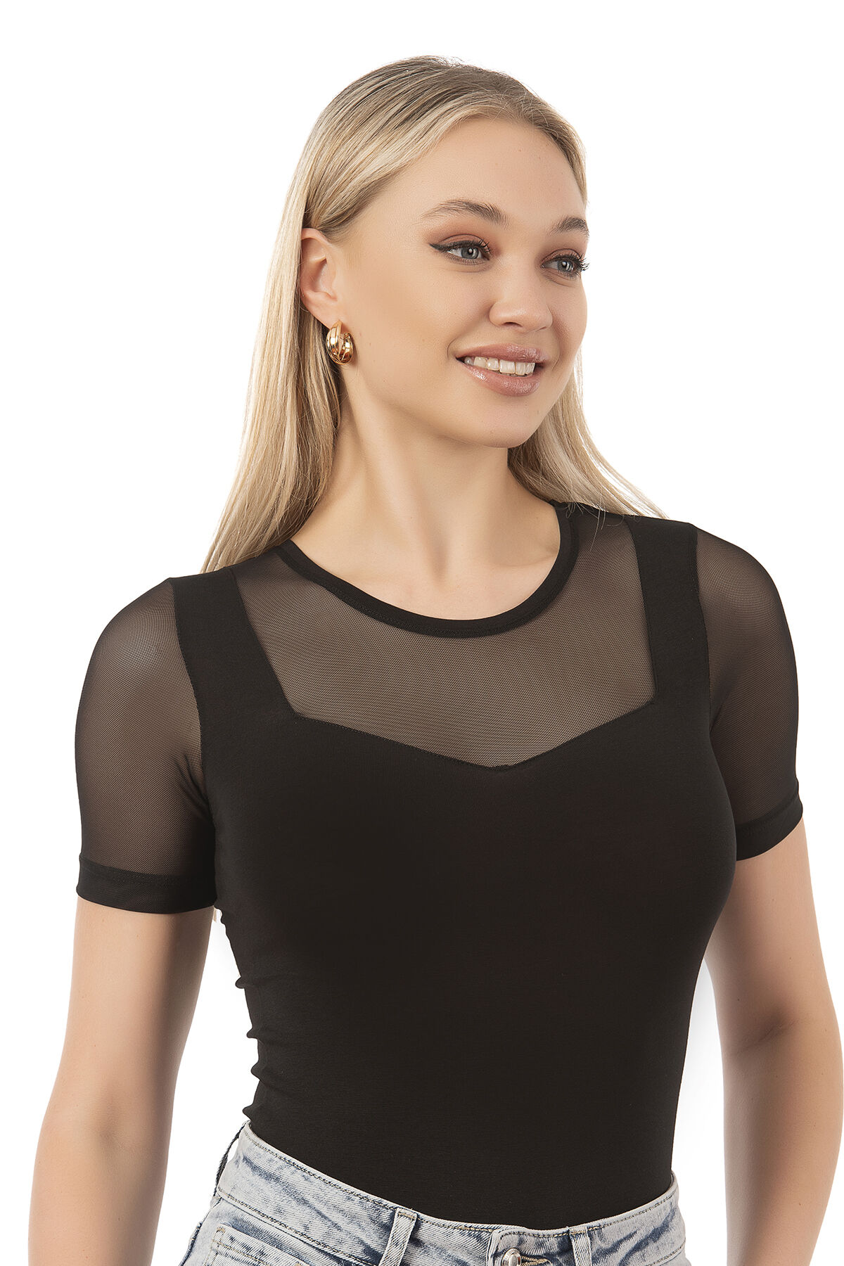 Özkan 26830 Kadın Pamuklu Tül Detaylı Kancalı Çıtçıtlı Body