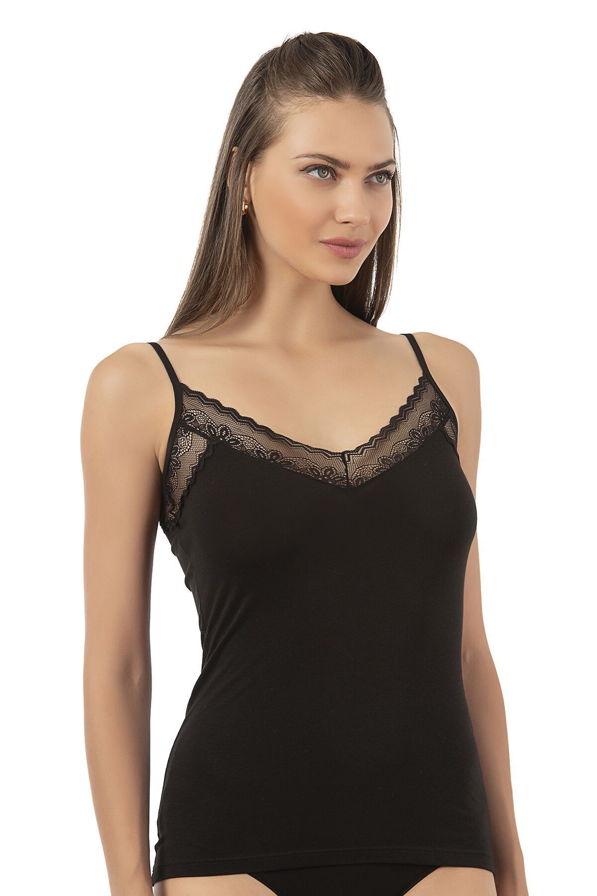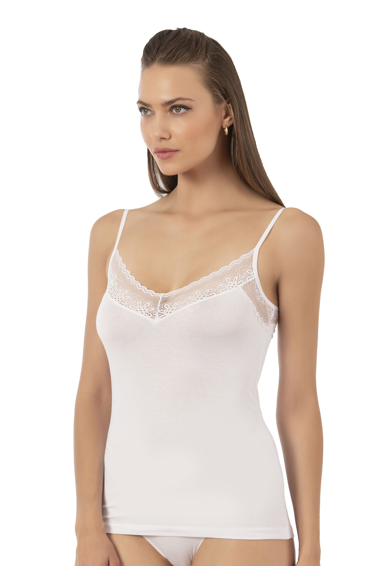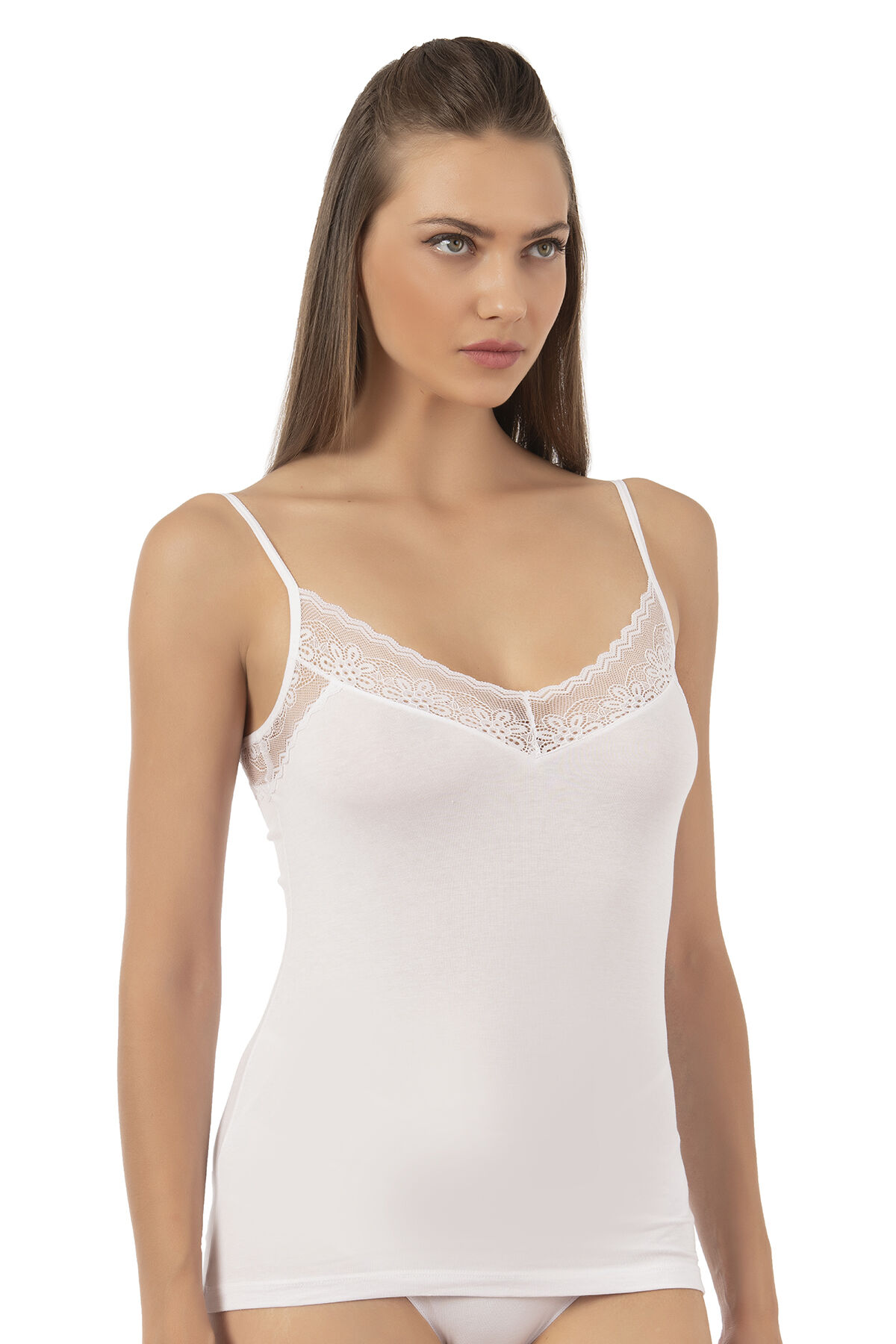 Özkan 26849 Kadın Pamuklu Modal Dantel Detaylı İnce Askılı Atlet;