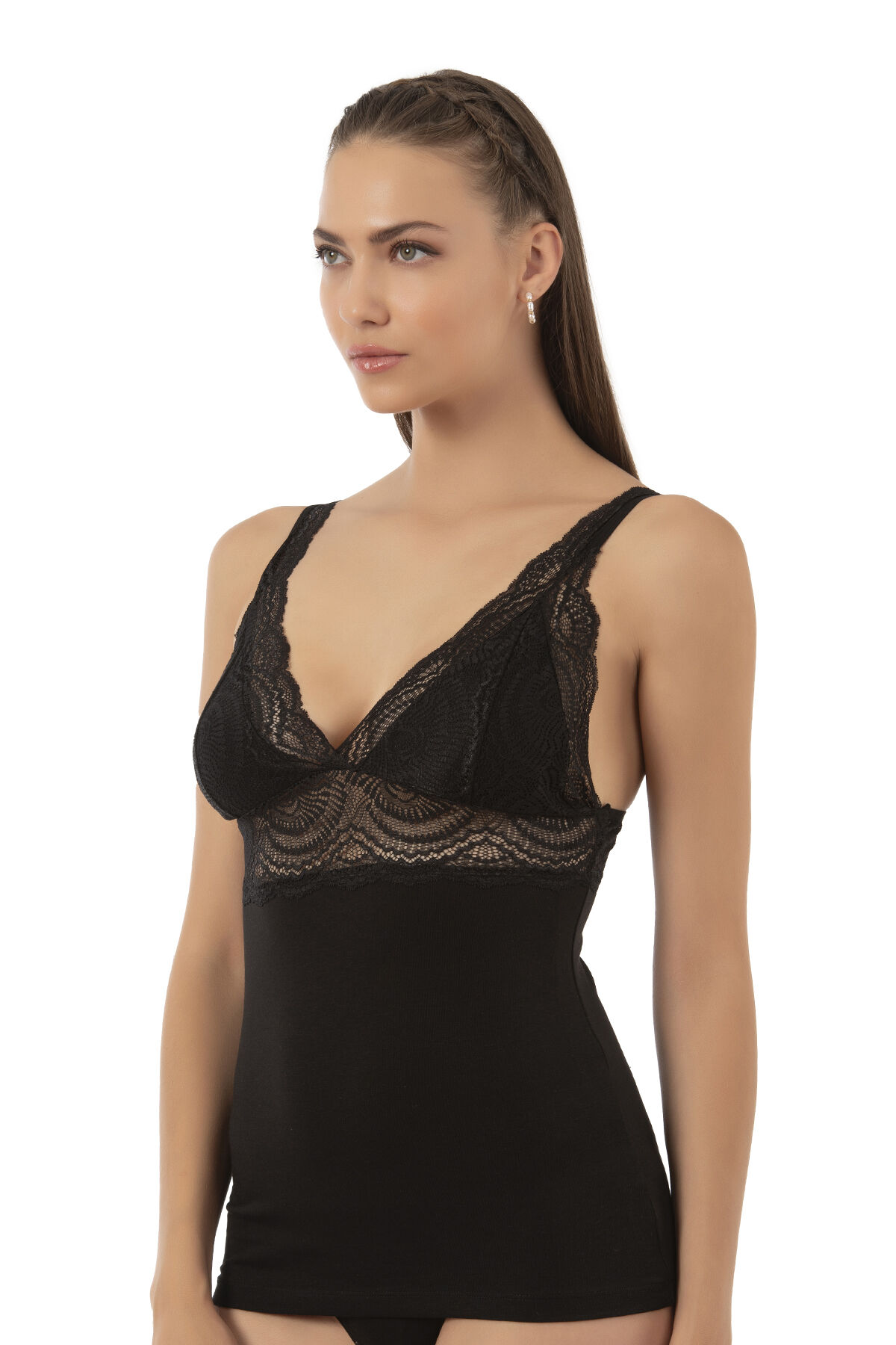 Özkan 26851 Pamuklu Modal Dantel Detaylı V Yaka Esnek Rahat Kalın Askılı Atlet;