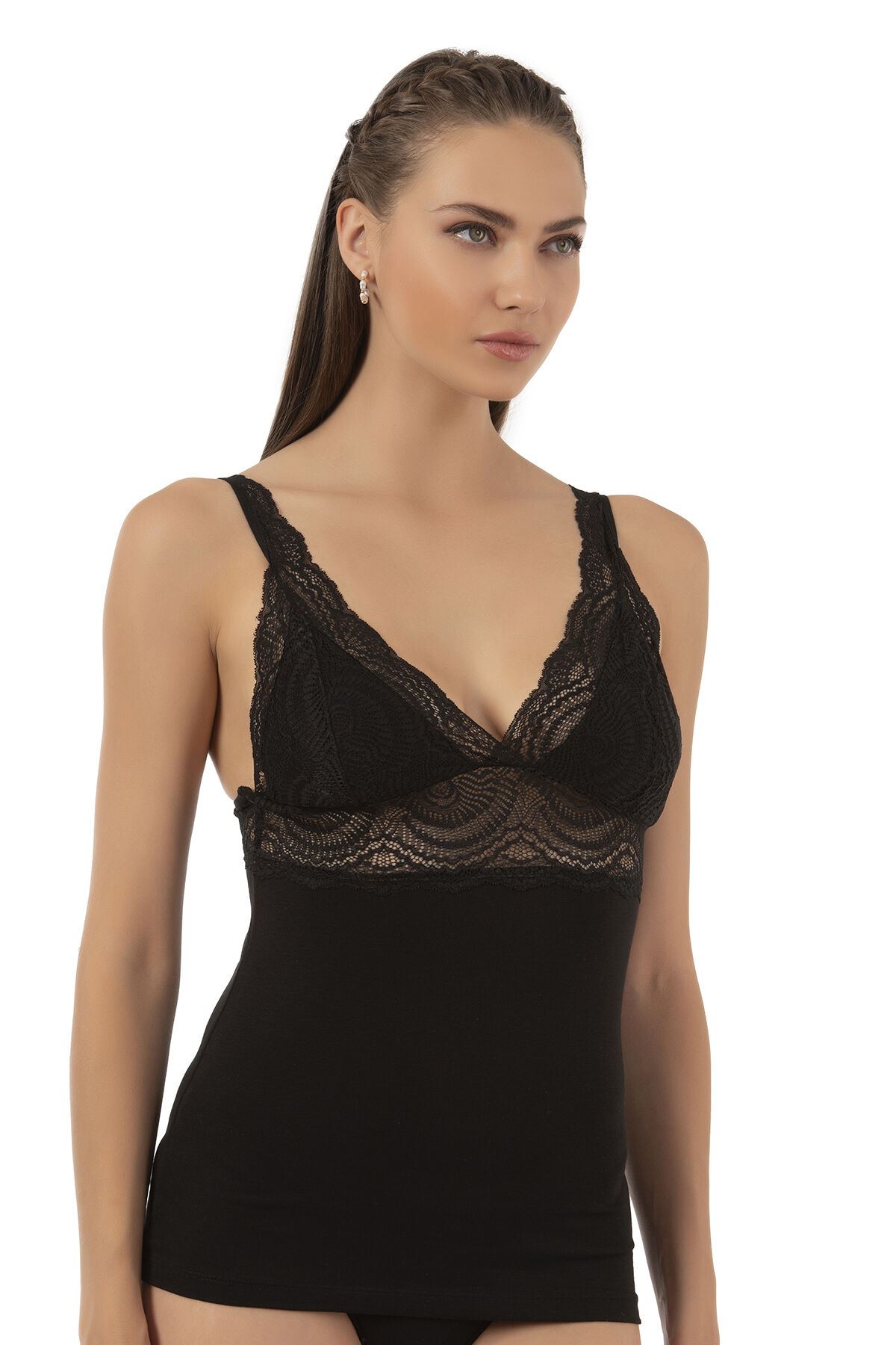 Özkan 26851 Pamuklu Modal Dantel Detaylı V Yaka Esnek Rahat Kalın Askılı Atlet