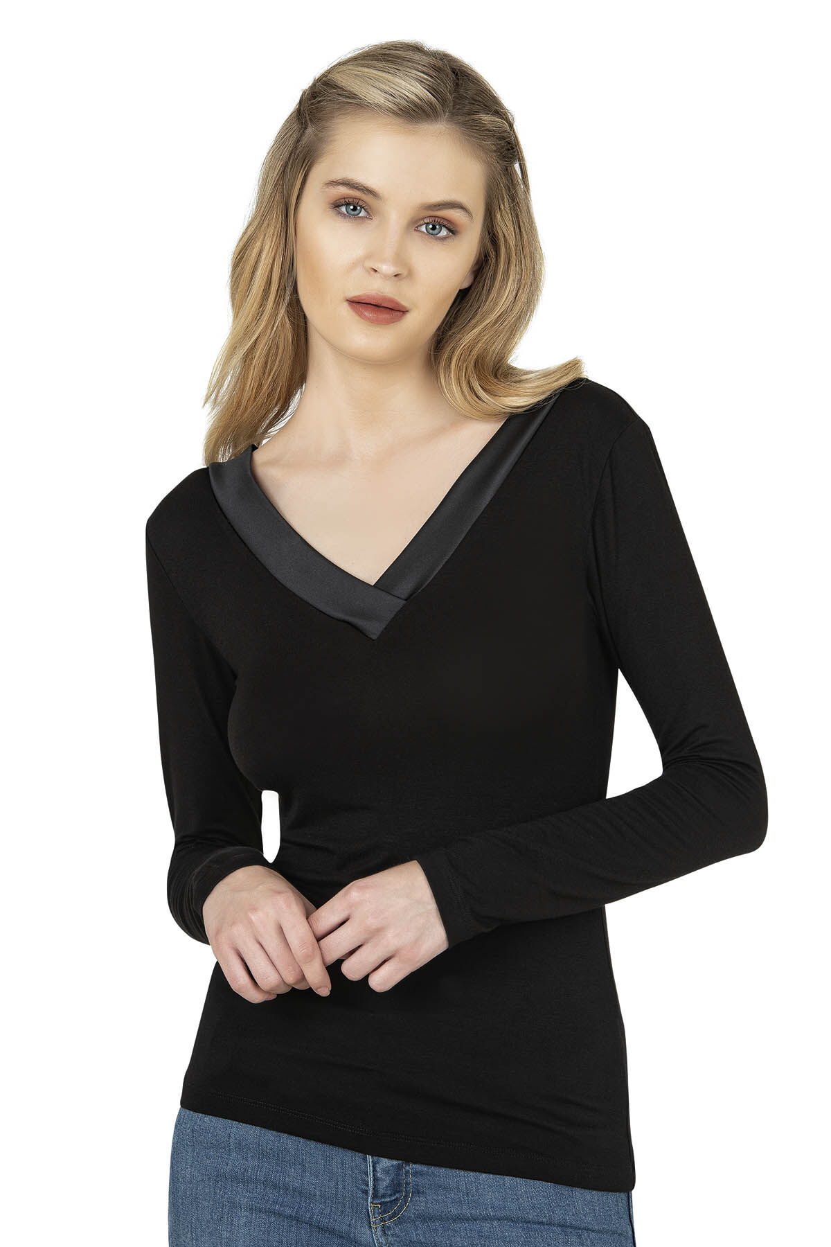 Özkan 26984 Kadın Ring Viskon Uzun Kollu Esnek Yumuşak V Yaka Bluz;