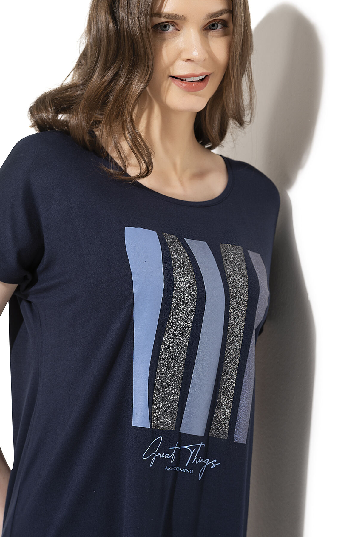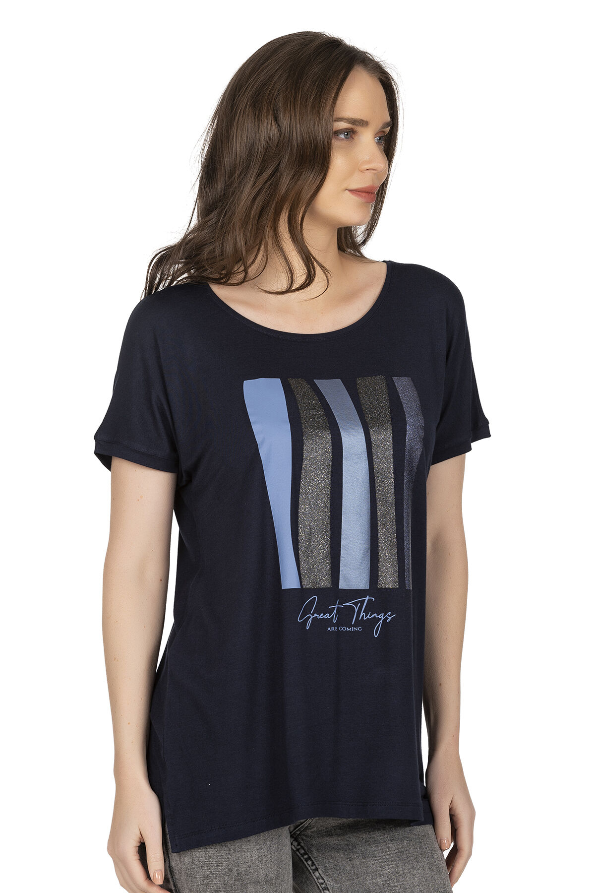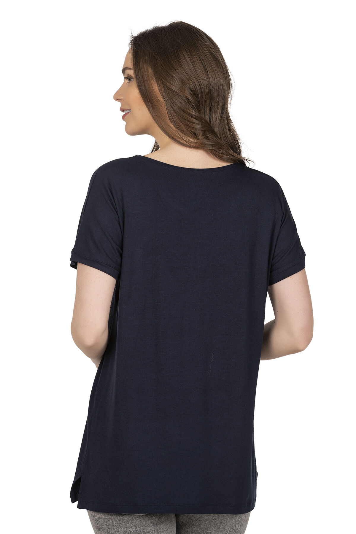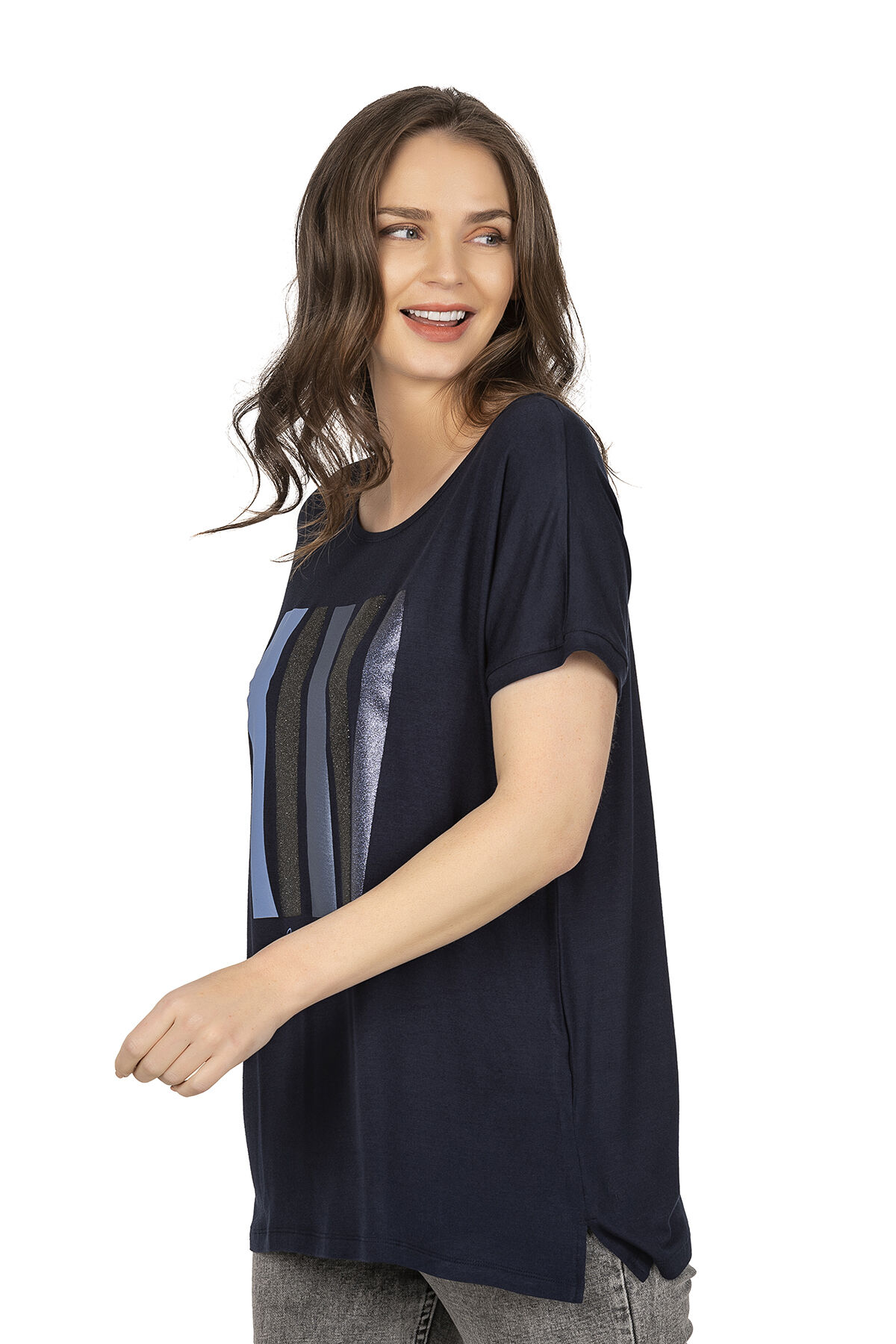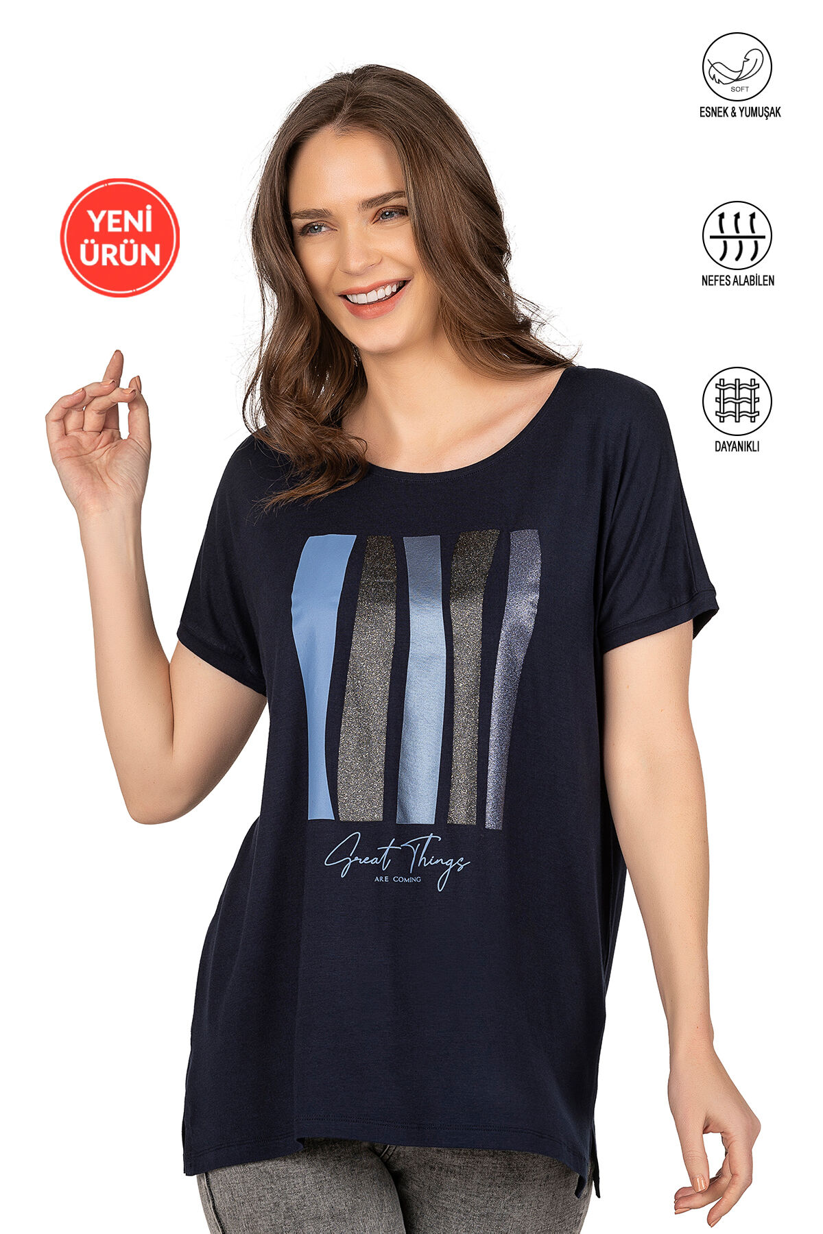 Özkan 26999 Kadın Kadın Premium Yumuşak Rahat Kumaş Vorteks Önü Baskılı Likralı Yırtmaç Detaylı Geniş Yaka Örme Bluz;