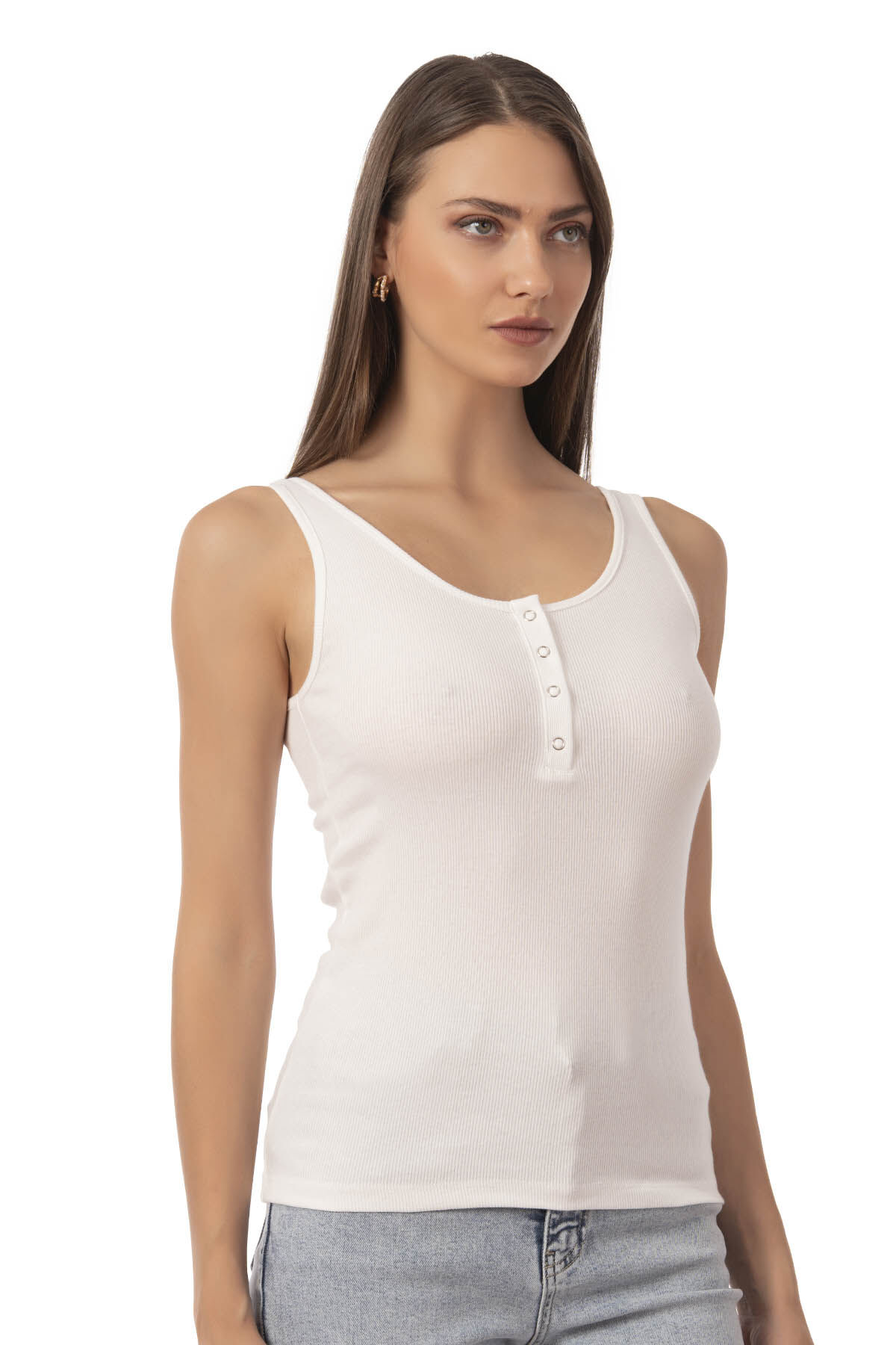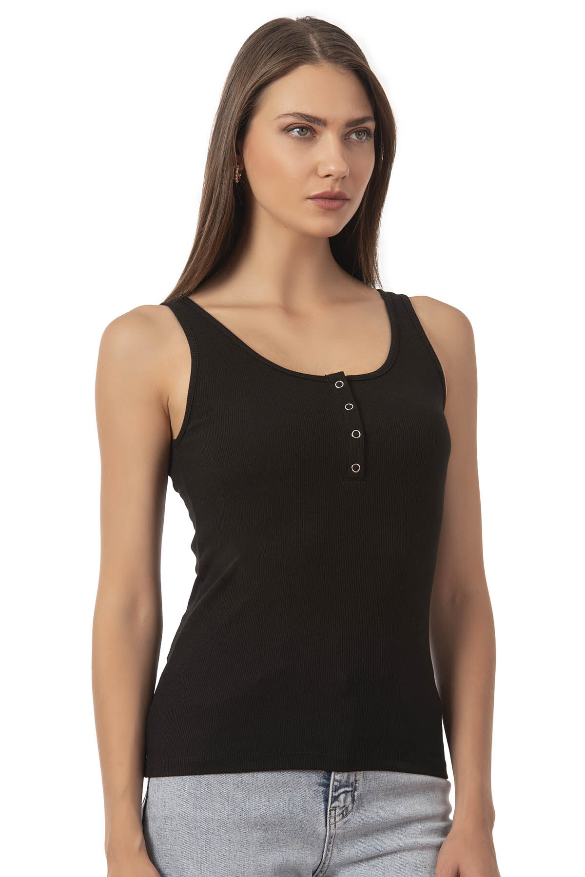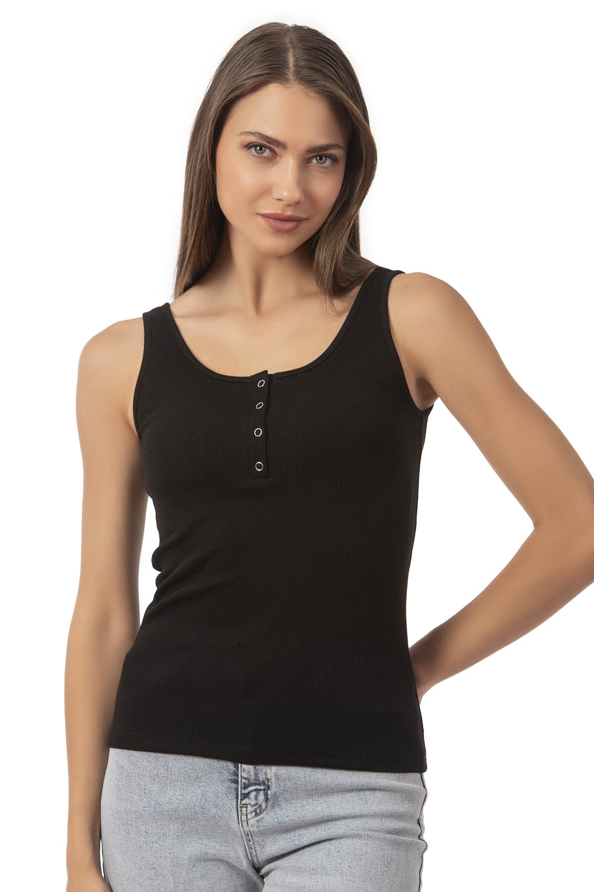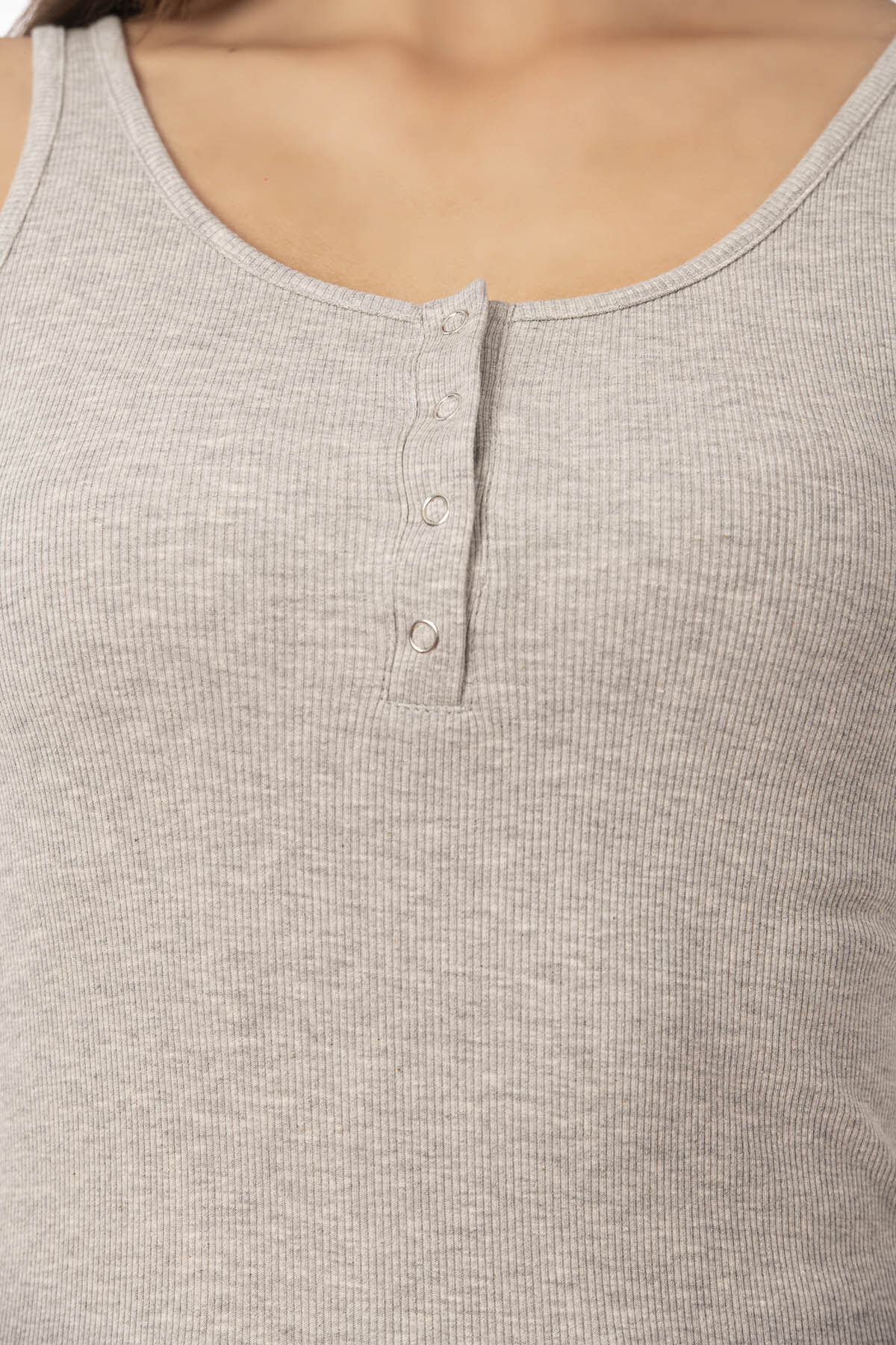 Özkan 27063 Kadın Pamuklu Likralı Kaşkorse Fitilli Esnek Rahat Önü Patlı Kalın Askılı Örme Atlet